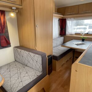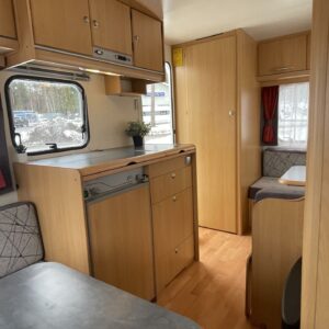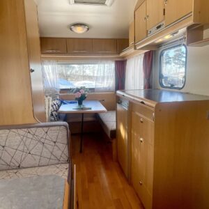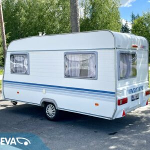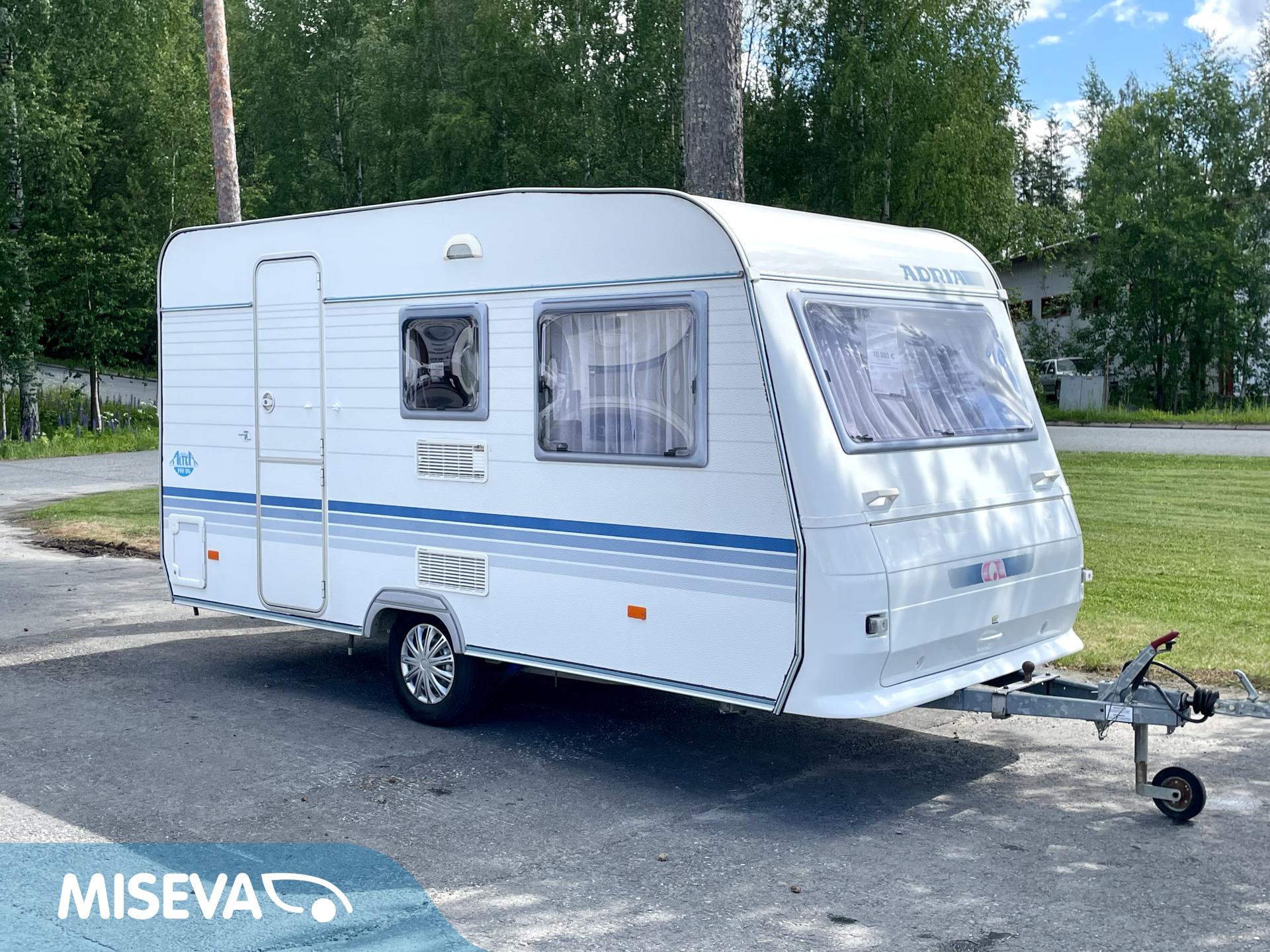 Tästä Adrian sympaattinen pikku vaunu kesän rientoihin. Lämmitys toimii tutusti Trumalla ja nukkumaan mahtuu useampikin. Etuosan ruokaryhmästä saadaan tarvittaessa sijattua vuode kahdelle henkilölle ja vaunun etuosassa on vielä toinen sänky yhdelle. Ja Kompaktin vaunun tilava keittiö on mukava paikka kokkailla koko perheelle. Heti oven vieressä on myös oma WC tila. Säilytystilaa löytyy tilavista kaapeista kaikille asukkaille. Näppärä vaunu hiljattain katsastettuna, tarkastettuna ja kaasulaitteet koeponnistettuna valmiina uusiin retkiin.