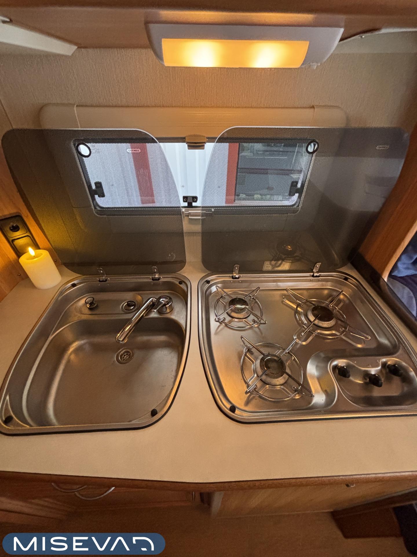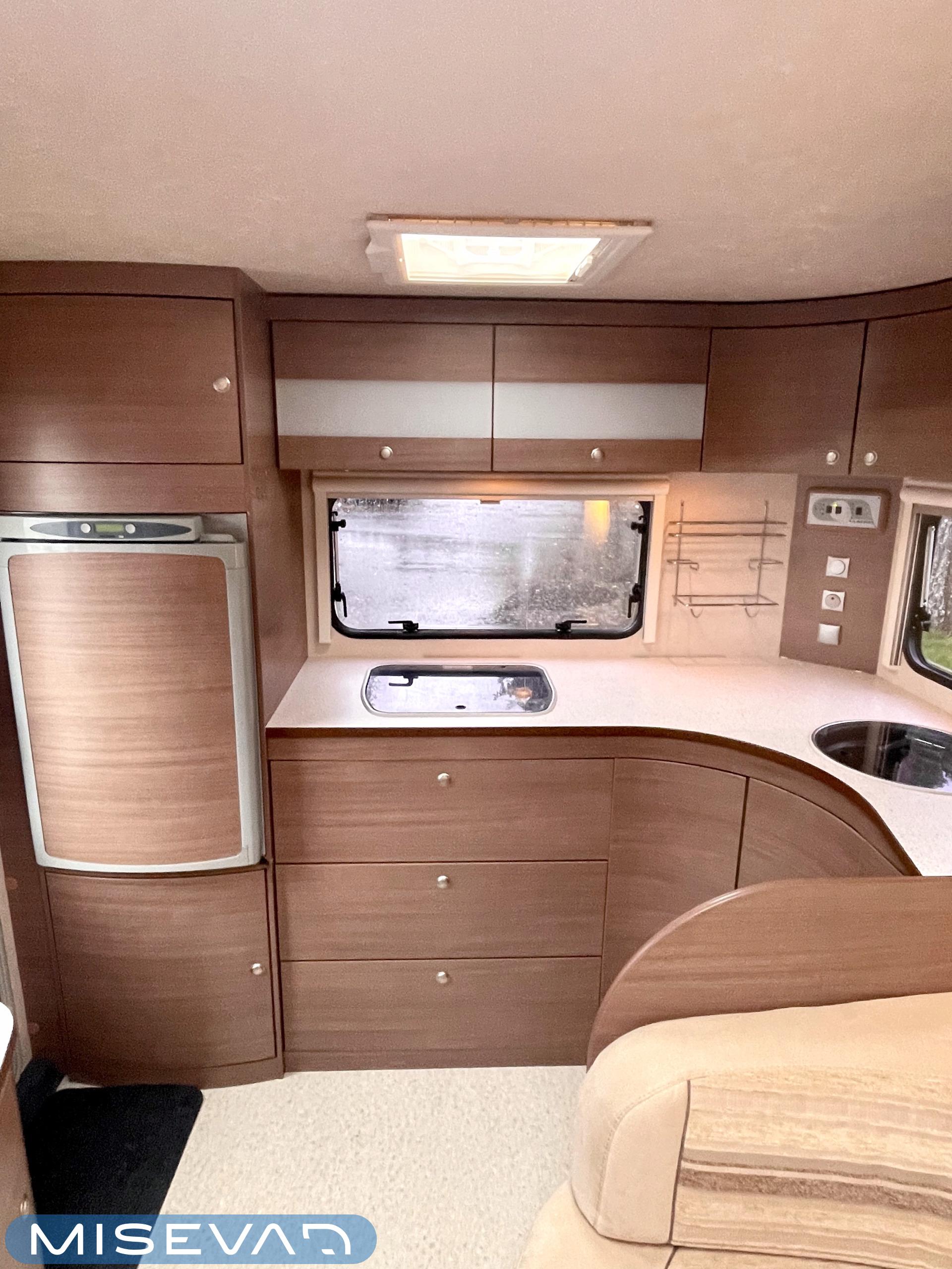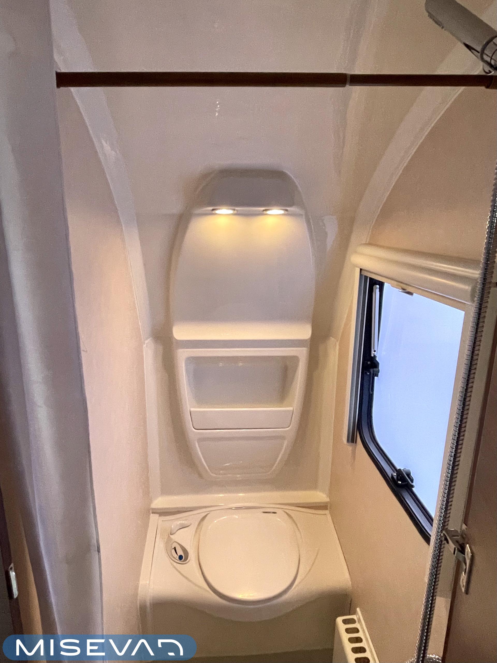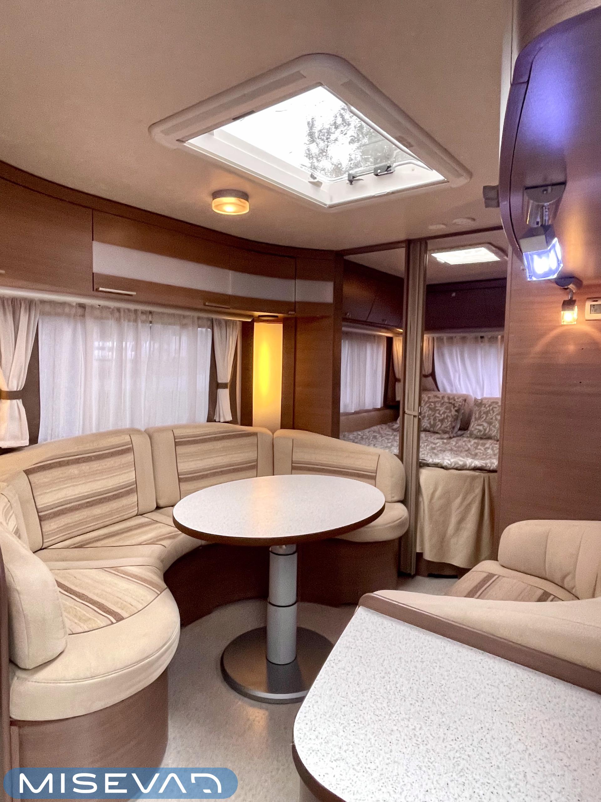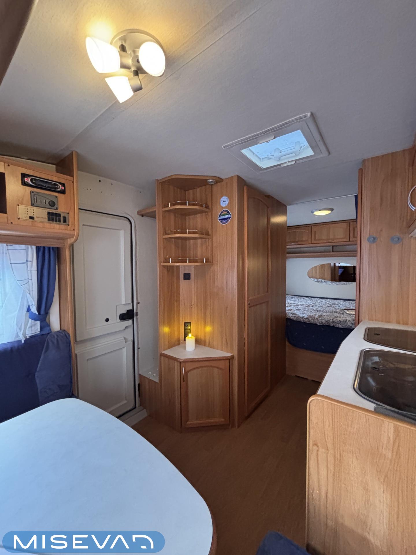 Alde, Jääkaappi, Kasetti WC, Lattialämmitys, Liesi, Nestekiertolämmitys, Pakastelokero, Parivuode, Pesuallas, TV-antenni tai lautasantenni, Takakeittiö, Markiisi, kwh-mittari, mover, sähkön ulosotto, Lämminvesiboileri, Kattoluukku, Radio, Tukijalat