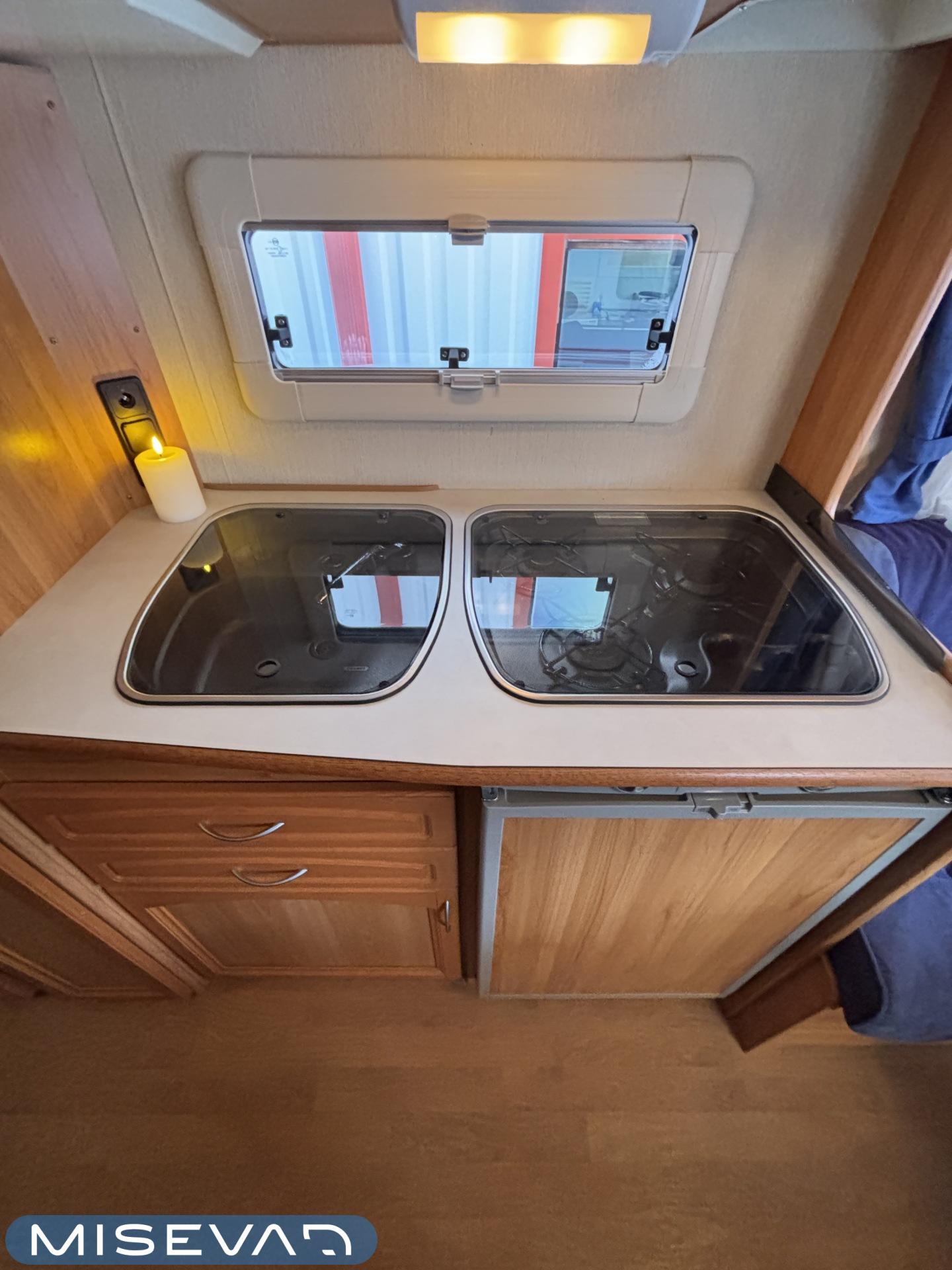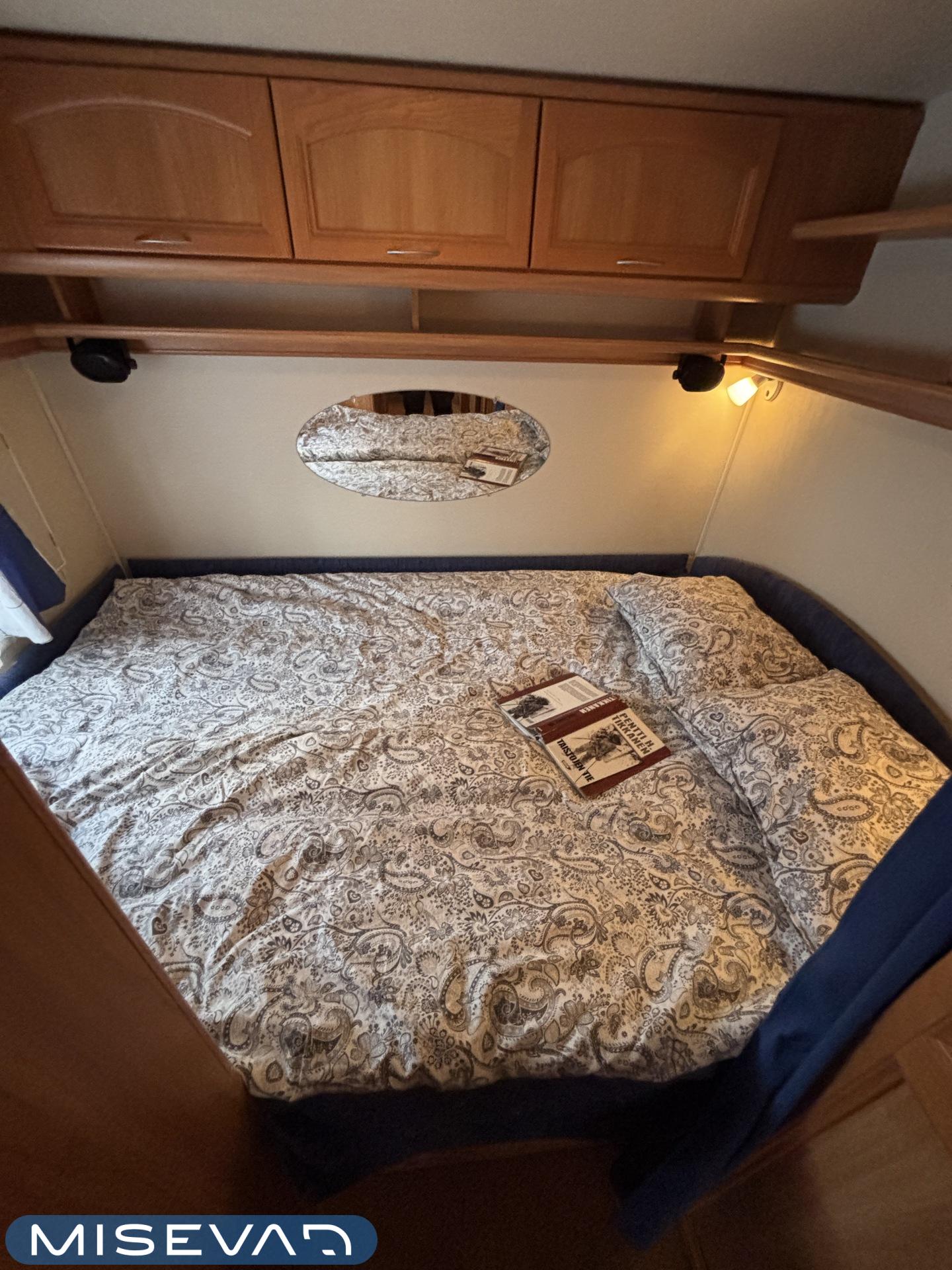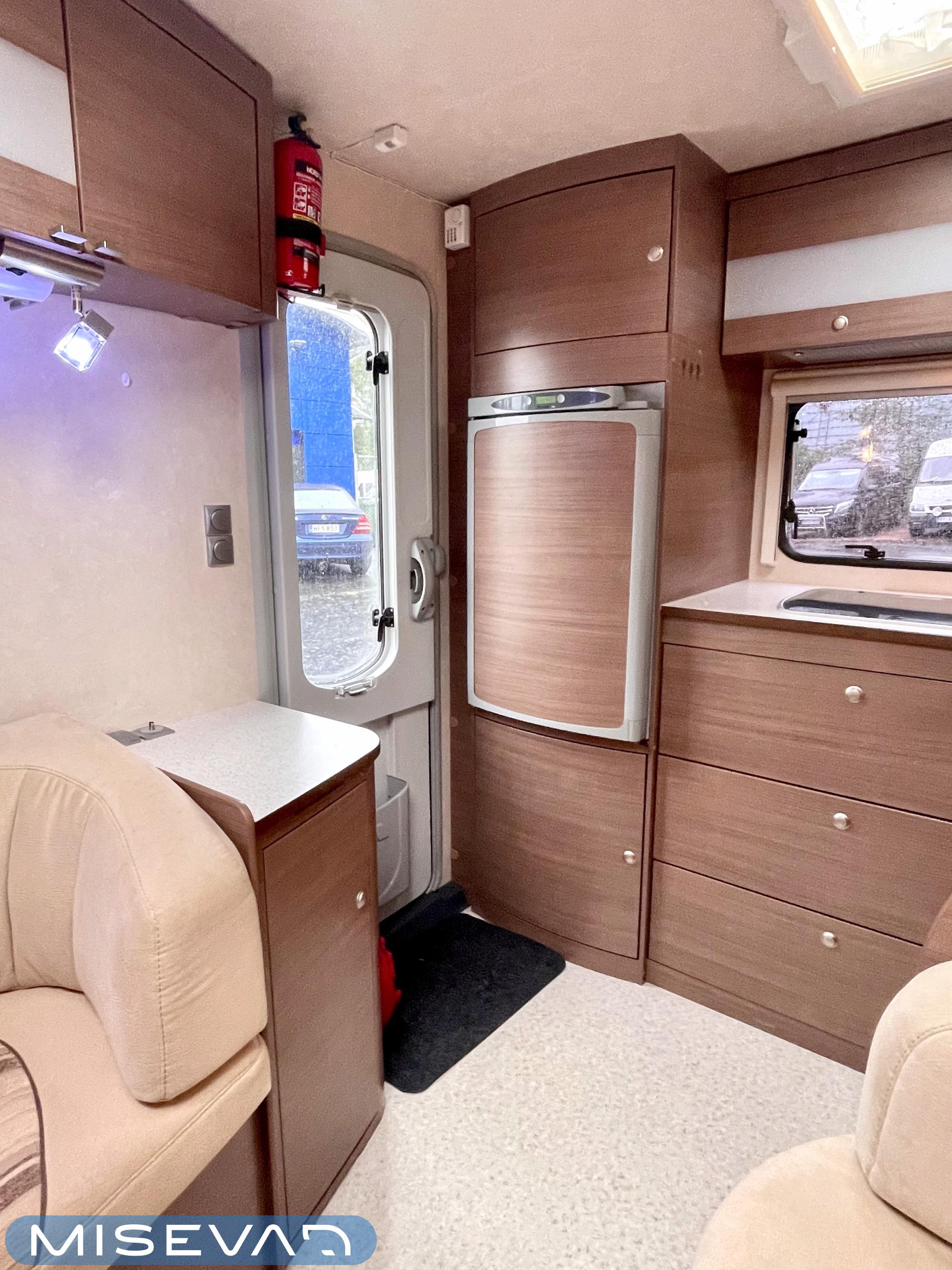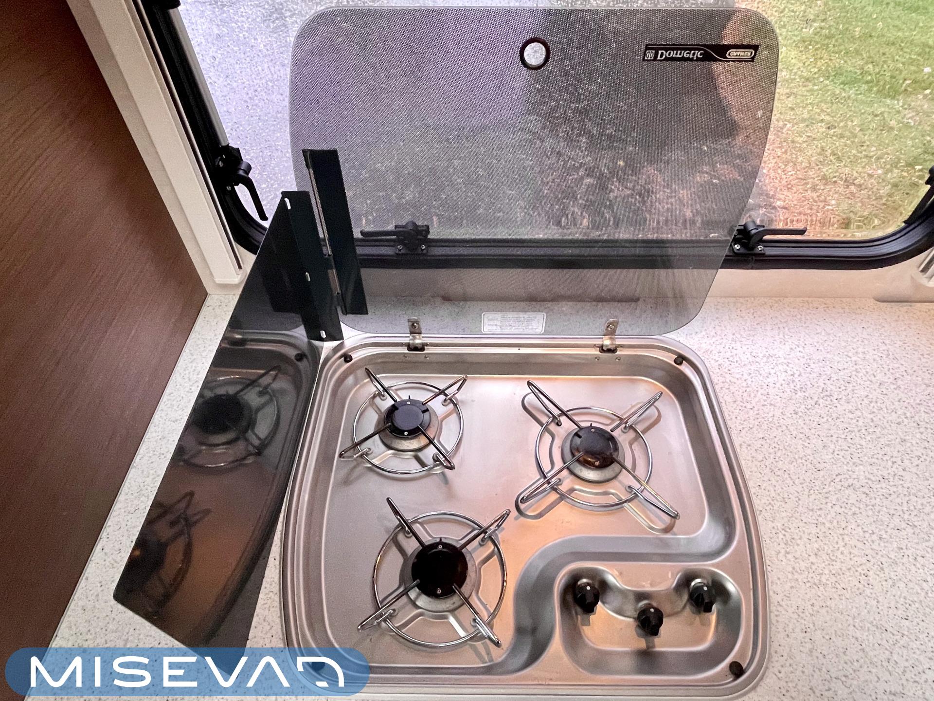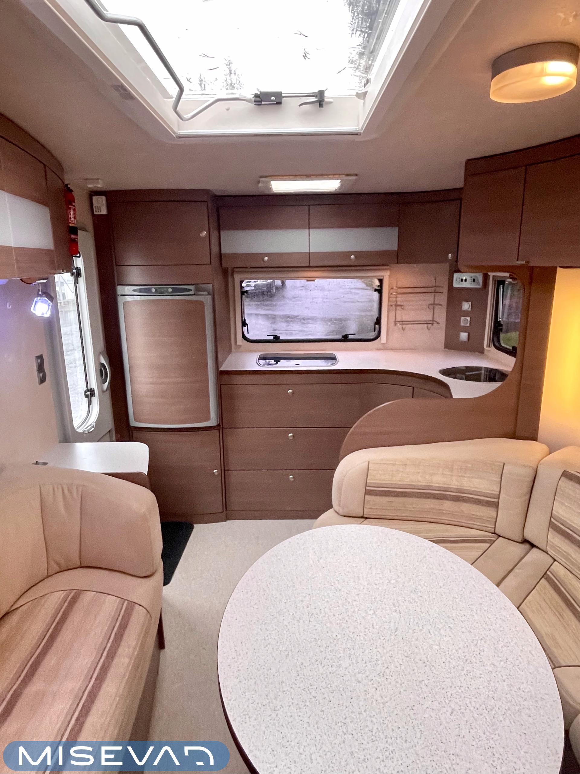 Alde, Jääkaappi, Kasetti WC, Lattialämmitys, Liesi, Nestekiertolämmitys, Pakastelokero, Parivuode, Pesuallas, TV-antenni tai lautasantenni, Takakeittiö, Markiisi, kwh-mittari, mover, sähkön ulosotto, Lämminvesiboileri, Kattoluukku, Radio, Tukijalat