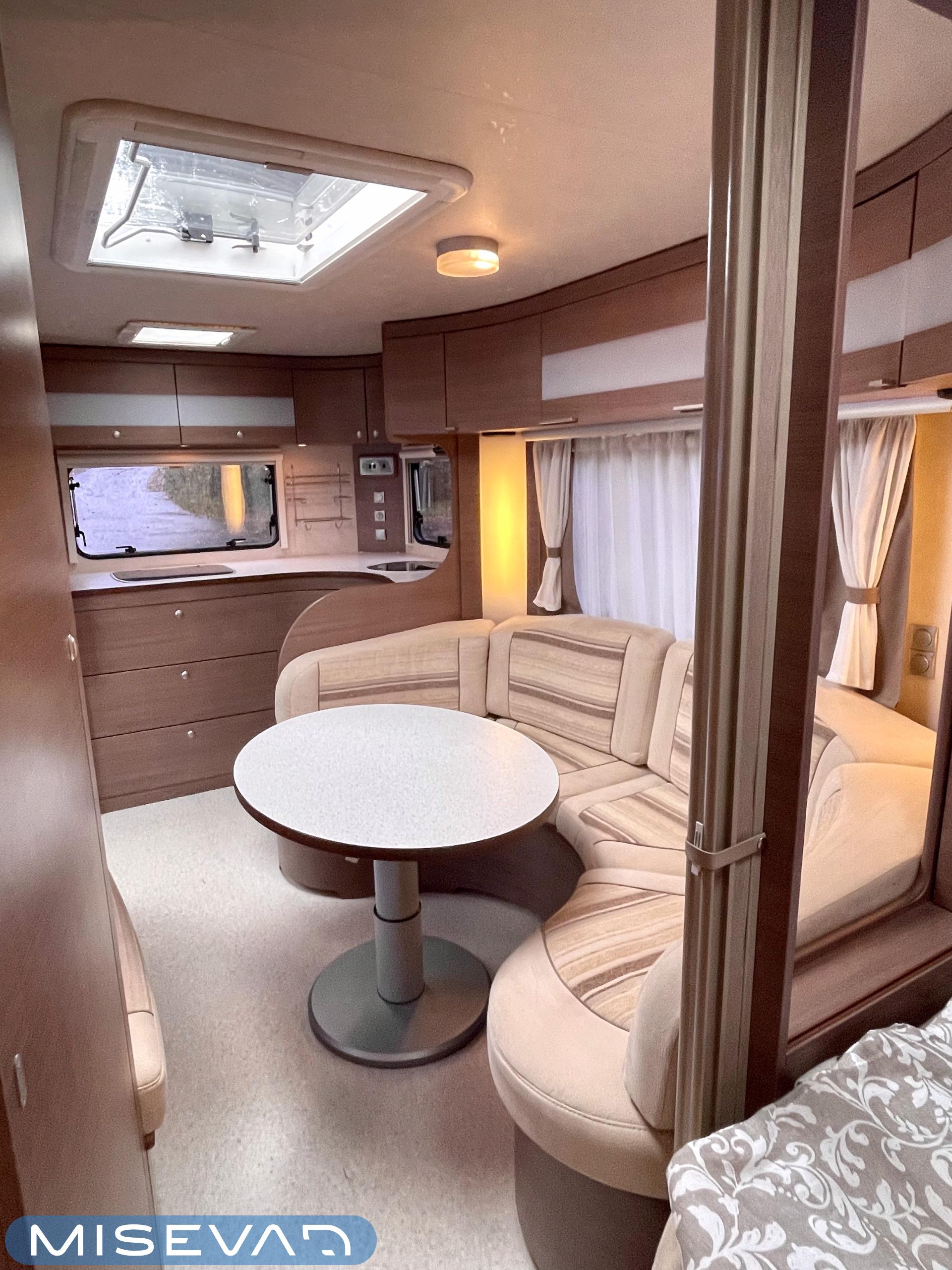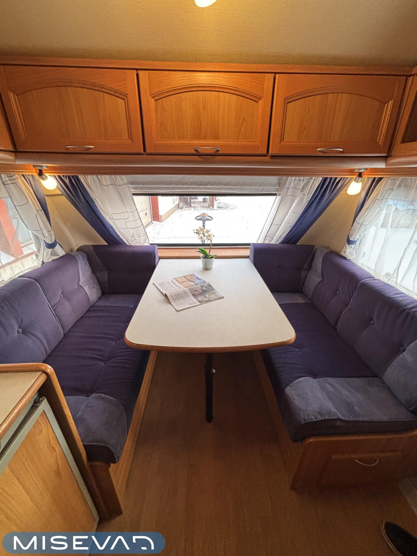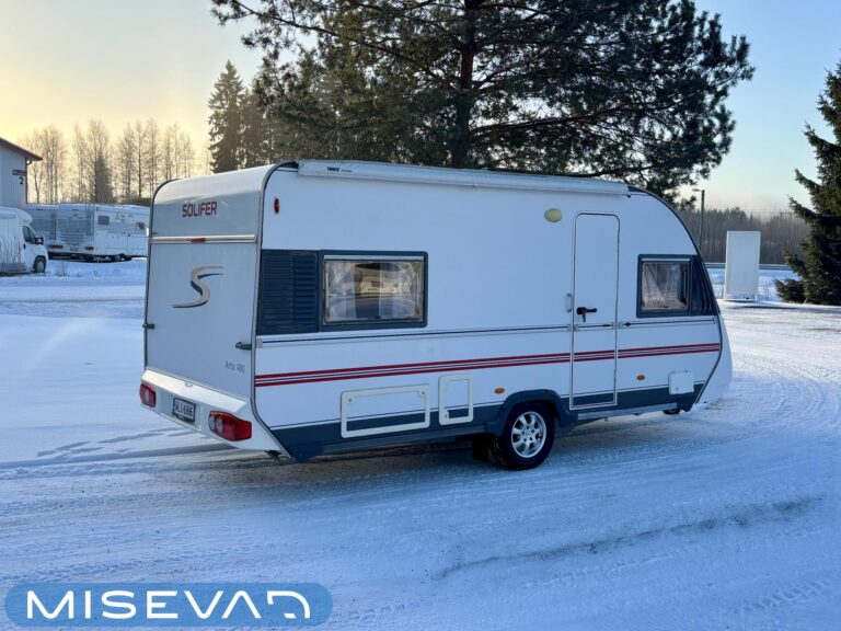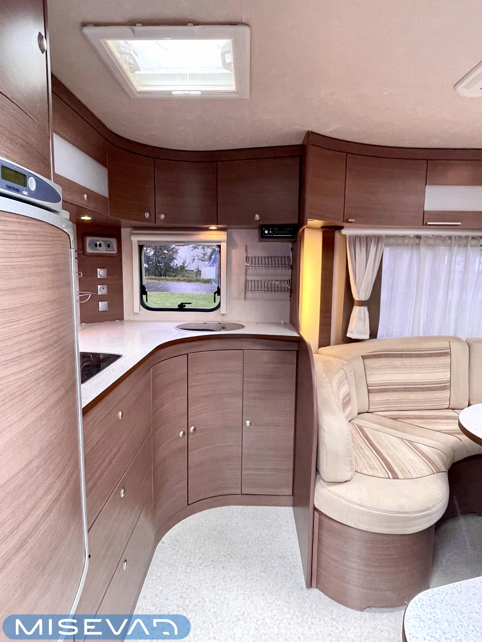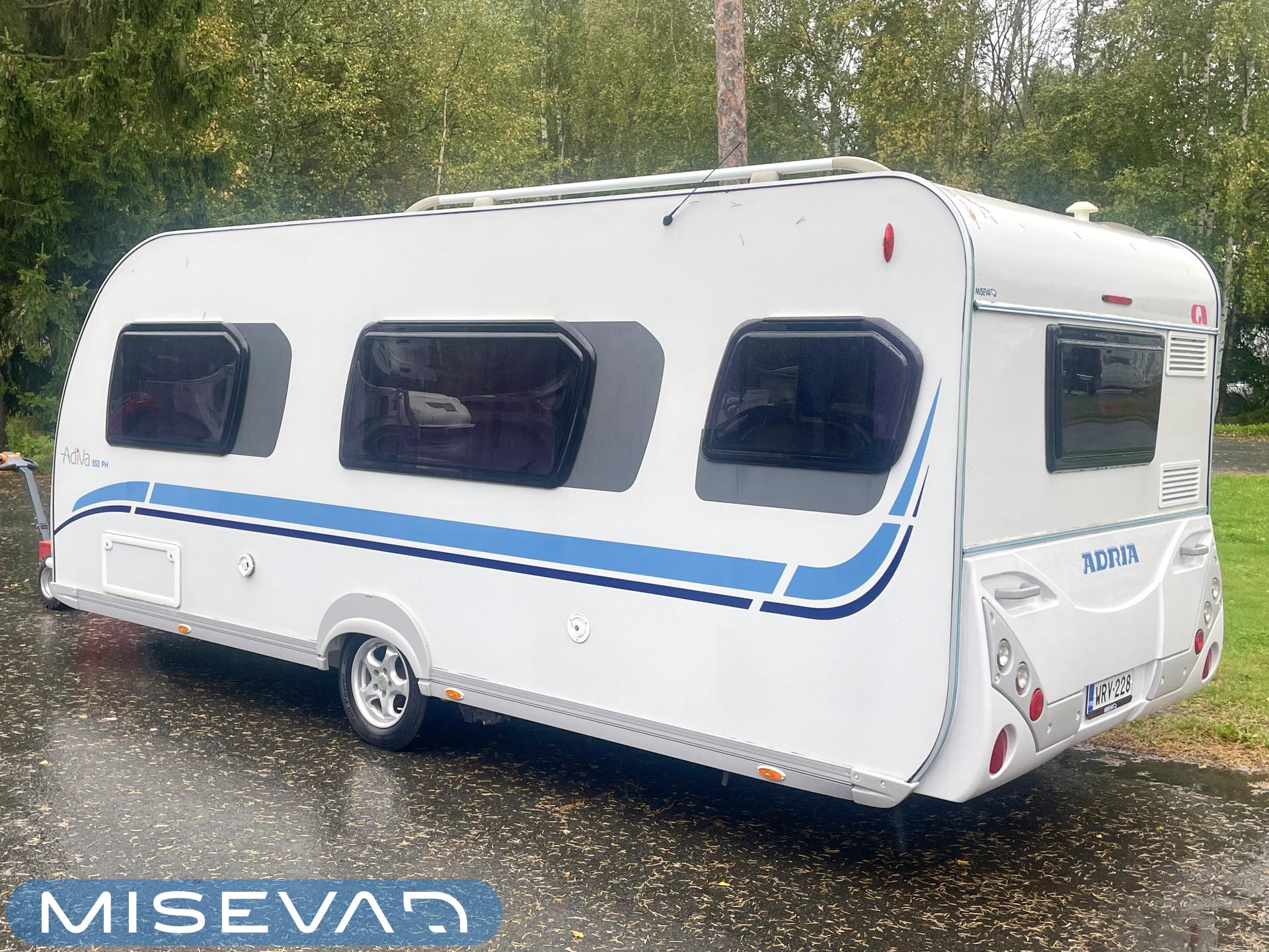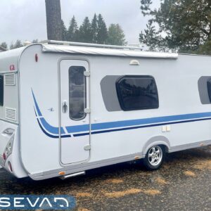 Tämä vaunu näyttää kuin kulkisi itsestään, sen verran virtaviivaisen näköinen Adria. Kaunokainen kuuluu kuitenkin koukkuun ja Adrian Adiva tulee helposti perässä. Ja vaunuahan voi leiriytyessä liikuttaa pelkän mooverin voimalla. Takakeittiö runsaalla laskutilalla on kuin suunniteltu vaativammallekin vaunukokille. Tilaa on oikeasti kivasti ja kaappitilaa poikkeuksellisen paljon. Ruokailuryhmä toimii molemminpuolin ja riittää vaikka kuudelle nälkäiselle. Visuaalisesti vaunu tarjoaa pehmeitä sävyjä ja kaarevia muotoja. Vaunun etuosassa löytyy parisänky ja vieressä WC-tila suihkulla. Makuutilaan saa kätevästi omaa rauhaa väliovella, jos aamulla nukuttaa vähän pidempään. Alde huolehtii tasaisesta lämmityksestä viileämpinäkin öinä. Tassut ja töppöset ei myöskään pääse kylmenemään lattialämmityksen ansiosta. Lisäksi vaunussa on todella runsaasti säilytystilaa. Molempien sohvien alla löytyy tilaa säilytyksen, sekä sängyn alla myöskin. Tästä kätevän kokoinen vaunu hyvillä varusteilla vapaa-aikaan. Alla vielä ihan uudet renkaat!