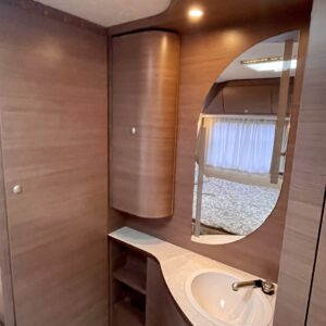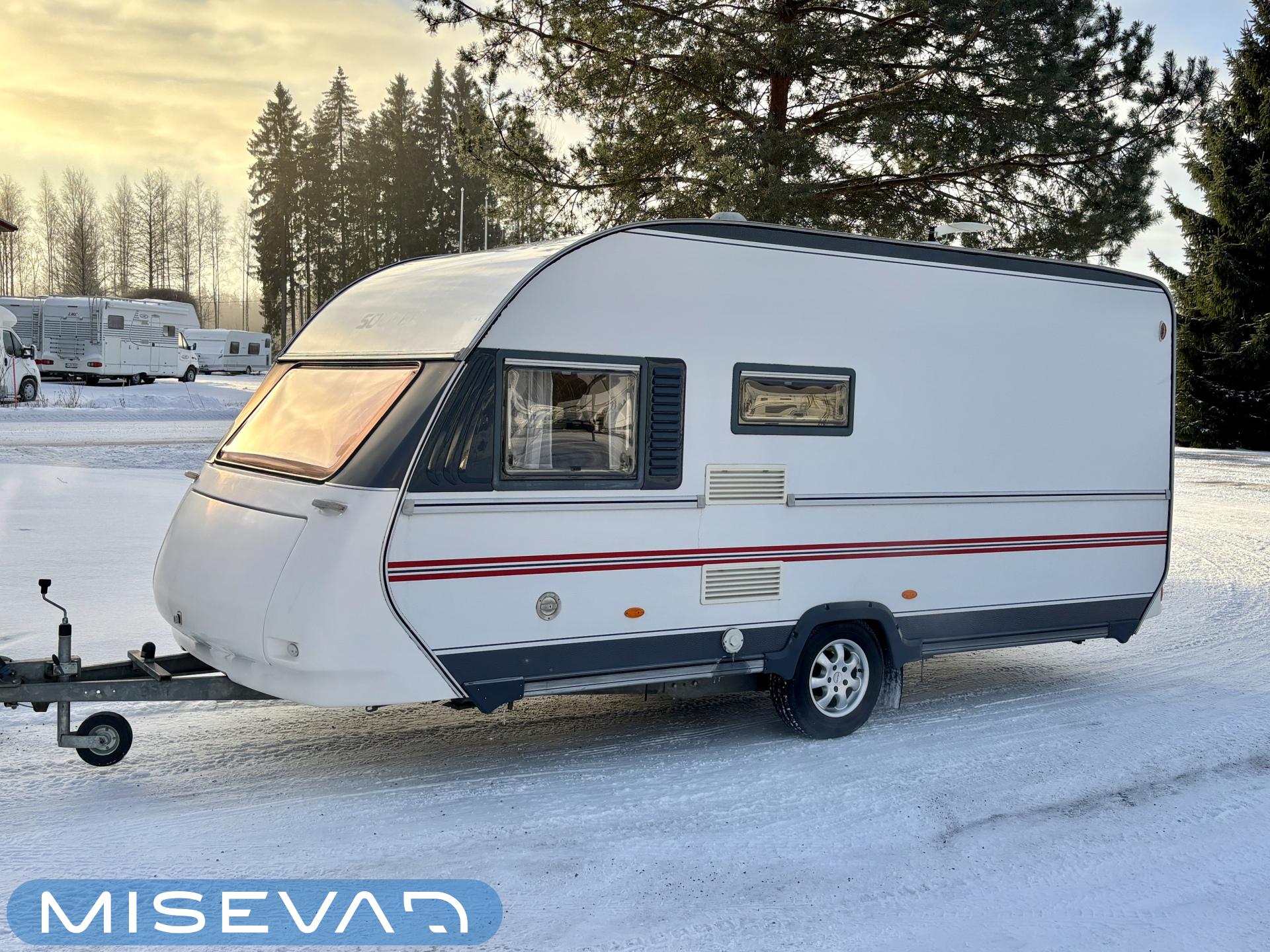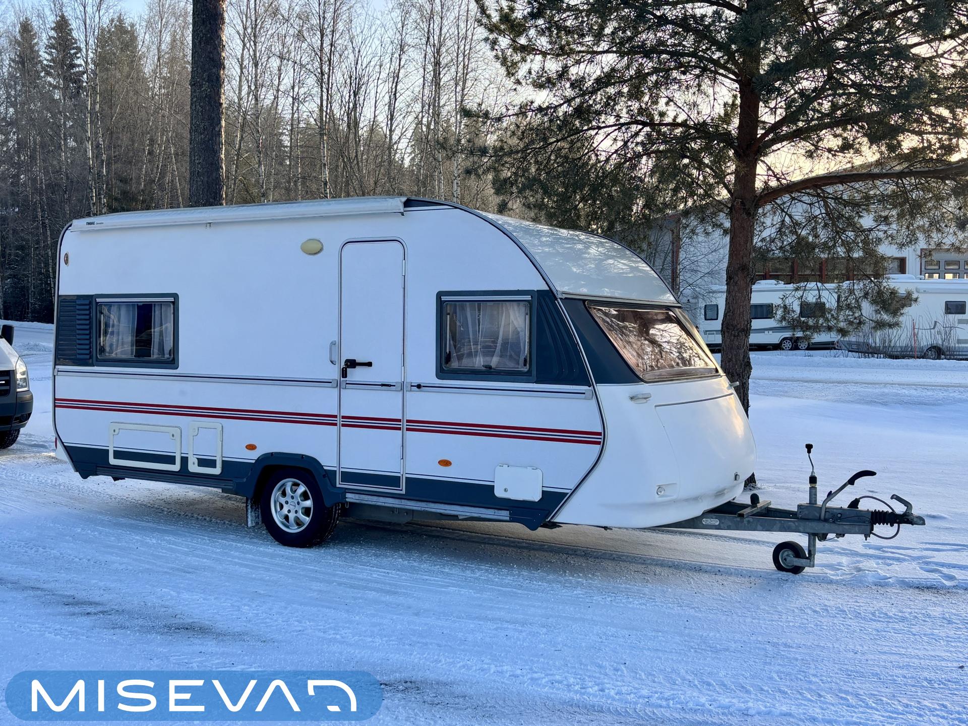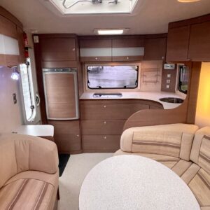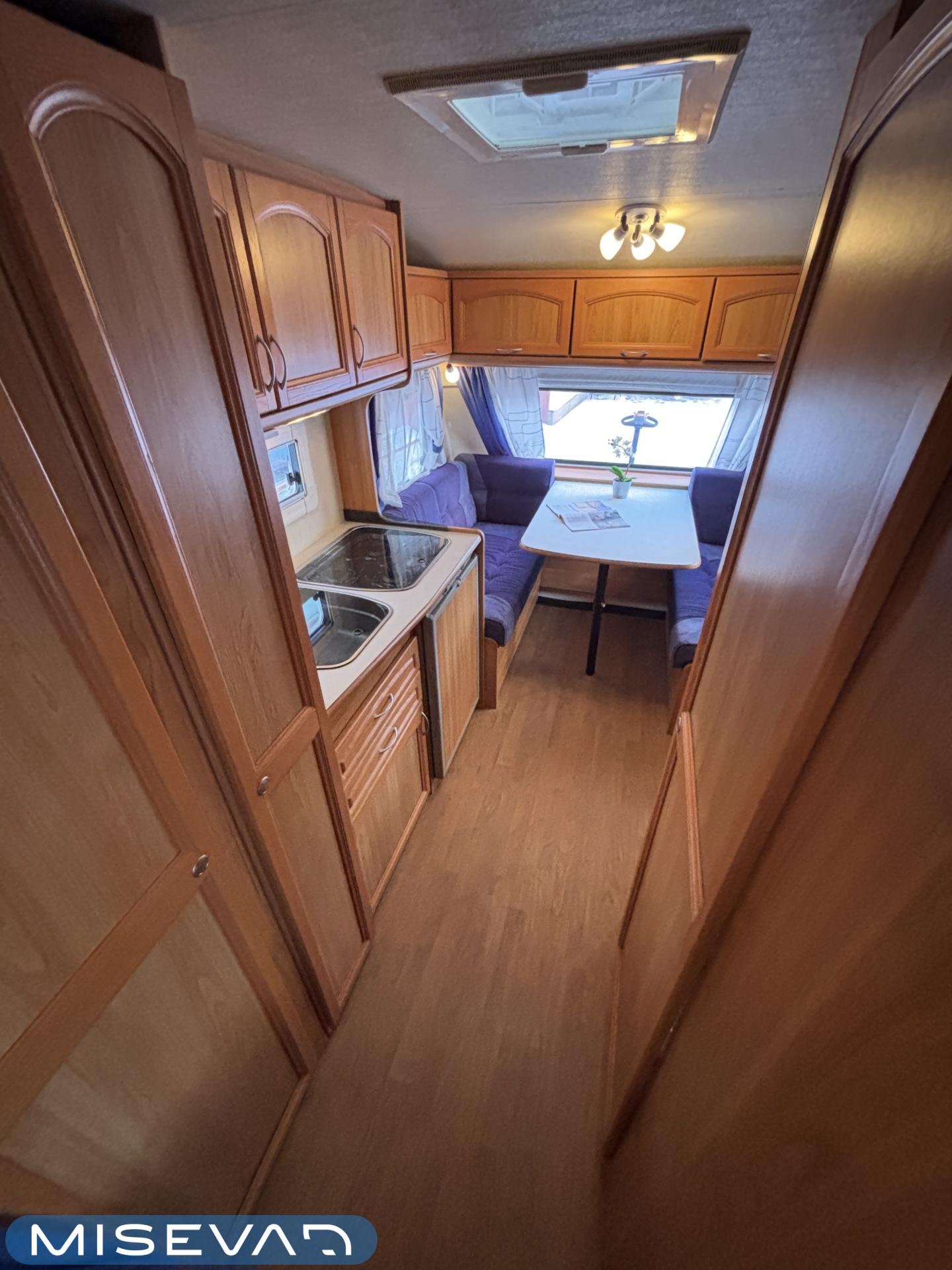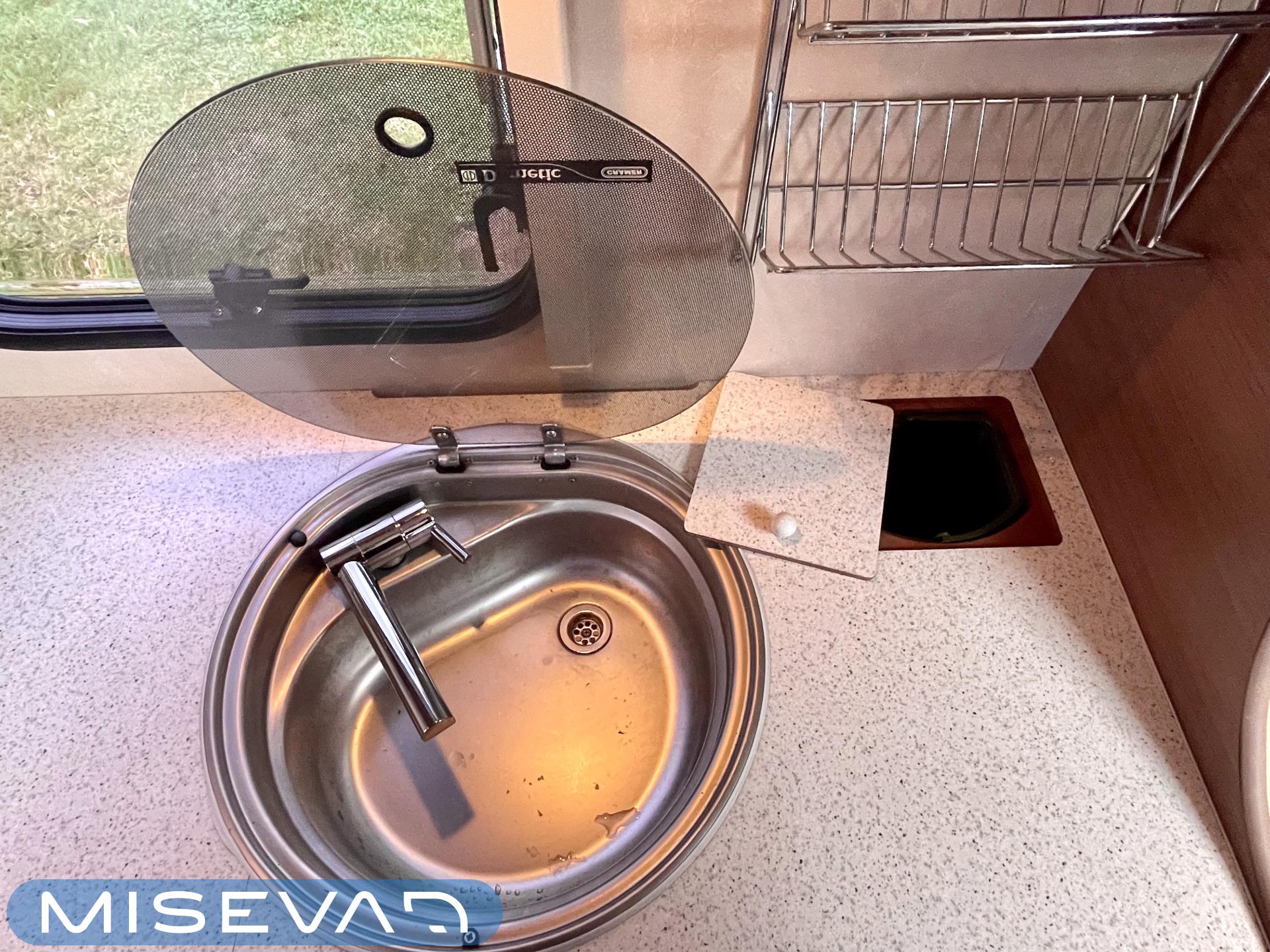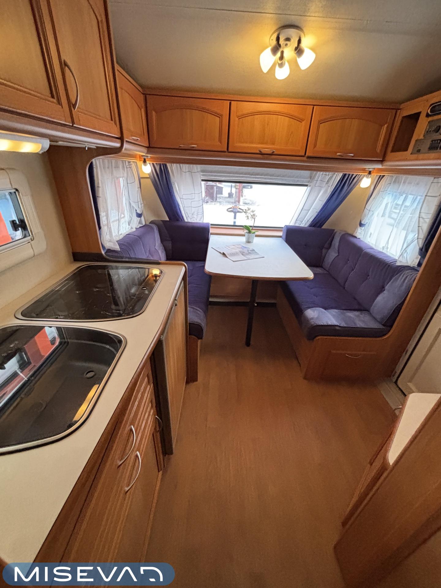 Tämä vaunu näyttää kuin kulkisi itsestään, sen verran virtaviivaisen näköinen Adria. Kaunokainen kuuluu kuitenkin koukkuun ja Adrian Adiva tulee helposti perässä. Ja vaunuahan voi leiriytyessä liikuttaa pelkän mooverin voimalla. Takakeittiö runsaalla laskutilalla on kuin suunniteltu vaativammallekin vaunukokille. Tilaa on oikeasti kivasti ja kaappitilaa poikkeuksellisen paljon. Ruokailuryhmä toimii molemminpuolin ja riittää vaikka kuudelle nälkäiselle. Visuaalisesti vaunu tarjoaa pehmeitä sävyjä ja kaarevia muotoja. Vaunun etuosassa löytyy parisänky ja vieressä WC-tila suihkulla. Makuutilaan saa kätevästi omaa rauhaa väliovella, jos aamulla nukuttaa vähän pidempään. Alde huolehtii tasaisesta lämmityksestä viileämpinäkin öinä. Tassut ja töppöset ei myöskään pääse kylmenemään lattialämmityksen ansiosta. Lisäksi vaunussa on todella runsaasti säilytystilaa. Molempien sohvien alla löytyy tilaa säilytyksen, sekä sängyn alla myöskin. Tästä kätevän kokoinen vaunu hyvillä varusteilla vapaa-aikaan. Alla vielä ihan uudet renkaat!