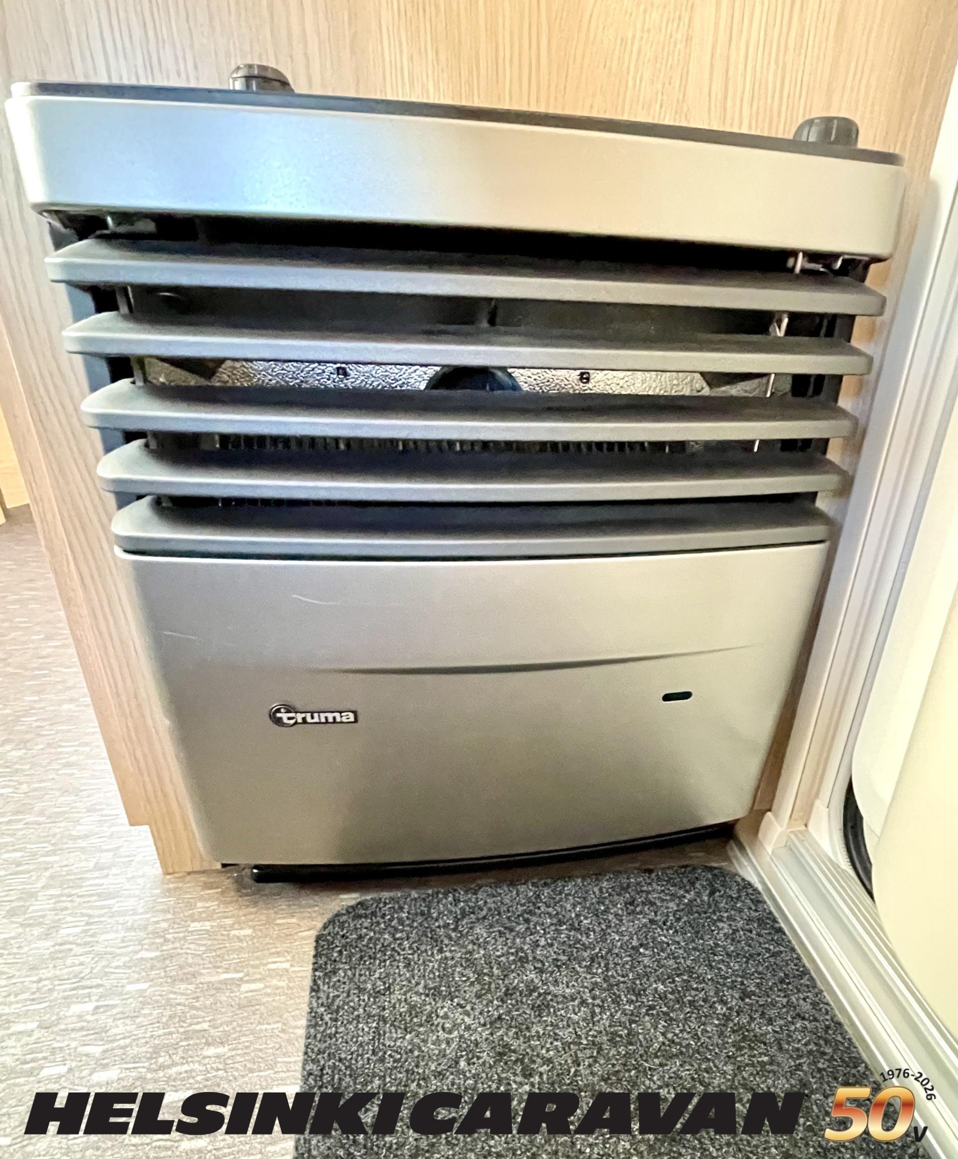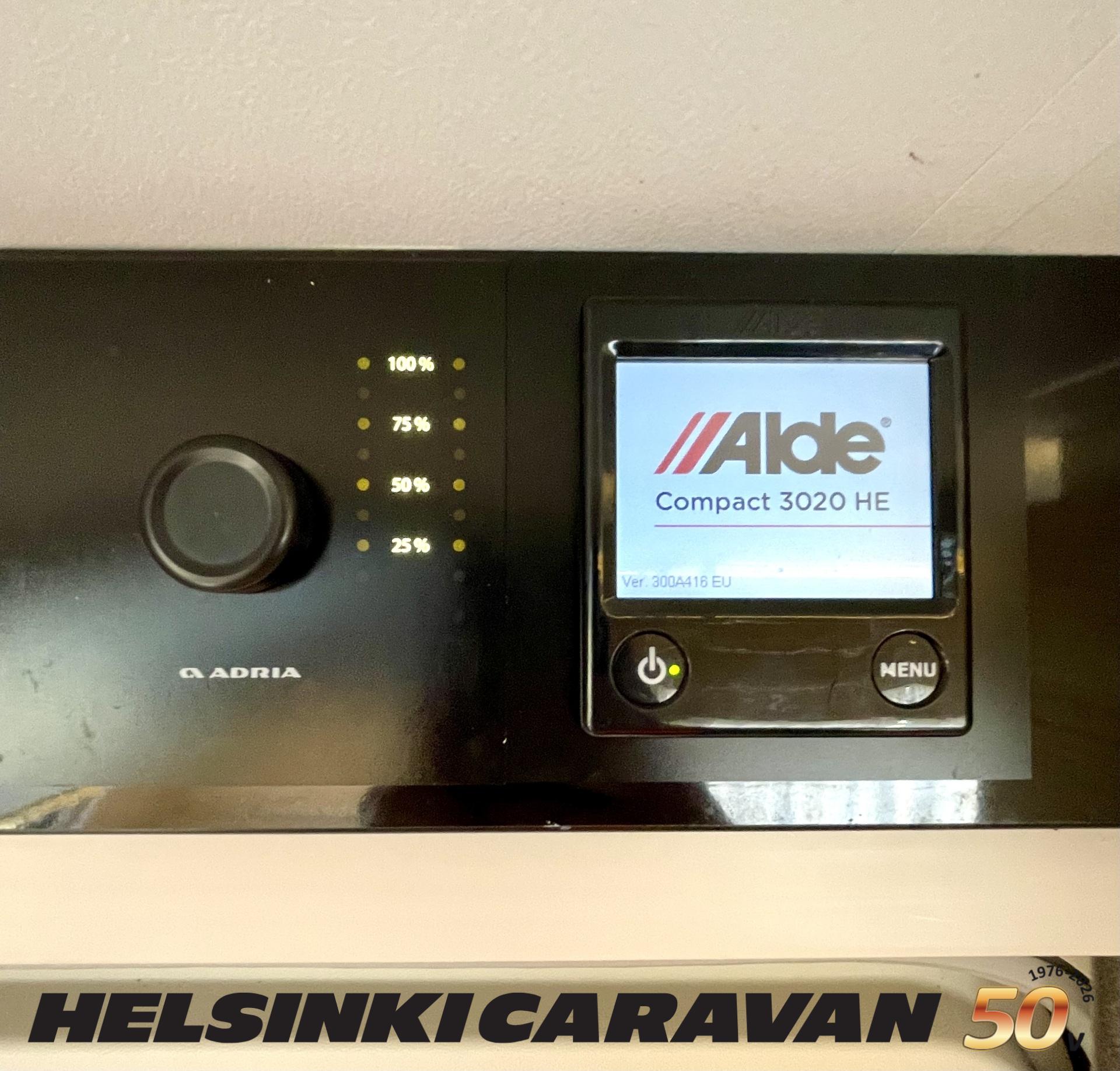 Lämmitys hoituu Alden nestekiertoisen keskuslämmityksen avulla ja lisäksi lattiasta löytyy sähköinen lattialämmitys. Sängyn alta löytyy myös harmaavesisäiliö, joten tällä vaunulla vesien käyttö onnistuu vuodenajasta riippumatta!