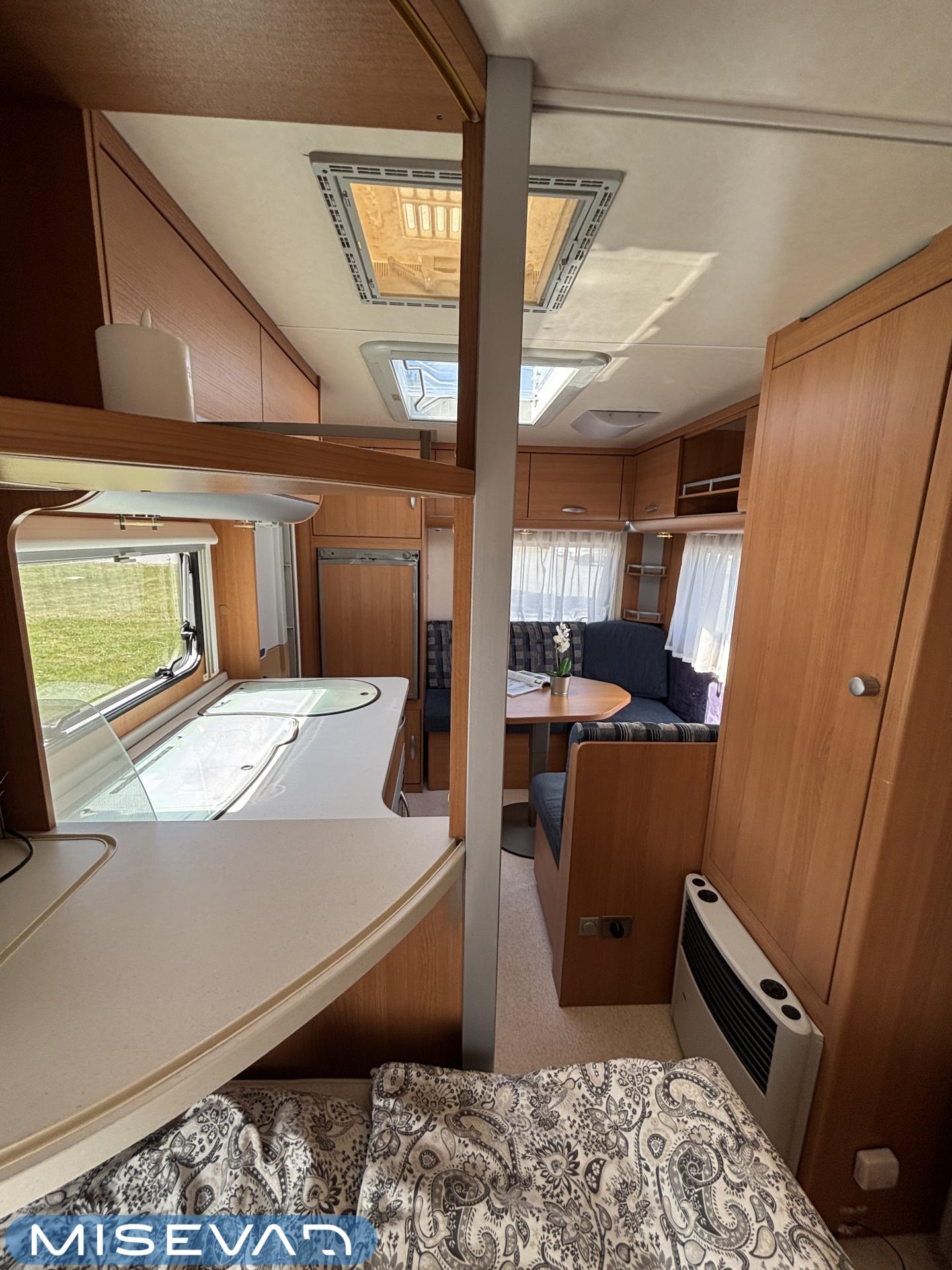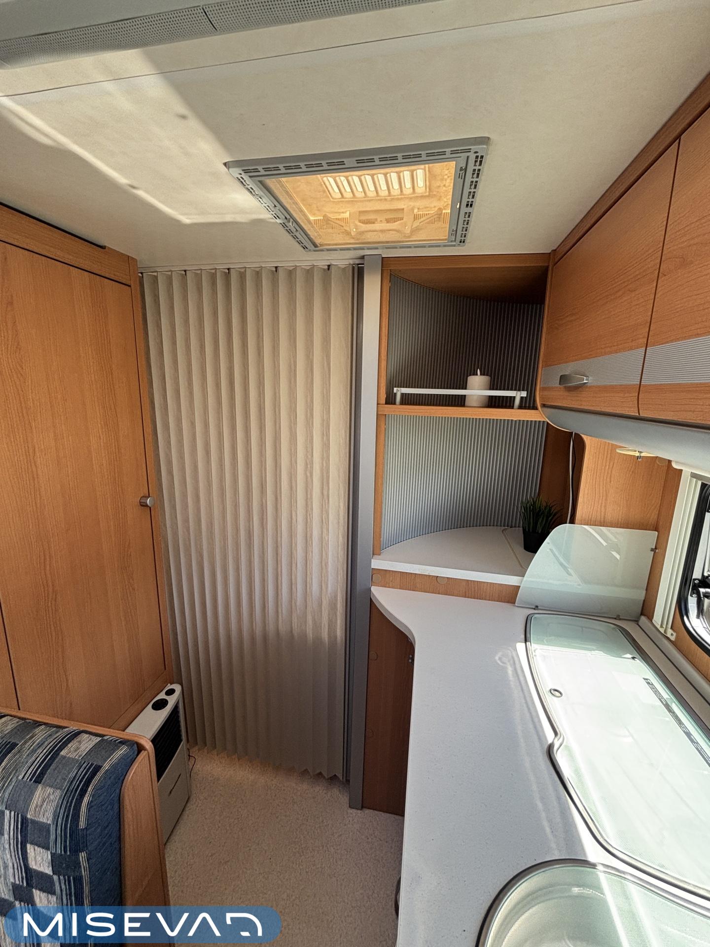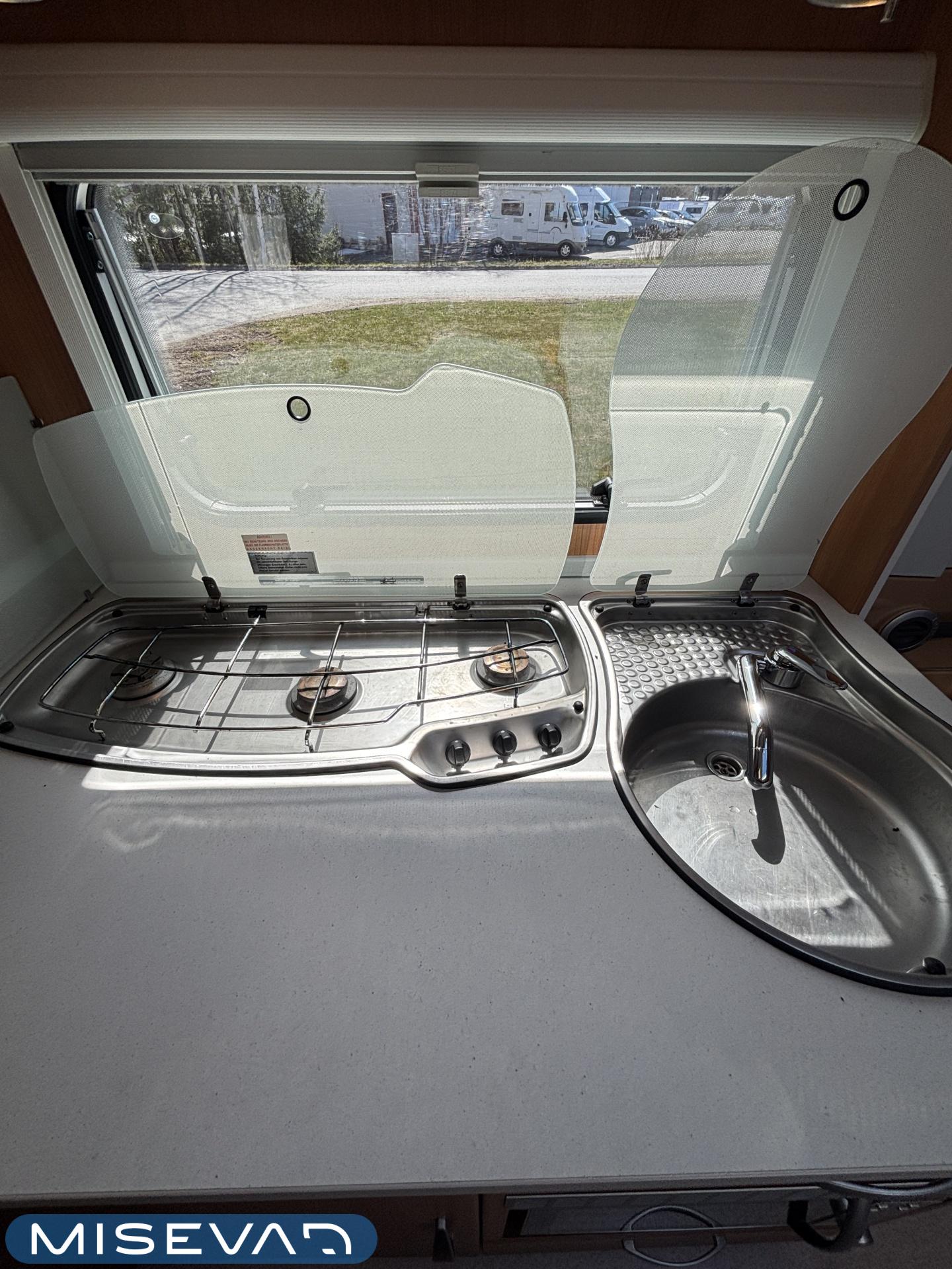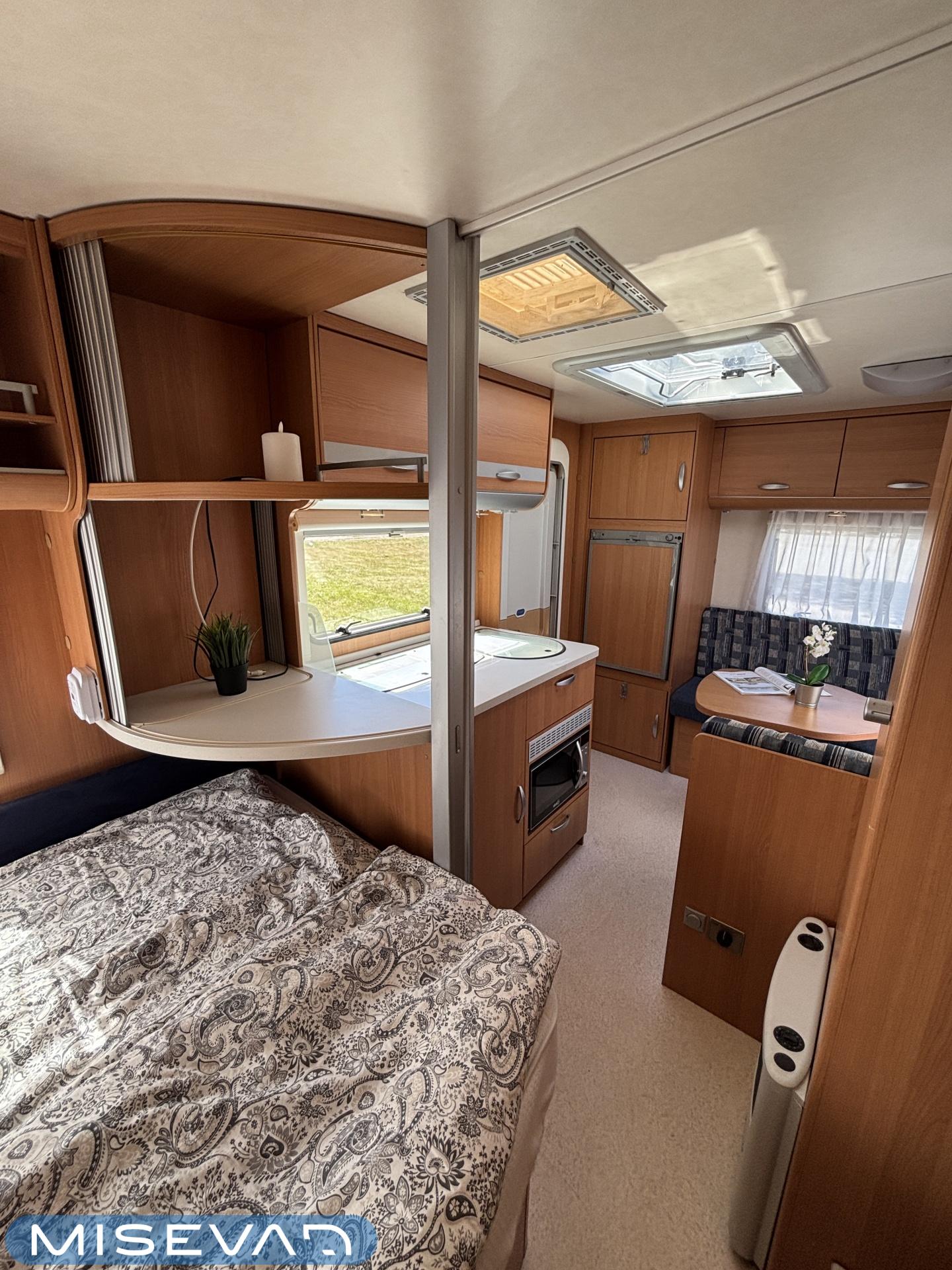 Etukeittiöpohjaratkaisu kasvattaa hiljalleen suosiotaan eikä tämänkään vaunun kohdalla tarvitse ihmetellä miksi. Mikäs siinä kokkaillessa ja nautiskellessa panoraamaikkunan tarjoamista maisemista.
