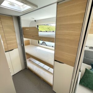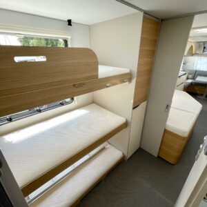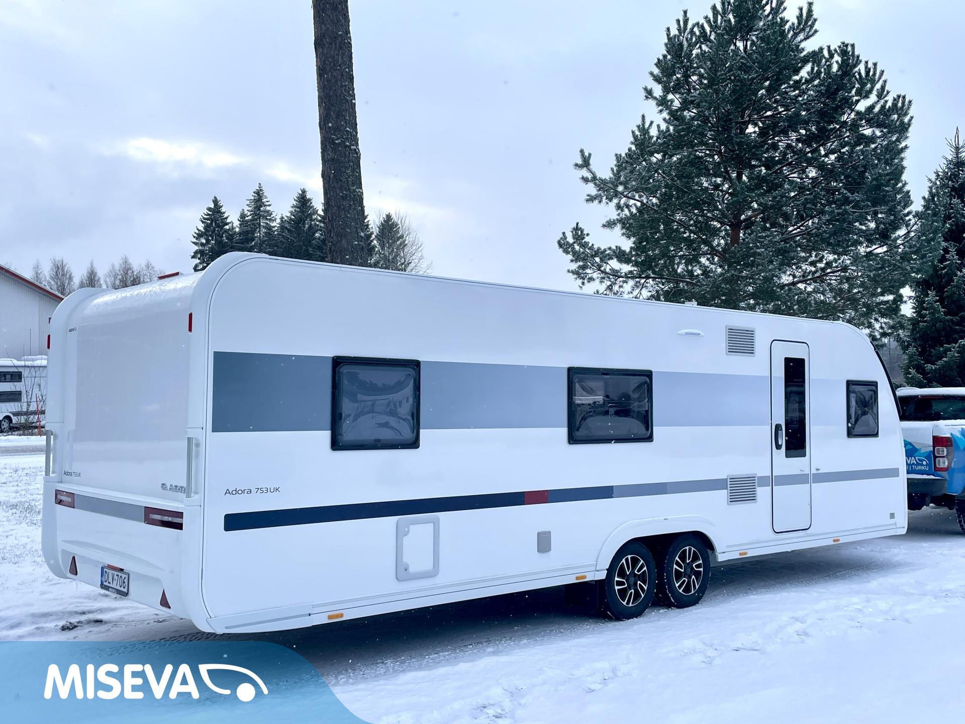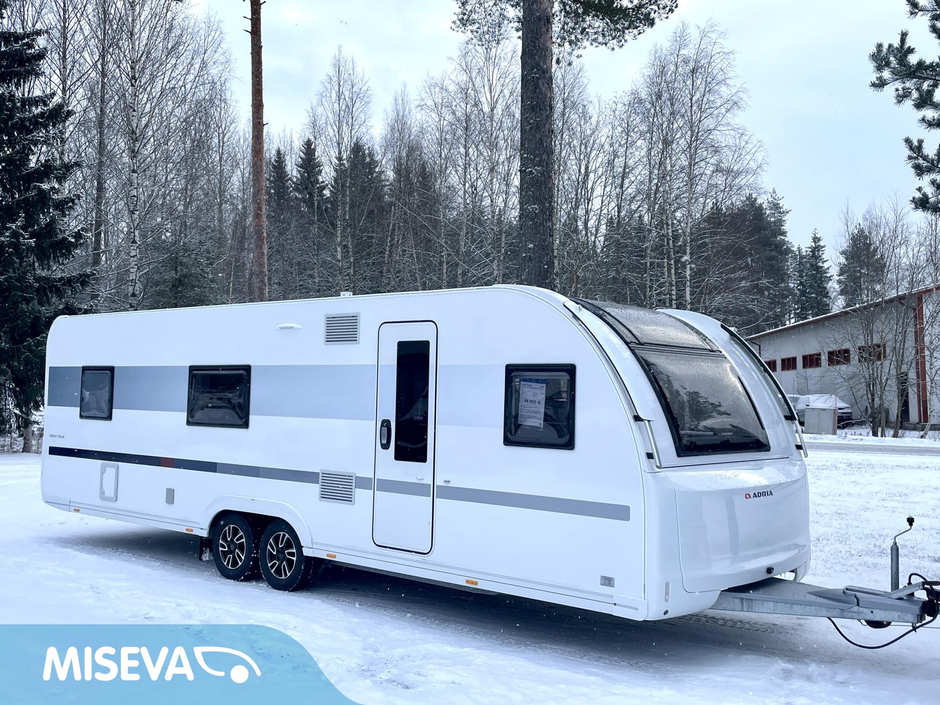 Upea Adrian perhevaunu kolmikerrosvuoteilla ja nestekiertoisella lämmityksellä.