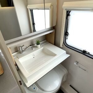 Alde, Bluetooth, Jääkaappi, Kasetti WC, Kerrossänky, Lattialämmitys, Liesi, Lämminvesiboileri, Nestekiertolämmitys, Pakastelokero, Parivuode, Pesuallas, Sähköpatruuna, Lattialämmitys (sähkö), pullonvaihtaja, Erikoisvanteet, Kattoluukku, Tukijalat