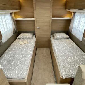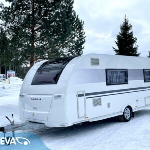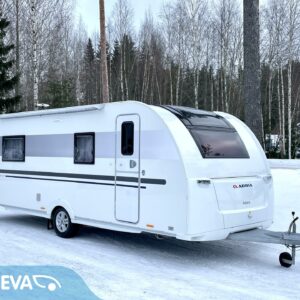 Haluttu ja kehuttu HT-sarjan Adria todella upeakuntoisena yksilönä ensimmäiseltä pilkuntarkalta omistajalta! Vaunun sydänhän on HT-sarjasta tuttu etukeittiö, mistä löytyy iso jääkaappi ihanteellisella käyttökorkeudella, sekä kaasu-uuni. Keittiöstä löytyy myös todella hyvin laskutilaa tavaroille. Mainittakoon vielä heti käyntioven vieressä oleva vaatekaappi minne on helppo laittaa ulkovaatteet heti vaunuun sisään tultaessa. Keittiön päällä on iso panoramaikkuna mistä tulee mukavasti luonnonvaloa sisätiloihin. Keskivaiheilta löytyy L-sohva ja vaunun toiselta puolelta löytyy vielä sivusohva mikä yhdistyy tähän oleskelu/ruokailuryhmään. Extrana vielä erillinen siirreltävä jalkarahi. Tästä istuinryhmästä saadaan tarvittaessa sijattua 120 x 200cm kokoinen vuode Makuuhuoneessa on pitkittäiset erillisvuoteet ja tämän tilan saa erotettua omaksi osastokseen paljeoven avulla. Vuoteiden alle jää säilytystilaa ja toisen vuoteen alle on käynti myös ulkopuolelta. Vaunun takaosassa on koko vaunun levyinen ”spa”osasto, eli WC/kylpyhuonetilat erillisellä suihkutilalla. Vaunun vasemmasta etukulmasta löytyy vielä ulkopuolelta käytettävä erillinen säilytystila. Lämmitysjärjestelmänä on Alden tehokas ja tasaisen lämmön tuottava nestekiertolämmitys. Samasta ”pannusta” saadaan myös lämmin käyttövesi ja luonnollisesti myös sähkövastukset (sähköpatruuna) tästä löytyy. Ja mukavuusvarusteena tietysti sähköinen lattianlämmitys. Ihan huippuhieno vaunu valmiina seuraavalle käyttäjälle juuri tarkastettuna ja katsastettuna.
