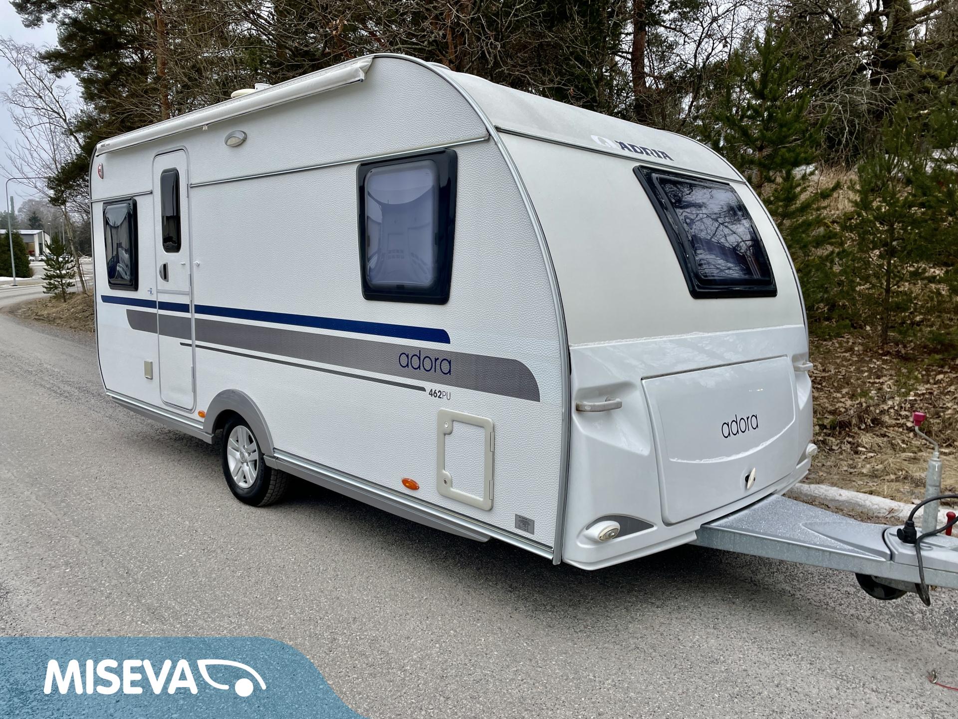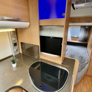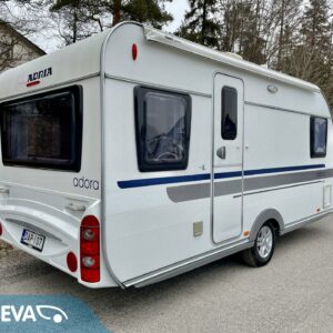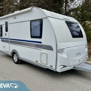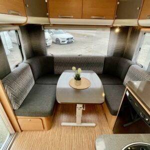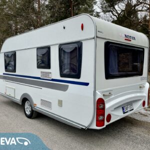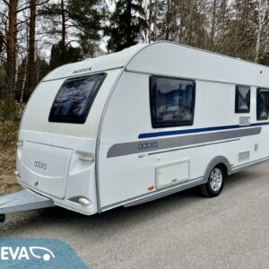 Hienokuntoinen parivuoteella oleva Adria jossa erikoisuutena L-muotoinen keittiö hyvällä laskupinnalla Takapään U-ryhmässä istut mukavasti ruokaillen tai televisiota katsellen.