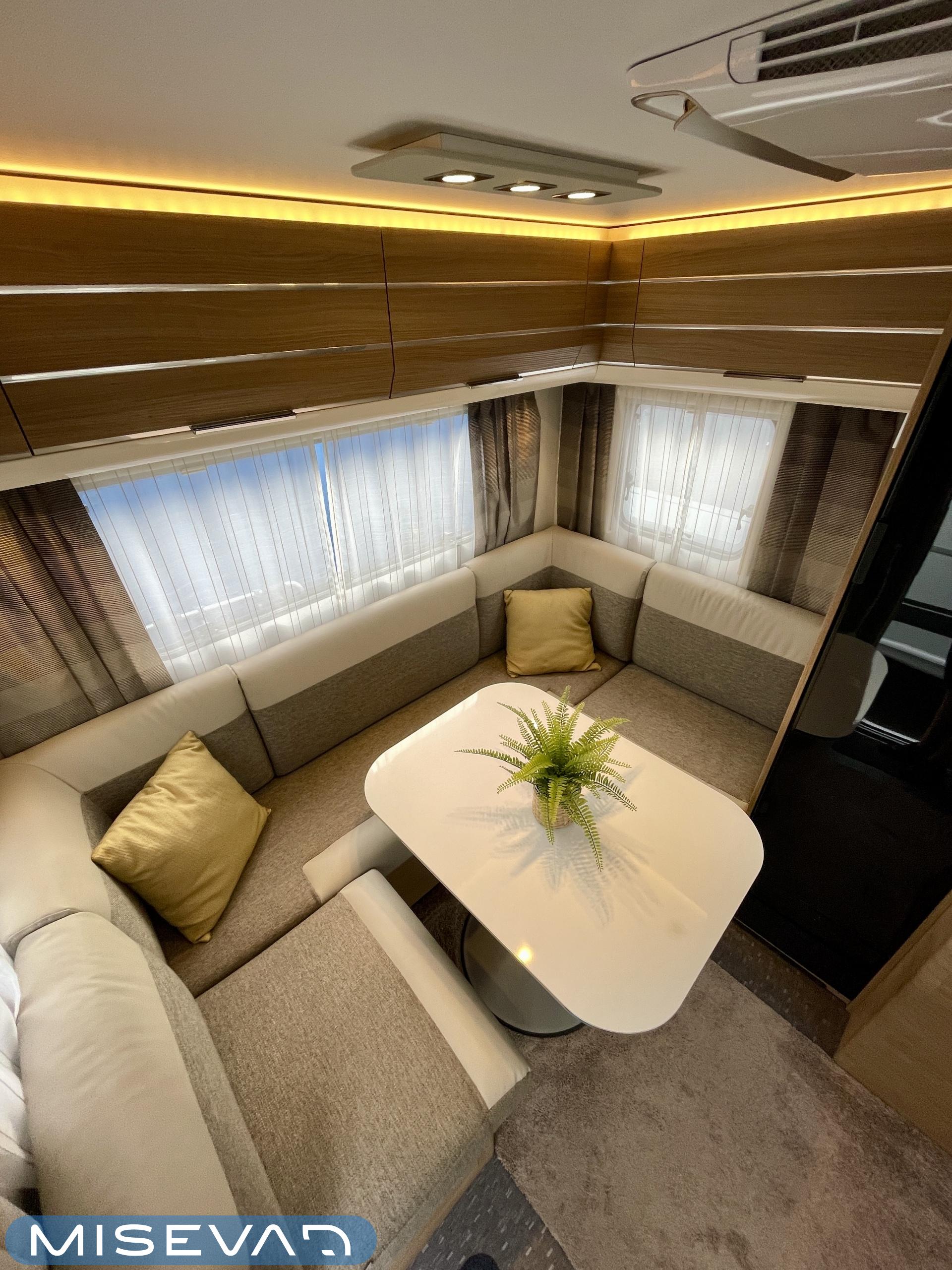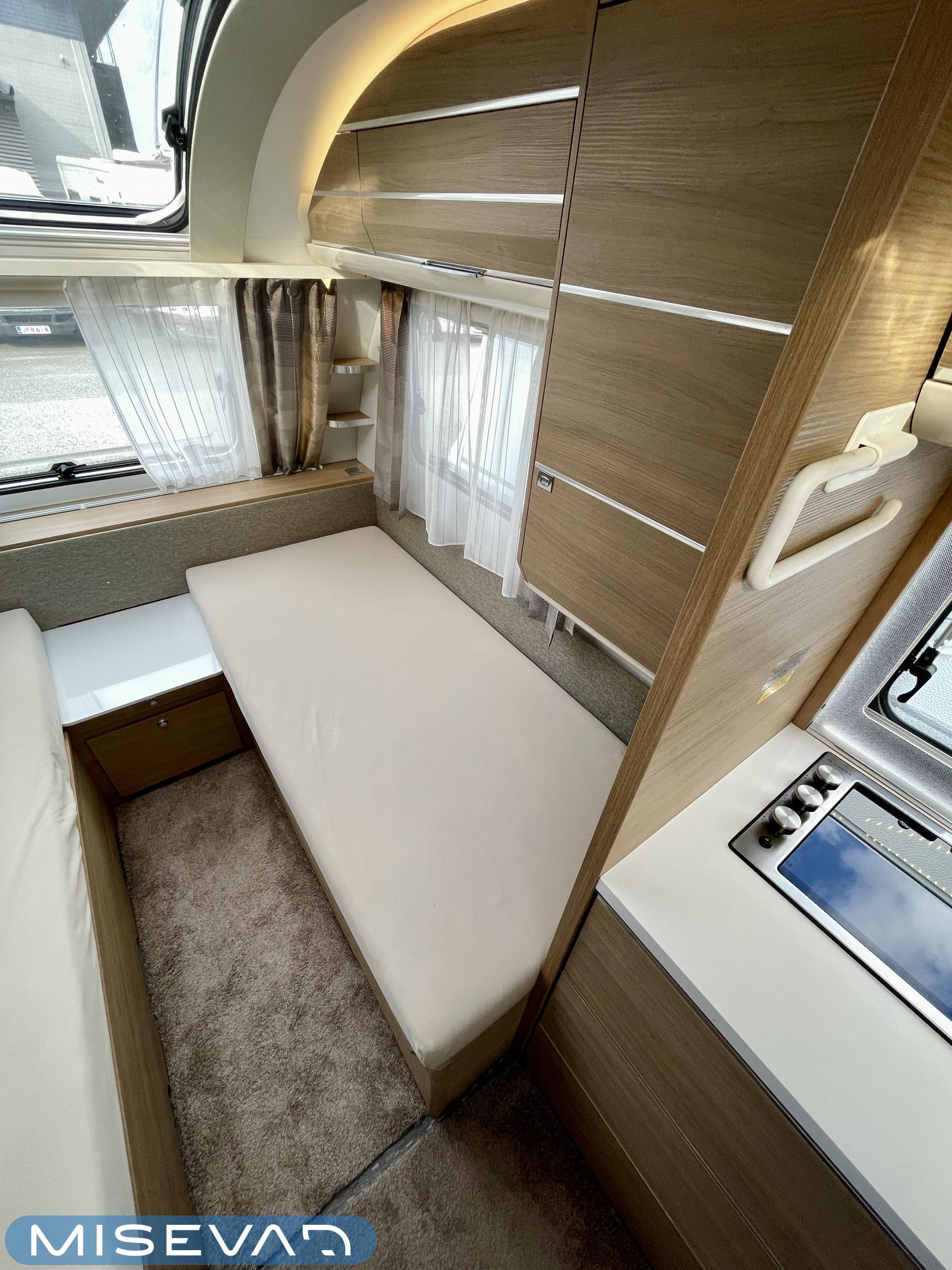 Alde, Sähköpatruuna, Erikoisvanteet, Erillisvuoteet, Eristetty harmaavesisäiliö, Jääkaappi, Kahdet renkaat, Kasetti WC, Kasettiverhot, Kattoluukku, Lattialämmitys, Liesi, Lämminvesiboileri, Markiisi, Nestekiertolämmitys, Pakastelokero, Pesuallas, Radio, TV-antenni tai lautasantenni, Tukijalat, Lattialämmitys (sähkö), Ilmastointi (asuintila), kwh-mittari, harmaavesisäiliön lämmitys, mover, jenkkijääkaappi, Asuinosan hyttysovi/verho, Panoraamaikkuna edessä