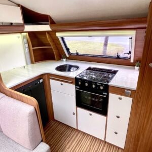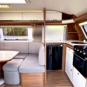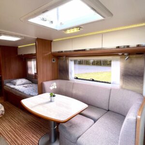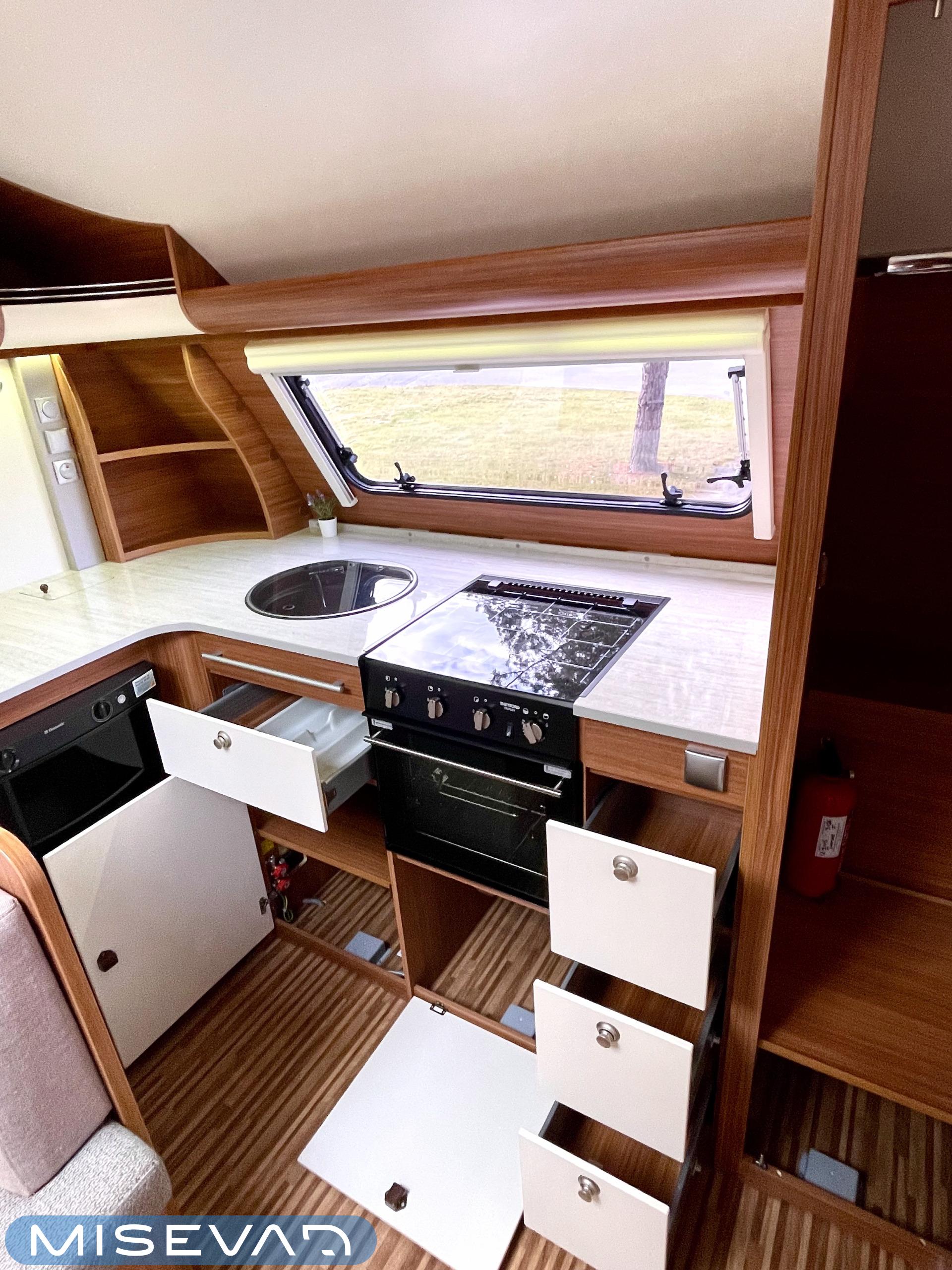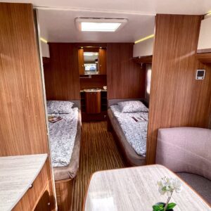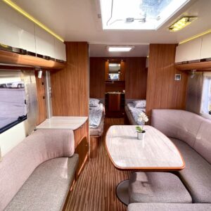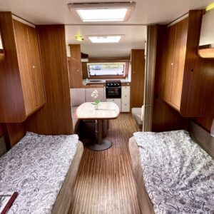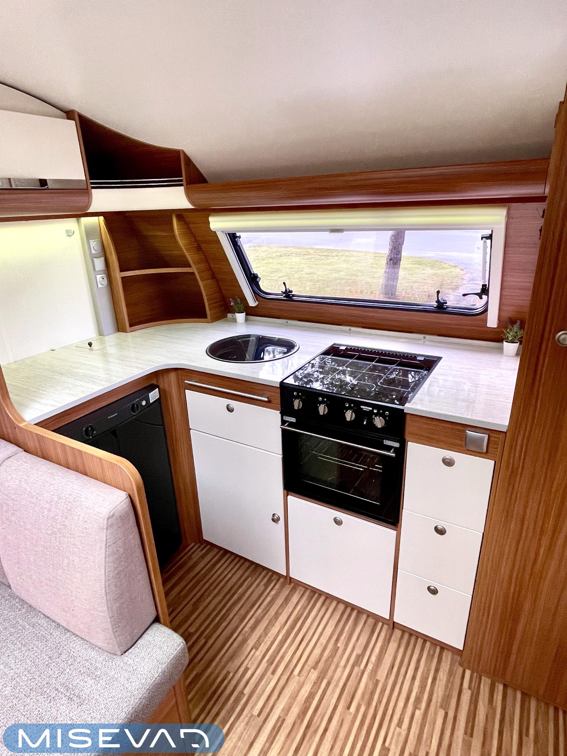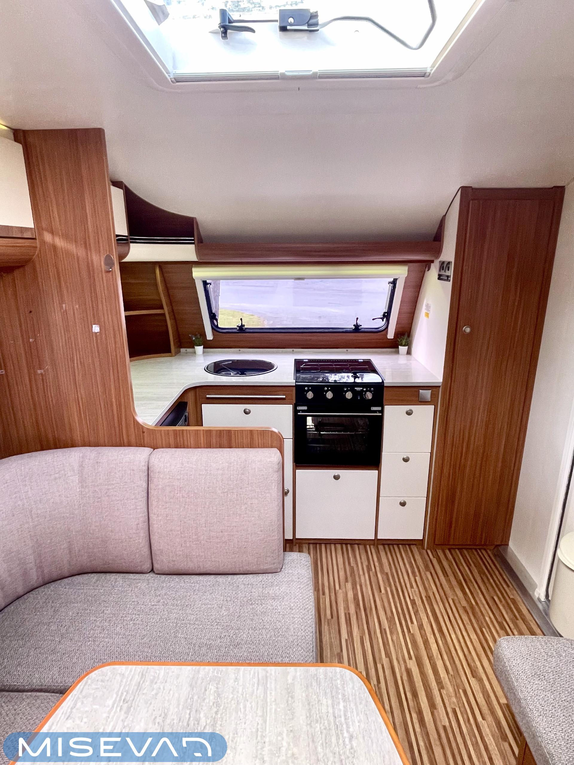 Nyt iski Misevalaisissakin vaunukuume! Adrian HT malli herättää heti kiinnostuksen kenessä tahansa. Pelkästään etukeittiö on jo monen hakuagenteissa ruksittuna. Se mahdollistaa kokkailevalle vaunuilijalle huipputilat ruoanlaittoon! Tilaa on ja kaapistoja myöskin. Toinen tämän vaunun ehdoton hitti on taka-wc. Sijoittelu takana tekee asuinosasta erityisen avaran ja vaunun takaosassa saa käydä asioilla ihan rauhassa. Taka-wc:tä voi sanoa hyvällä omatunnolla jo ihan aidoksi kylpyhuoneeksi. Kylpyamme vain puuttuu. Vaunu tarjoaa myös erillissängyt ja mukavan oleskelutilan. Sohvaa on etuosassa molemmin puolin ja pöydän ympärille mahtuu kivasti porukkaa. Kaiken kruunaa Alden nestekiertoinen lämmitys ja se mahdollistaa vaunun käytön vaikka ihan sydäntalvellakin. Tulikohan jo kerrottua että vaunu on erittäin avara ja siisti? No, se on! Tule vaikka itse tutustumaan!