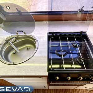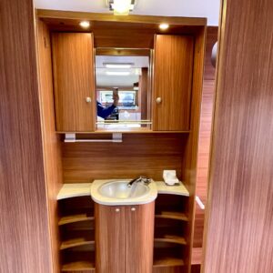 Lattialämmitys- sähköinen, Jääkaappi, Erillisvuoteet, Alde- nestekiertoinen keskuslämmitys, kwh-mittari, Kaasu-uuni, Kasetti WC, Kasettiverhot, Kattoluukku, Liesi, Lämminvesiboileri, Markiisi, Pakastelokero, Pesuallas, Suihku, Sähköpatruuna, TV-antenni tai lautasantenni, Tukijalat