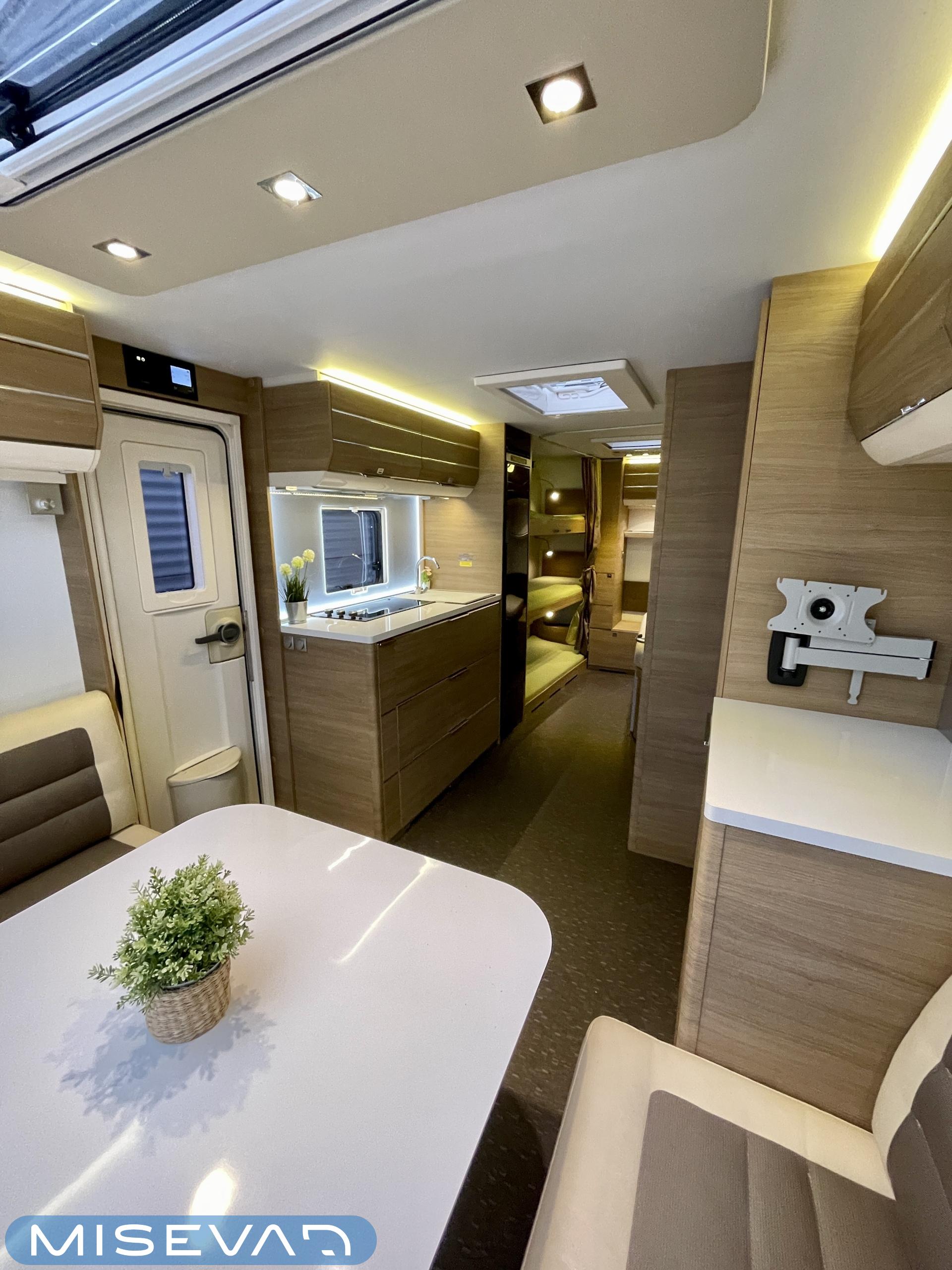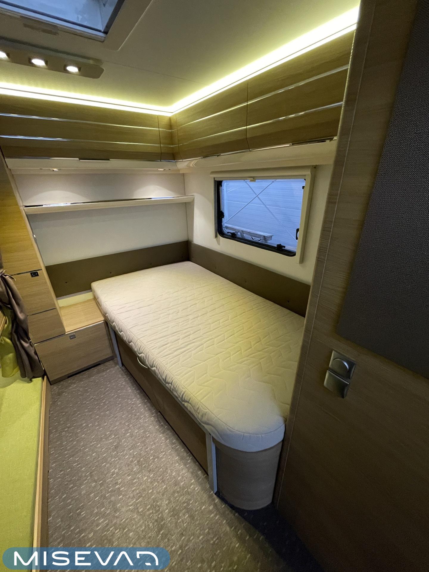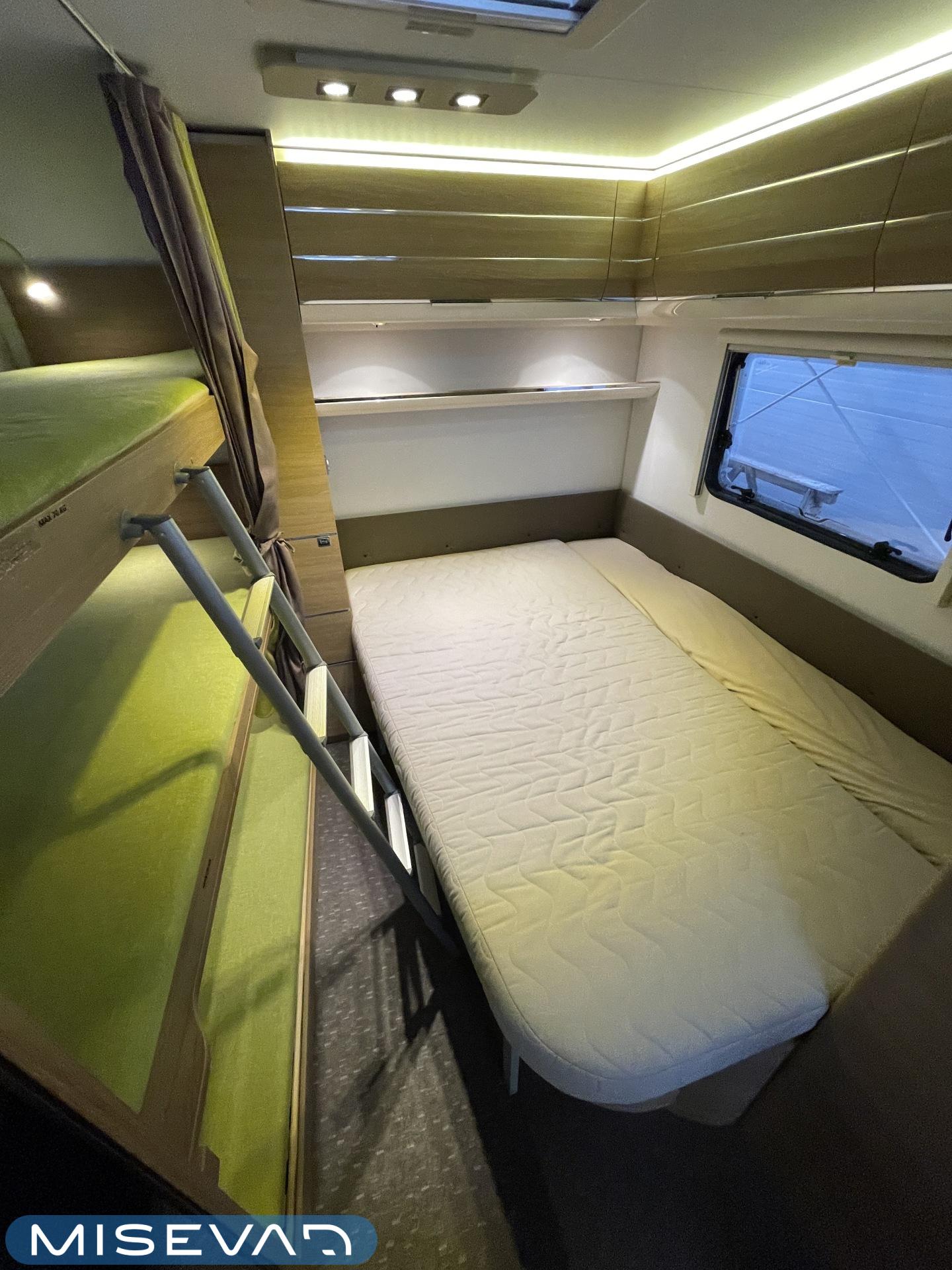 Bluetooth, Alde, Jääkaappi, Kasetti WC, Kasettiverhot, Kattoluukku, Kerrossänky, Liesi, Lattiamatot asunto-osassa, MP3, Markiisi, Parivuode, Tukijalat, Asuinosan hyttysovi/verho, jenkkijääkaappi, liesituuletin, Lattialämmitys (sähkö), Lämminvesiboileri, TV-antenni tai lautasantenni, Sähköpatruuna, Pakastelokero, televisioteline, Kesärenkaat