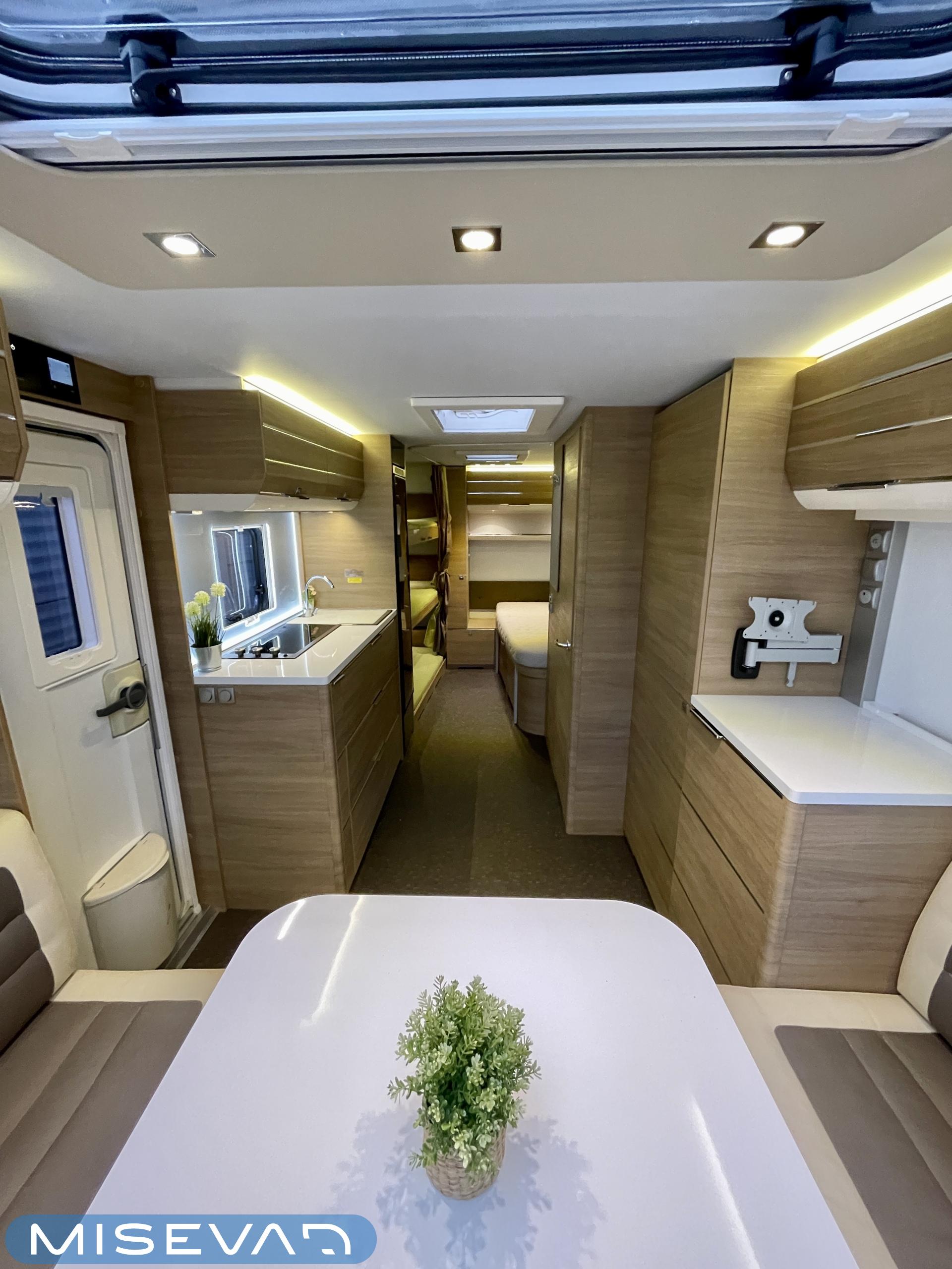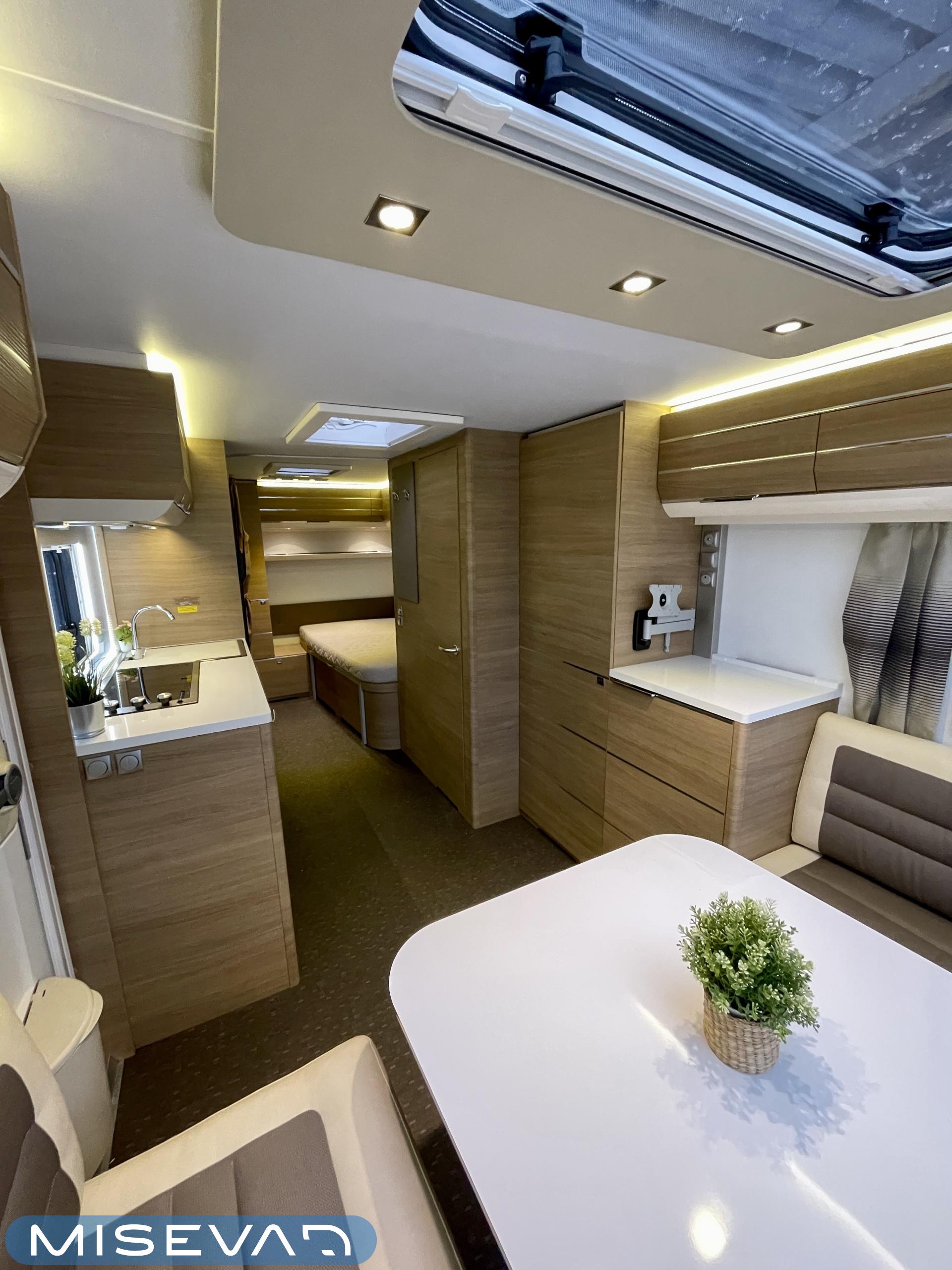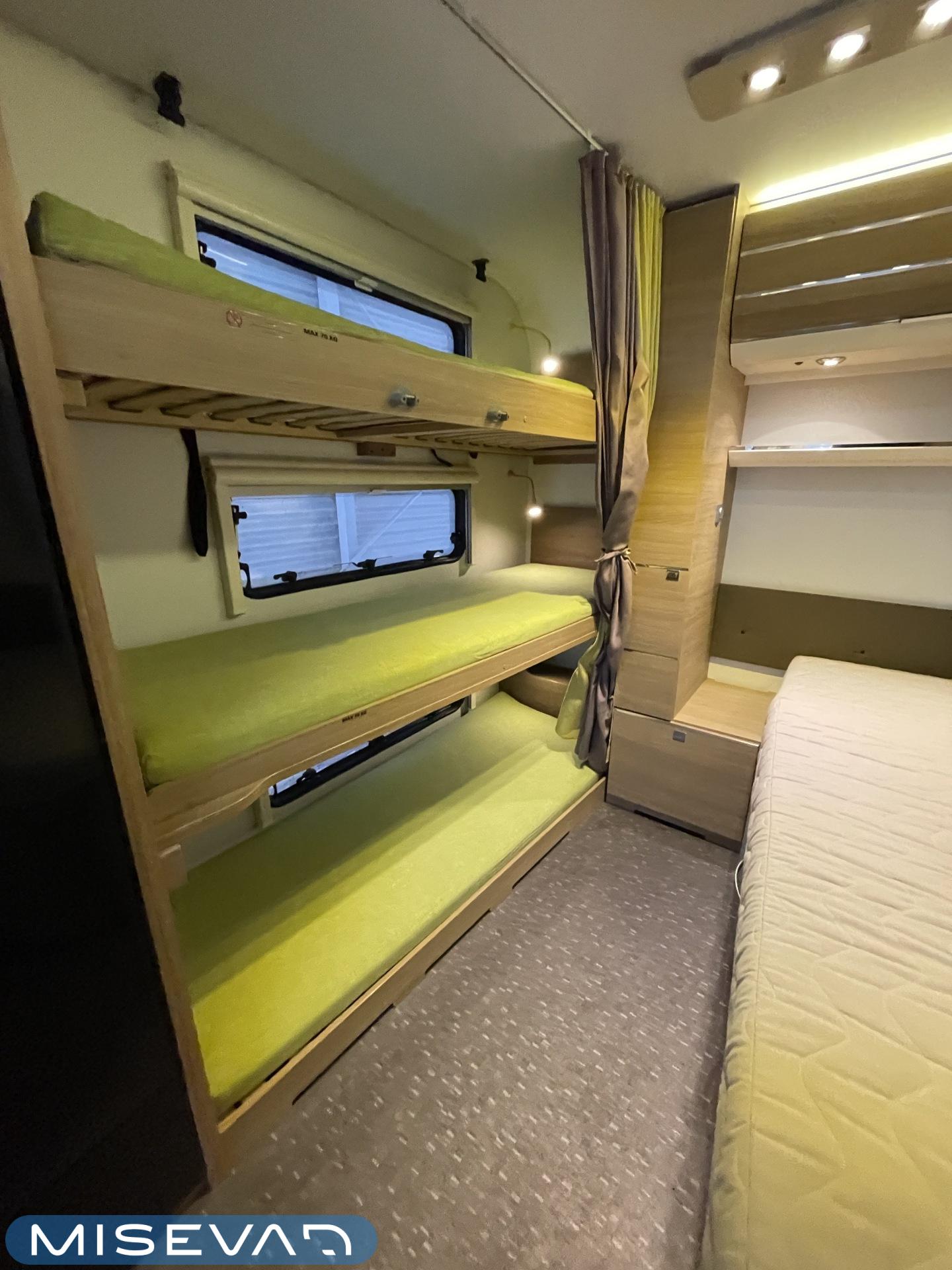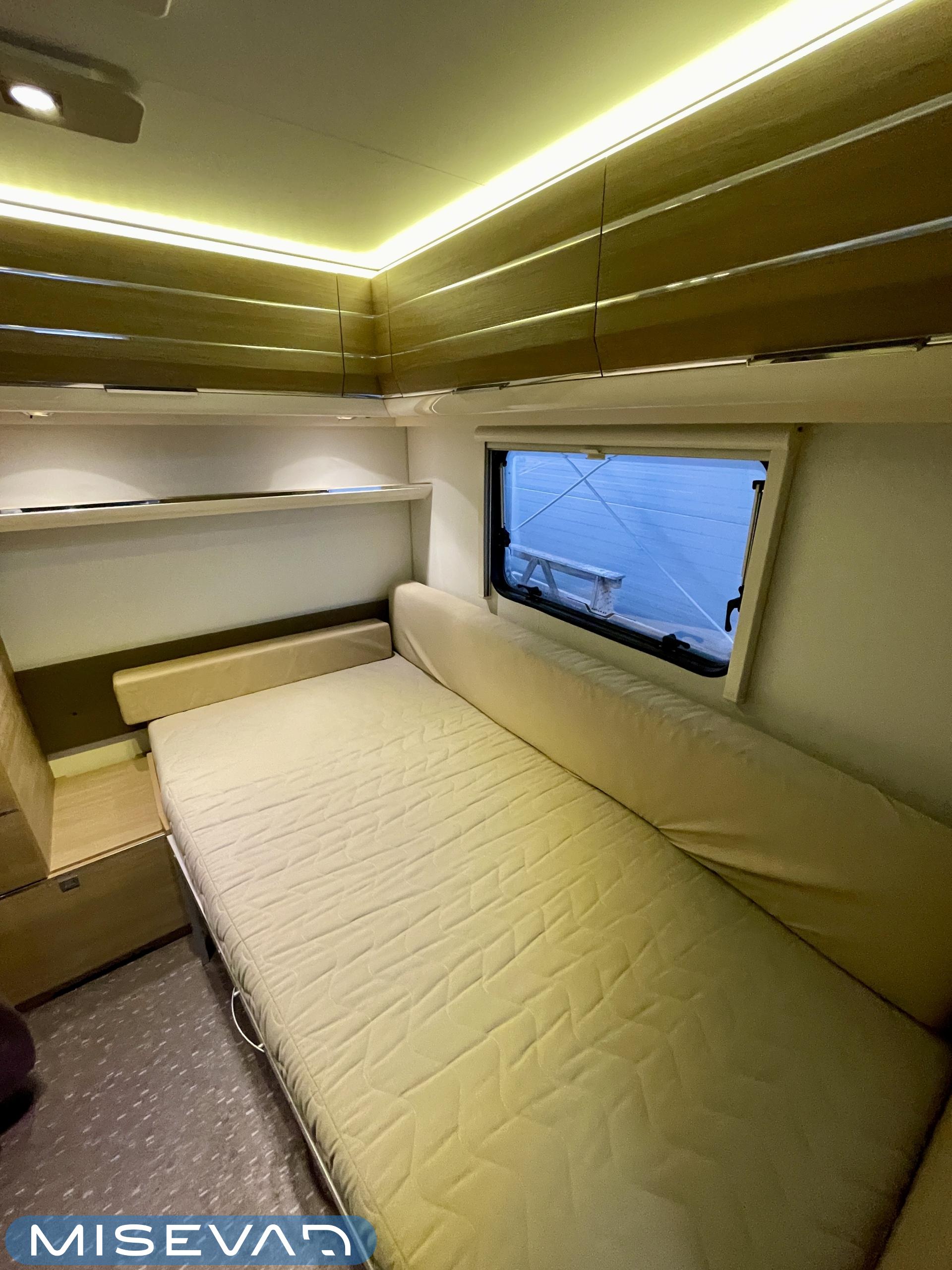 Bluetooth, Alde, Jääkaappi, Kasetti WC, Kasettiverhot, Kattoluukku, Kerrossänky, Liesi, Lattiamatot asunto-osassa, MP3, Markiisi, Parivuode, Tukijalat, Asuinosan hyttysovi/verho, jenkkijääkaappi, liesituuletin, Lattialämmitys (sähkö), Lämminvesiboileri, TV-antenni tai lautasantenni, Sähköpatruuna, Pakastelokero, televisioteline, Kesärenkaat