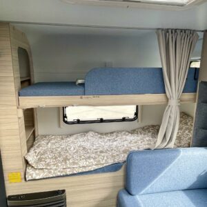 Wou mikä Adria! Tässäpä tyyllikäs tilaihme. Vaunun molemmissa päissä löytyy sängyt ja lisäksi pöytäryhmä muuntautuu lisäsängyksi. Nukkumatilaa on siis 5-6 henkilölle. Ruokailuryhmäkin on tämän kokoiseen vaunuun aidosti tilava. Sama porukkaa mahtuu syömään sen ympärille. Adria loistaa jälleen myös tyylikyydellä, niin koko vaunun osalta, kuin keittiössäkin. Kaappitilan tarve on otettu huomioon pienessä vaunussa mukavasti.Kaksi kattoikkunaa tekee vaunusta vielä mukavan valoisan. Eikä veturinkaan tarvitse olla isoimmasta päästä, 1300 kilon kokonaispaino tulee kivasti auton kuin auton perässä.