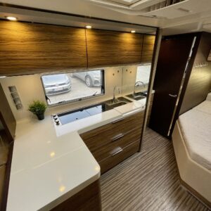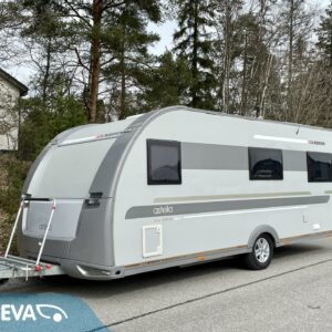Nyt on hienoa vaunua tarjolla hyvillä varusteilla! Olohuoneessa nahkainen melkein pyöreä pöytäryhmä jonka vieressä keittiö jossa valmistat gourmee ruokaa apunasi kaasu-uuni ja iso jääkaappi. Makoisat unet takaa hyvä parivuode etupäässä. Kesän helteet taltuttaa kattoilmastointi jossa myös läpinäkyvä kattoluukku integroituna.