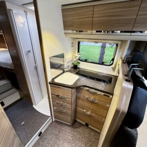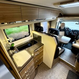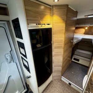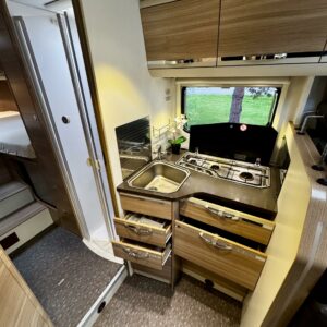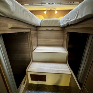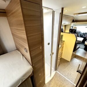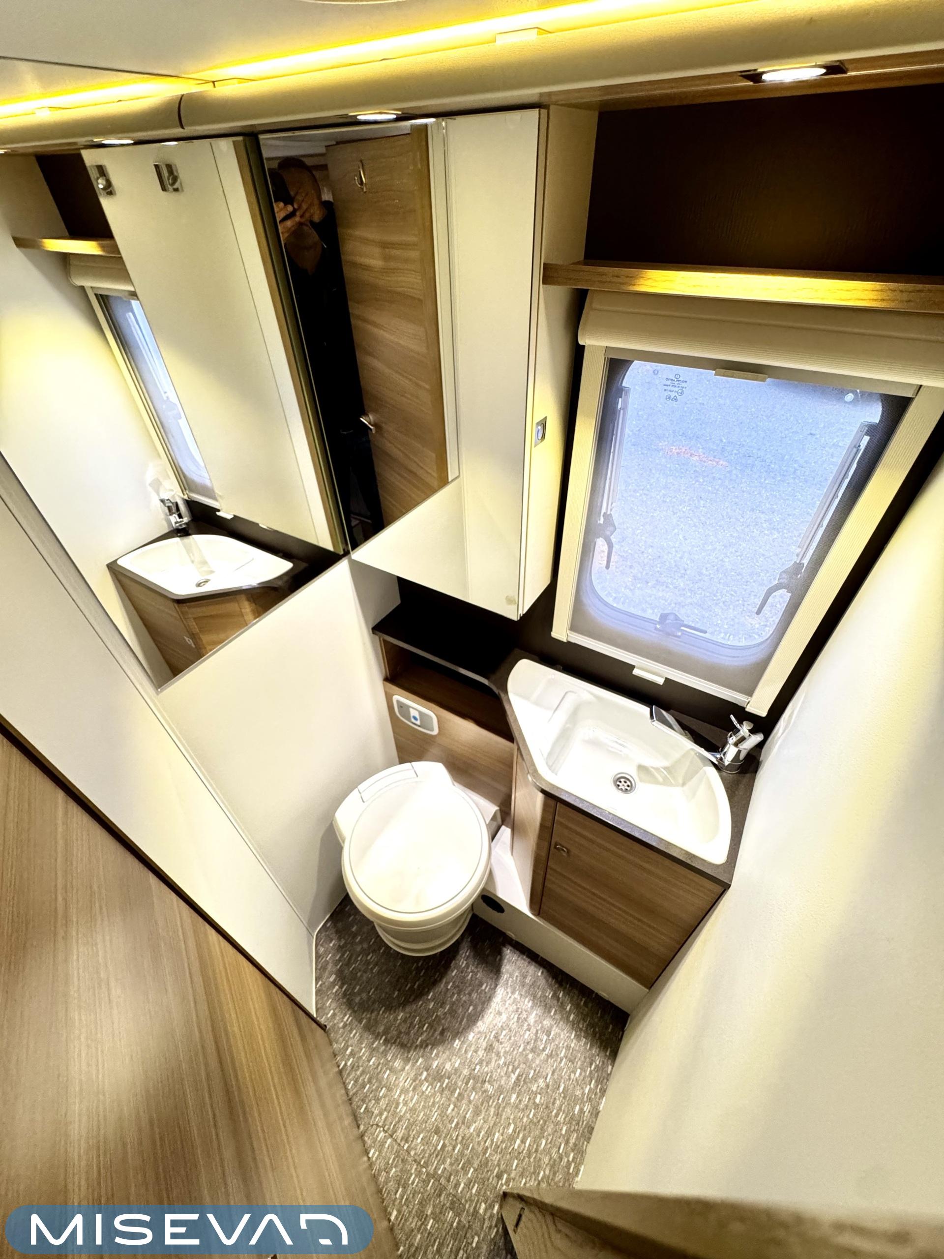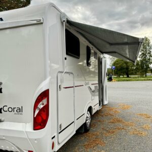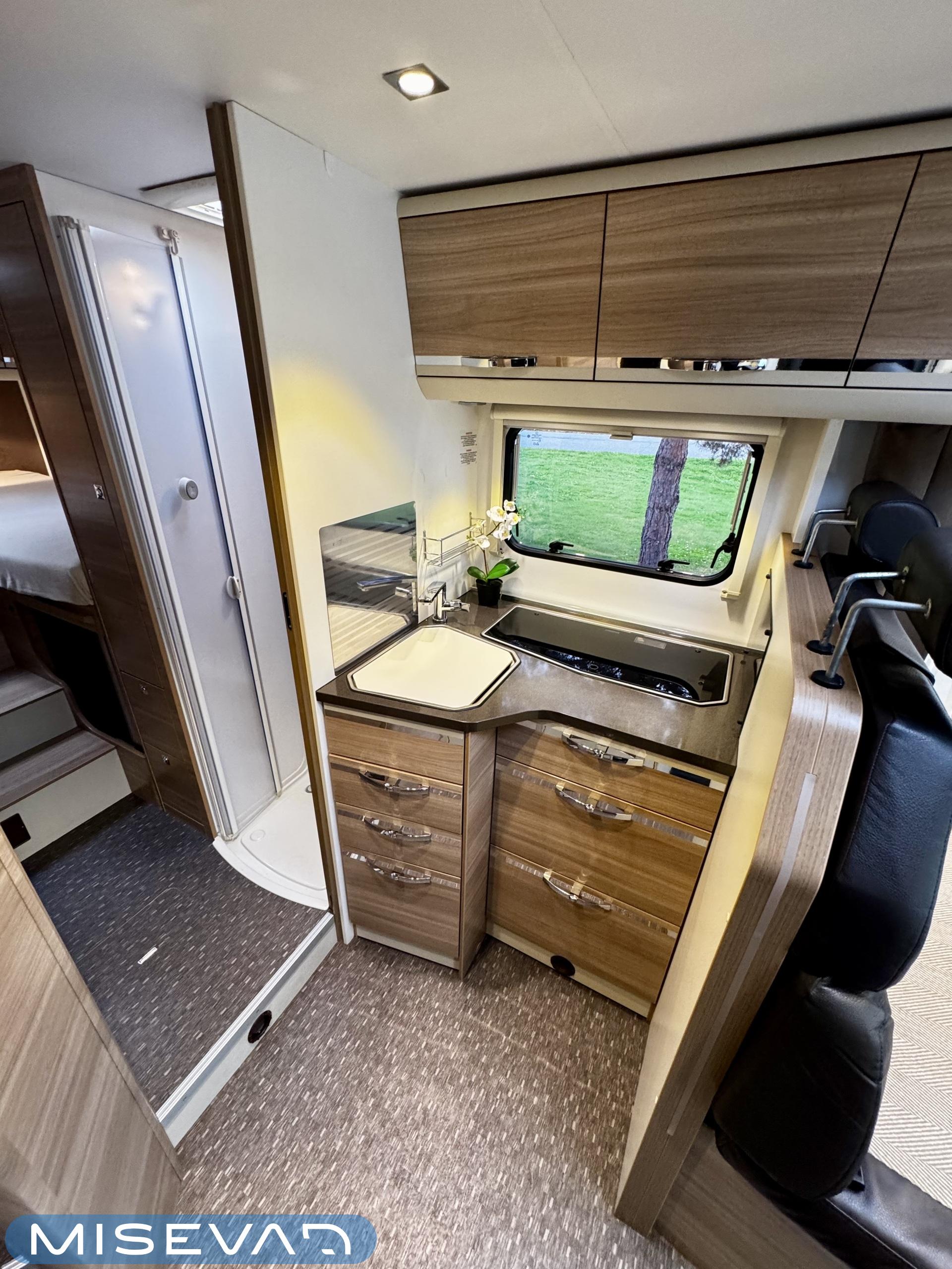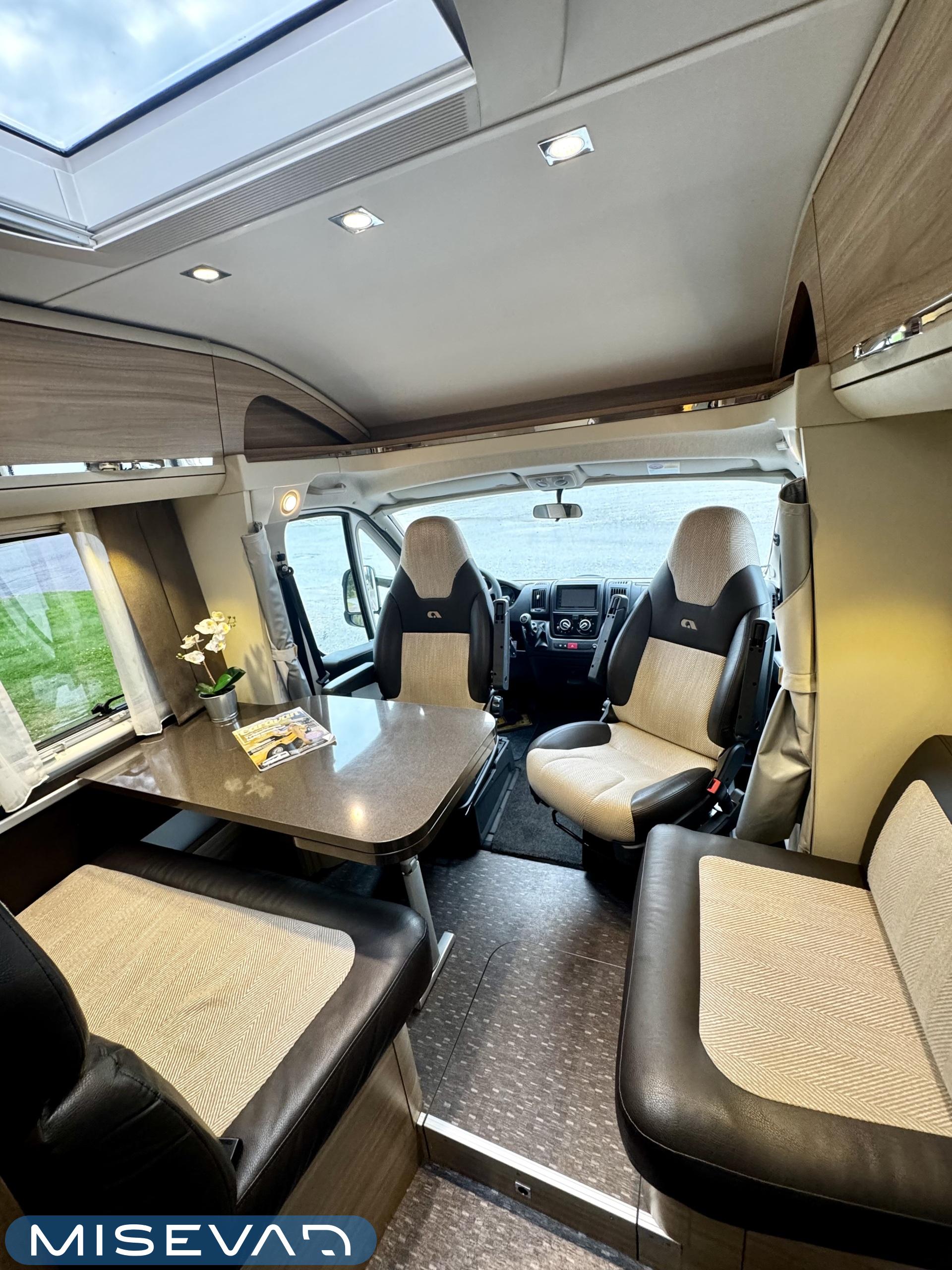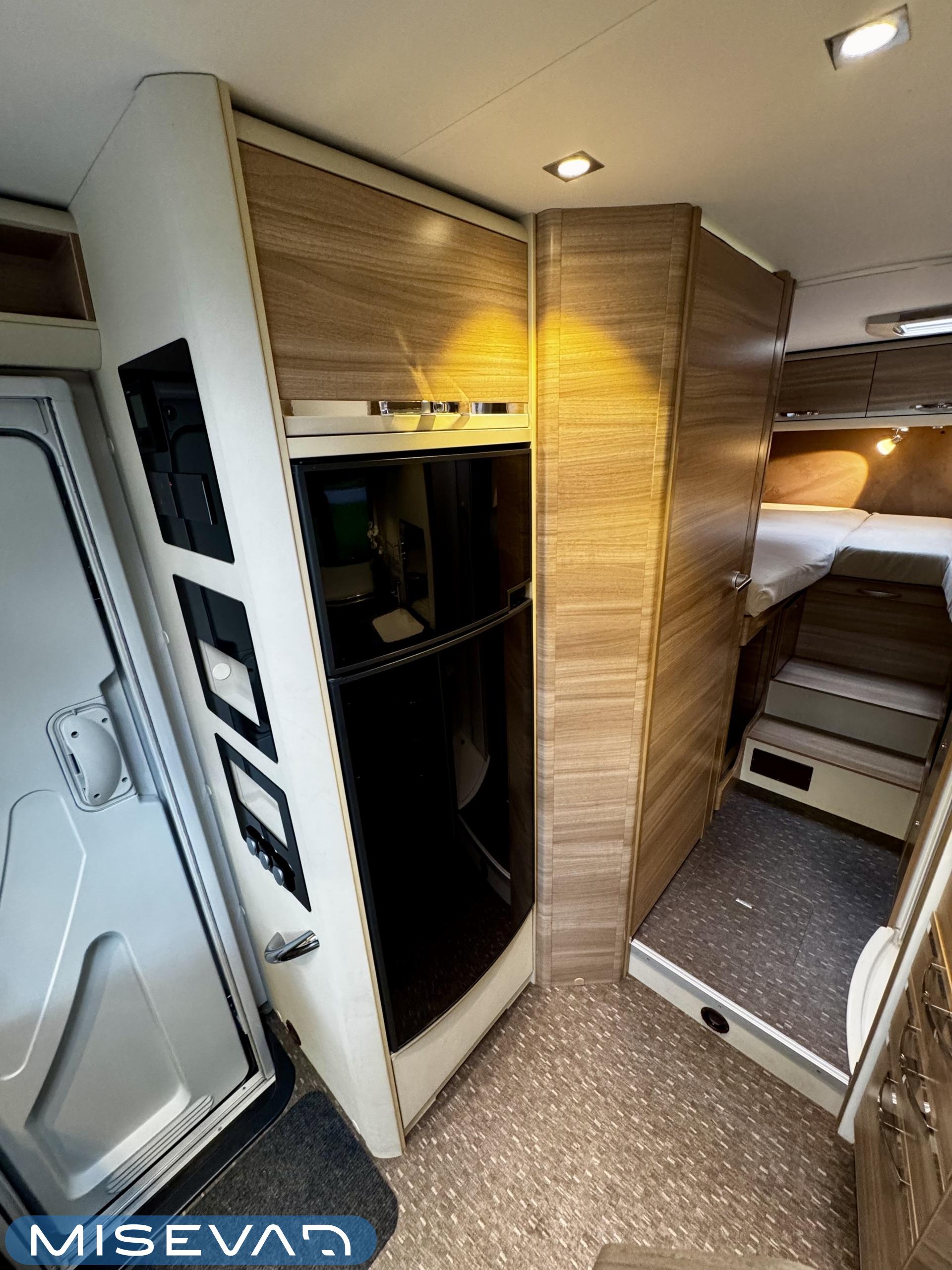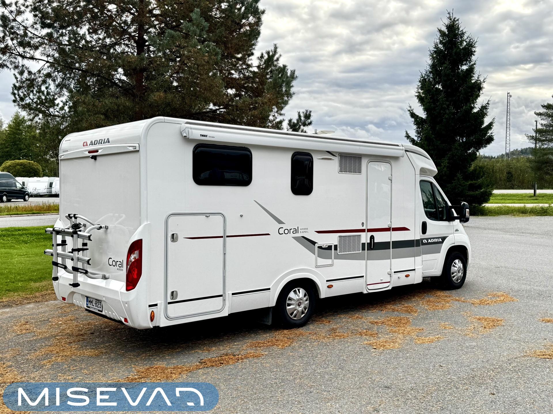 Silmä lepää Coralin sisustassa. Kaikki on niin harmoniassa keskenään. Auton takaa löytyy mukavat erillissängyt, jotka saa yhdistettyä isoksi kokonaisuudeksi. Helposti majoittaen vaikka kolmekin nukkujaa. Säilytystilaa on luotu myös sänkyjen alapuolelle, portaiden viereen. WC ja suihku ovat molemmat erikseen. WC:n ovella takaosan saa omaksi tilaksi helposti. Kaapistoja on pitkin autoa ja tilava takatalli pitää huolen, että mukana kulkee myös harrastuksiin liittyvät tamineet. Tai vaikkapa kokonainen terassikalusto. Keittiössä ei myöskään lopu tila kesken, kuusi ulos vedettävää laatikostoa kätkee sisäänsä kaikki tarvittavat kokkailuvälineet. Lisäksi varusteisiin kuuluu isojääkaappi, erillisellä pakastimella. Ruokapöytä on mitoitettu viidelle ja muuntautuu tarvittaessa sängyksi. Tule tutustumaan tähänkin ajoneuvoon Misevalle ja lähde reissuun Coralilla!