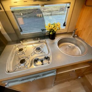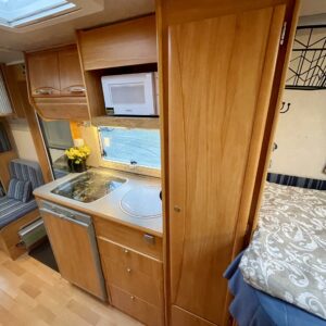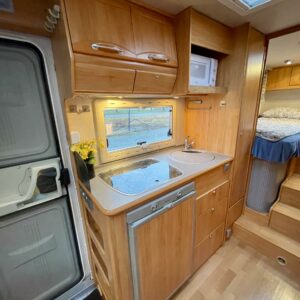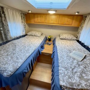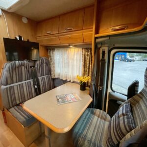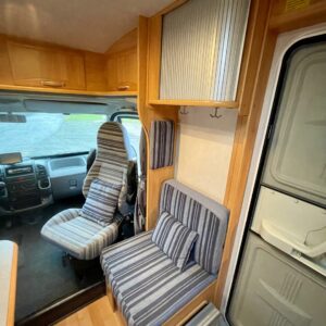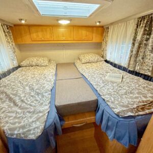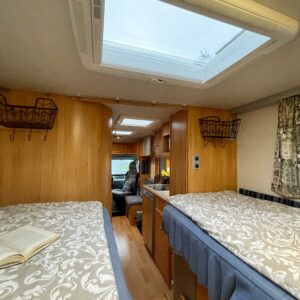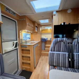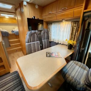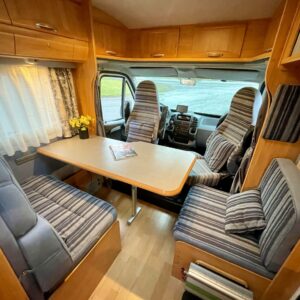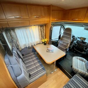 Edessä avara istuinryhmä sivusohvalla ja kääntyvillä etuistuimilla. Pöytäryhmästä mahdollista sijata lisävuode. Keskellä sijaitsee keittiö sekä wc- ja kylpyhuonetilat. Takana tilavat erillisvuoteet, jotka yhdistettävissä tarpeen mukaan. Takavuoteen alla suuri takatalli, jossa luukut molemmin puolin autoa.