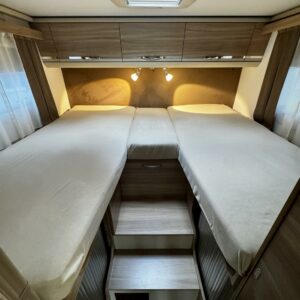 Silmä lepää Coralin sisustassa. Kaikki on niin harmoniassa keskenään. Auton takaa löytyy mukavat erillissängyt, jotka saa yhdistettyä isoksi kokonaisuudeksi. Helposti majoittaen vaikka kolmekin nukkujaa. Säilytystilaa on luotu myös sänkyjen alapuolelle, portaiden viereen. WC ja suihku ovat molemmat erikseen. WC:n ovella takaosan saa omaksi tilaksi helposti. Kaapistoja on pitkin autoa ja tilava takatalli pitää huolen, että mukana kulkee myös harrastuksiin liittyvät tamineet. Tai vaikkapa kokonainen terassikalusto. Keittiössä ei myöskään lopu tila kesken, kuusi ulos vedettävää laatikostoa kätkee sisäänsä kaikki tarvittavat kokkailuvälineet. Lisäksi varusteisiin kuuluu isojääkaappi, erillisellä pakastimella. Ruokapöytä on mitoitettu viidelle ja muuntautuu tarvittaessa sängyksi. Tule tutustumaan tähänkin ajoneuvoon Misevalle ja lähde reissuun Coralilla!