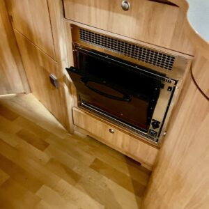 Klassikko-malli.Iso Truma sähköpatruunalla ja lattialämmöllä takaavat lämpimyyden kovillakin pakkasilla. Lisäksi voit hyödyntää ajon aikana lämmönvaihtimella moottorin lämmön.