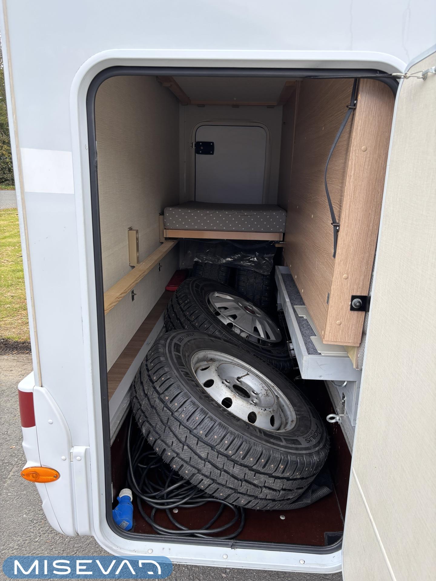 Truma, Sähköpatruuna, ABS-jarrut, Airbag, Erikoisvanteet, Eristetty harmaavesisäiliö, Jääkaappi, Kaasu-uuni, Kasetti WC, Kasettiverhot, Kattoluukku, Lattialämmitys, Liesi, Lohkolämmitin, Lämminvesiboileri, Markiisi, Ohjaustehostin, Pakastelokero, Parivuode, Pesuallas, Pysäköintikamera, Pyöräteline, Radio, Suihku, Sähkökäyttöiset ikkunat, Sähköpeilit, Sähkörappu, TV-antenni tai lautasantenni, Turbo, Vakionopeudensäädin, Lattialämmitys (sähkö), Ilmastointi (ohjaamo), Ilmastointi (asuintila), Polkupyöräteline, jenkkijääkaappi, liesituuletin, kaasun ulosotto, Asuinosan hyttysovi/verho, Sumuvalot, Aurinkopaneeli, Ilmaiskarit