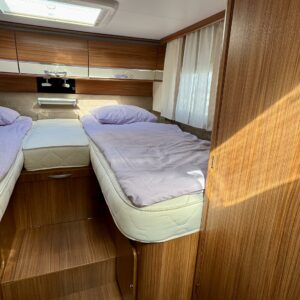 Takaosan kruunaa mukavat erillisvuoteet, jotka on mahdollista yhdistää varustukseen kuuluvalla lisäpatjalla. Vuoteiden alla on iso läpilastattava takatalli.