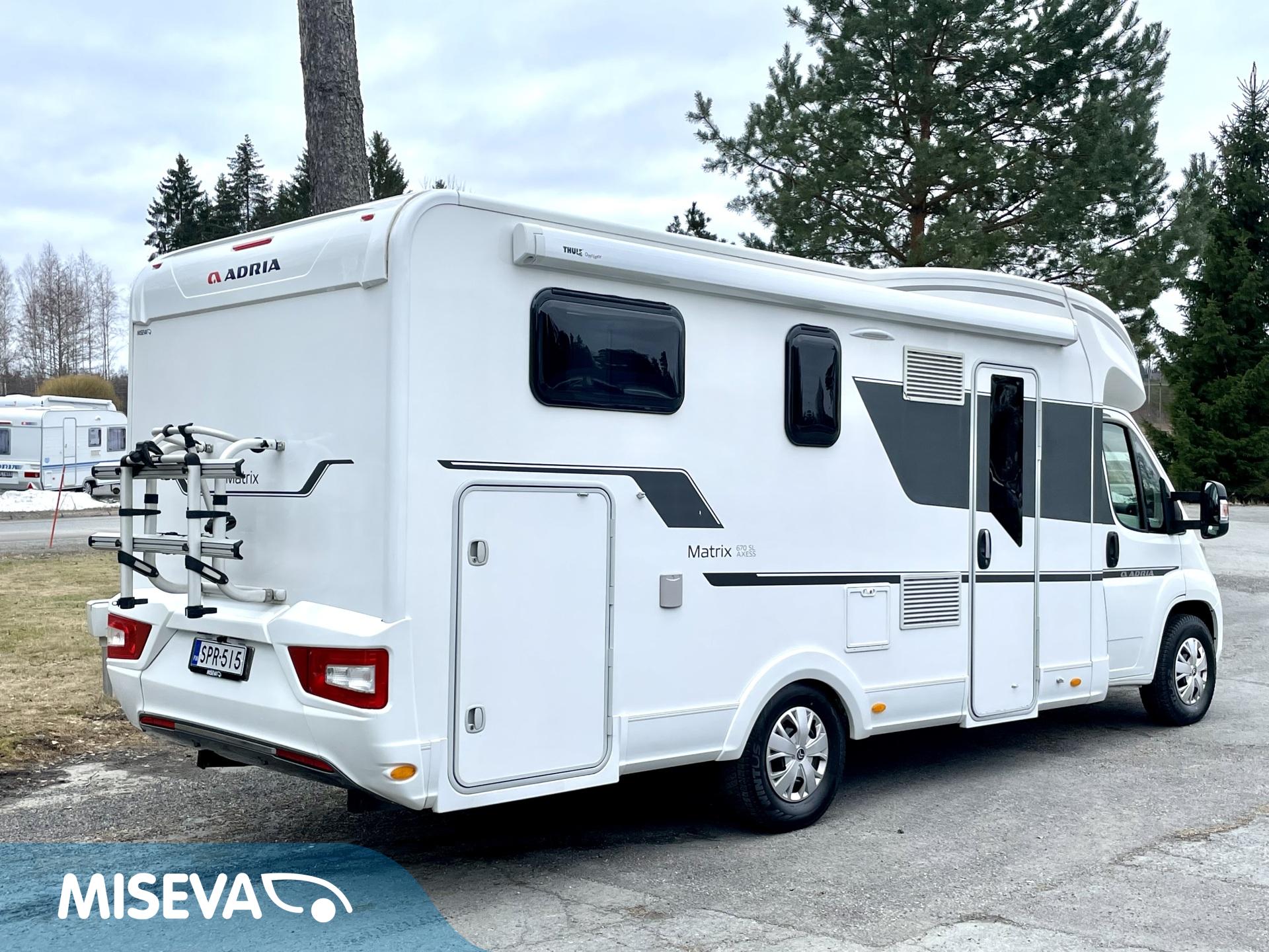 Varusteista ulkopuolella on myös huolehdittu ; markiisi, pyöräteline, lohkolämmitin ja tehokas lisävalo ovat valmiiksi asennettuina. Lisäksi autossa on valtaisa takatalli esim. grilliä ja pöytäryhmää varten.