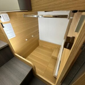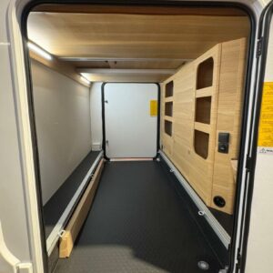 Perältä löytyy erilliset suihku- ja WC- tilat ja muhkeat erillisvuoteet. Vuoteiden alta löytyy iso läpilastattava takatalli.