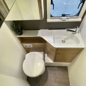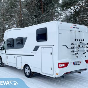 Auton keskivaiheilla sijaitsee erilliset WC/ suihkutilat sekä keittiö isolla jääkaappi- pakastimella varustettuna. Materiaalit ja värivalinnat taattua Adria laatua, tästä vähän ajettu pirteällä moottorilla oleva Adria josta on iloa ja matkustusmukavuutta vuosiksi!