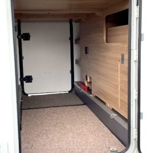 Auton takaosassa on pitkittäiset erillisvuoteet ja suuri takatalli molemminpuolisin luukuin.