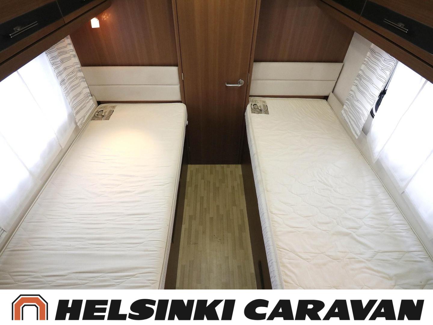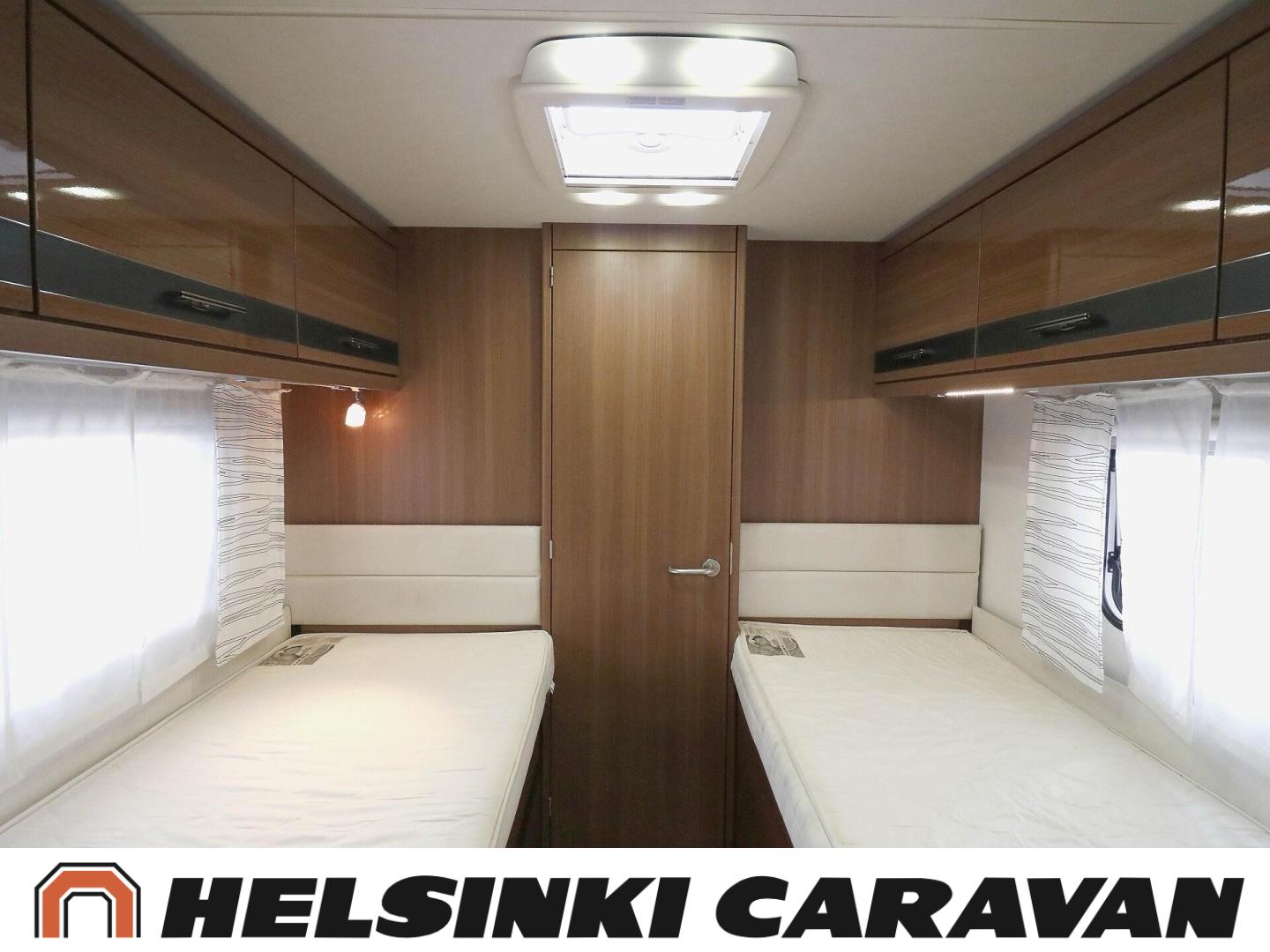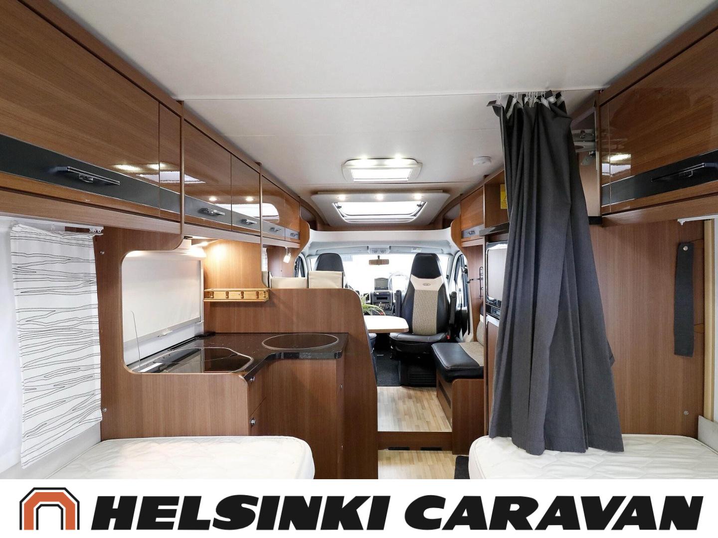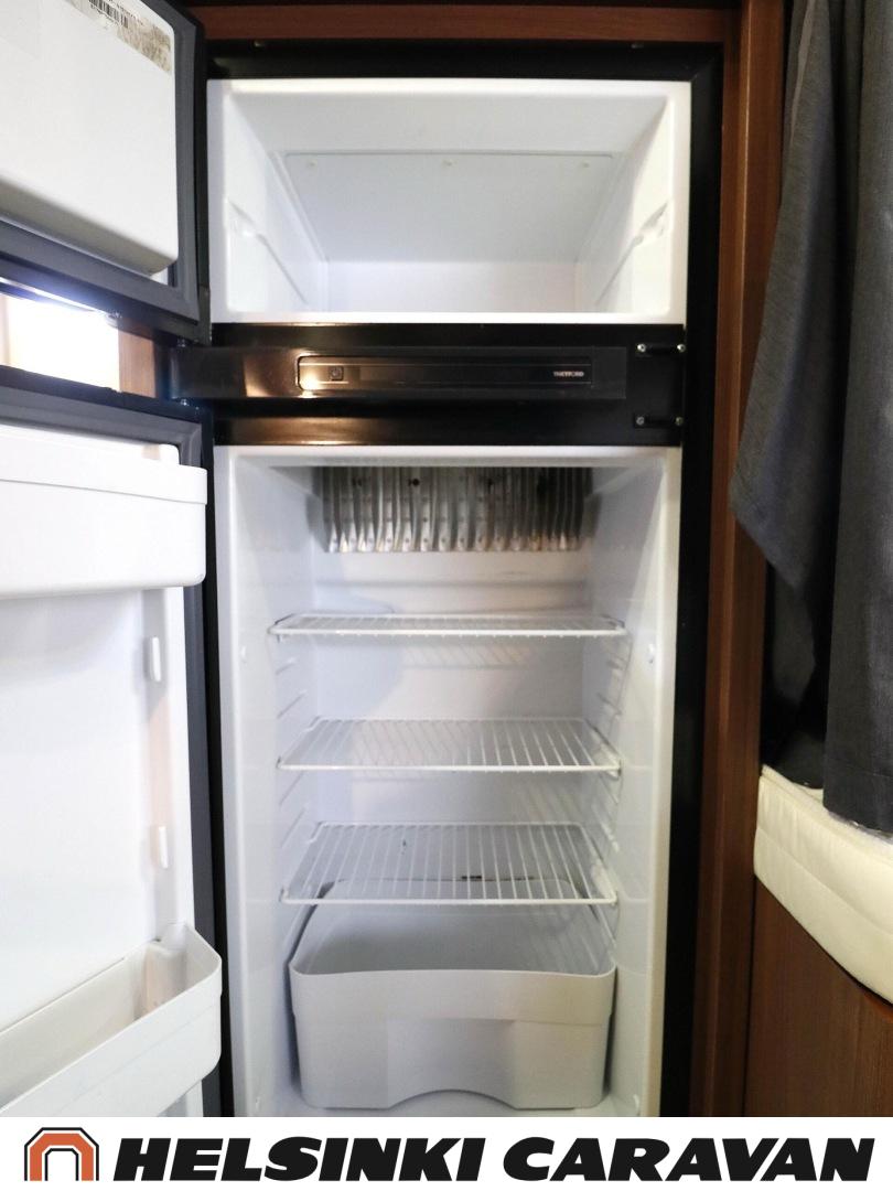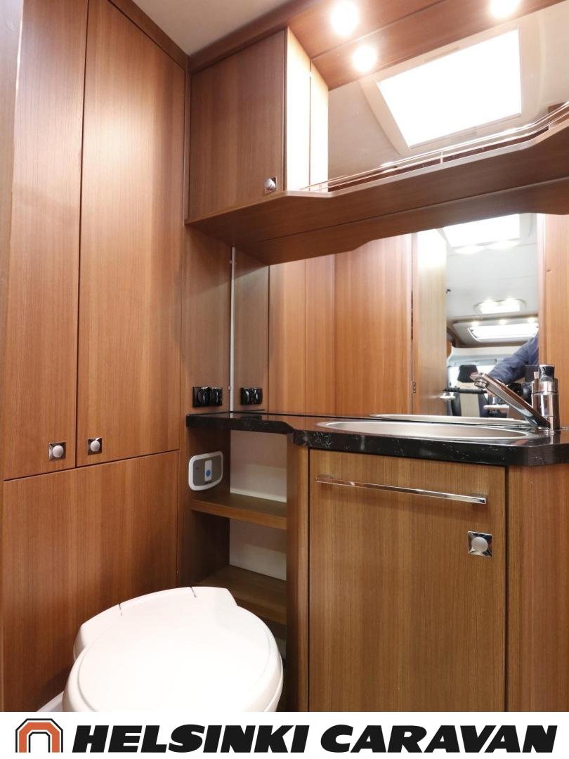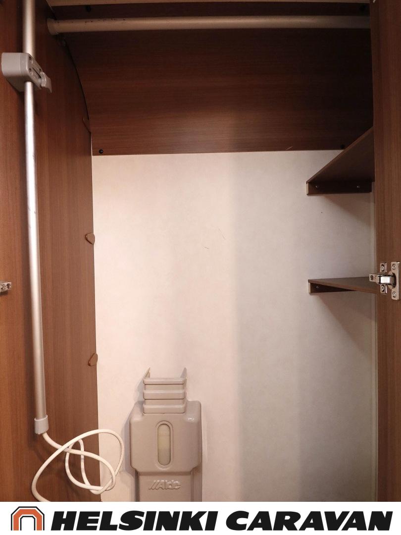 Truma, ABS-jarrut, Airbag, Jääkaappi, Kasetti WC, Kasettiverhot, Kattoluukku, Liesi, Lämminvesiboileri, Markiisi, Ohjaustehostin, Pakastelokero, Pesuallas, Pysäköintikamera, Pyöräteline, Radio, Suihku, Sähkökäyttöiset ikkunat, Sähköpeilit, Sähkörappu, Turbo, Vakionopeudensäädin, Ilmastointi (ohjaamo), laskuvuode, jenkkijääkaappi, televisioteline, Asuinosan hyttysovi/verho, Sähköpatruuna