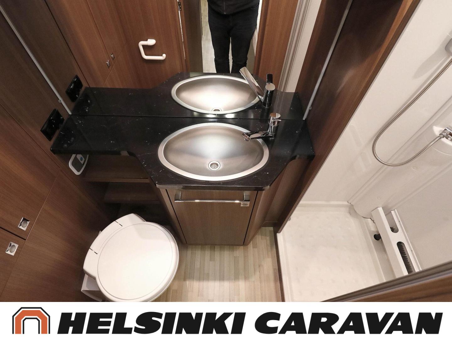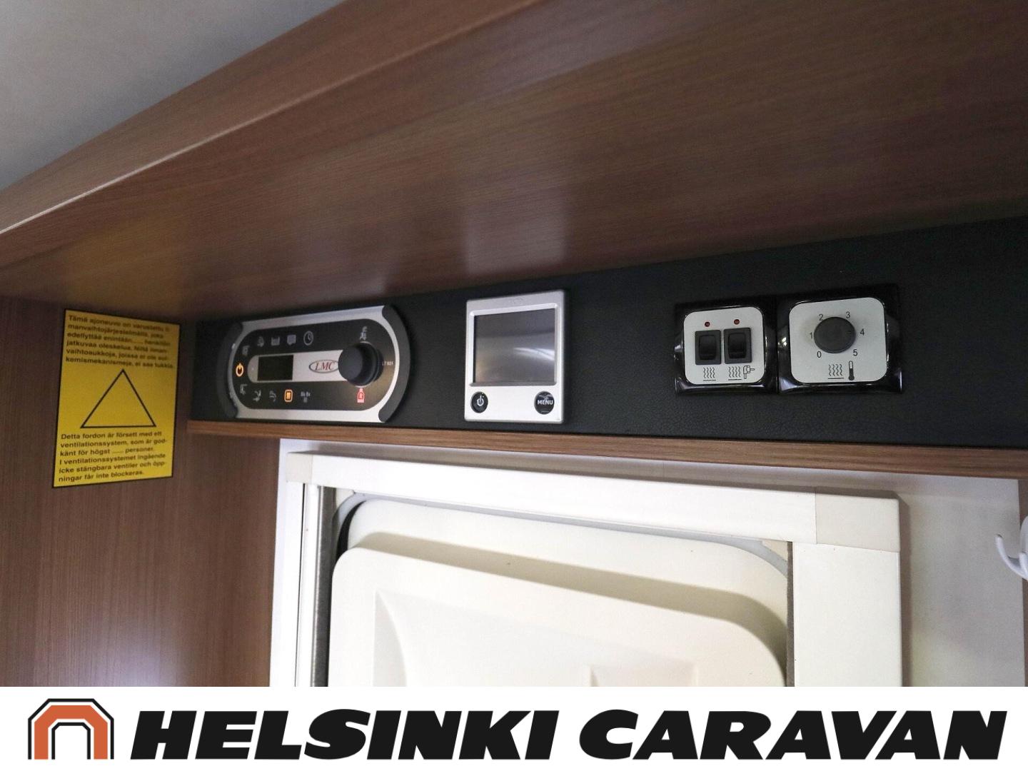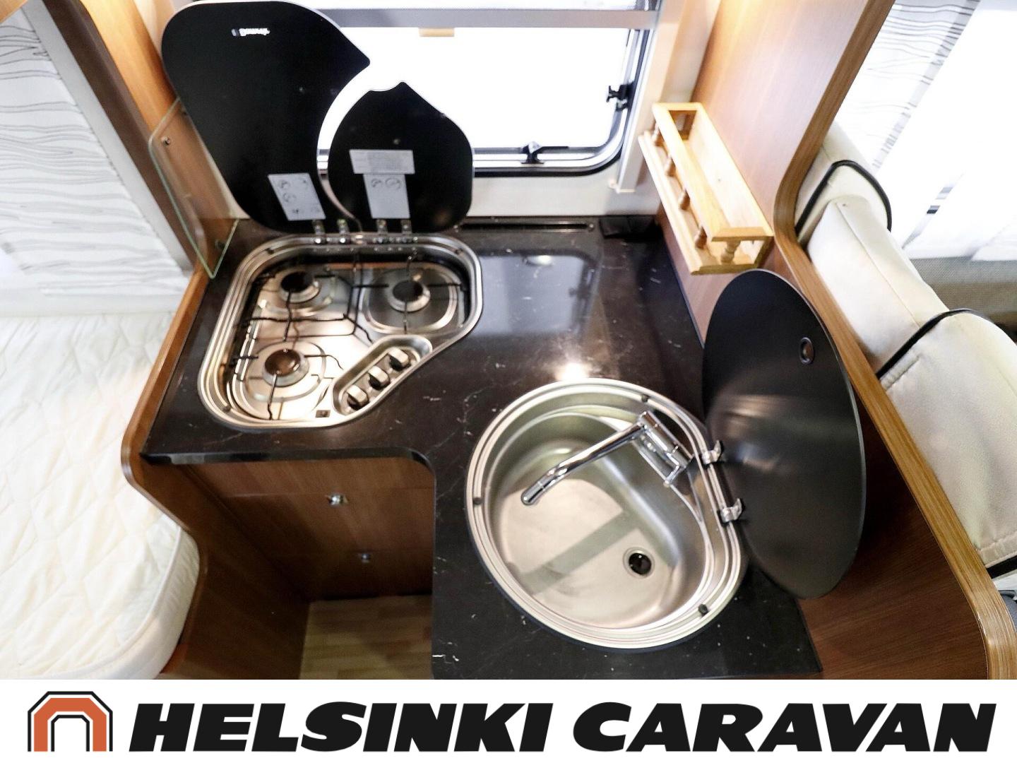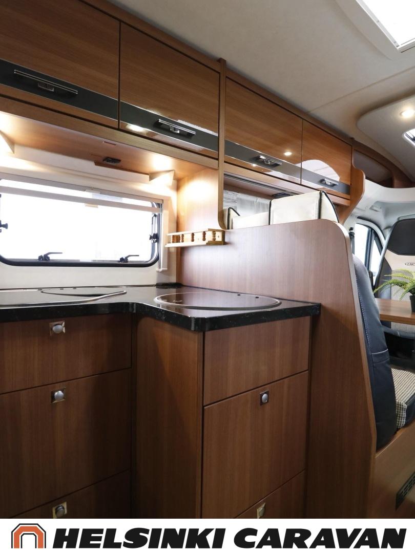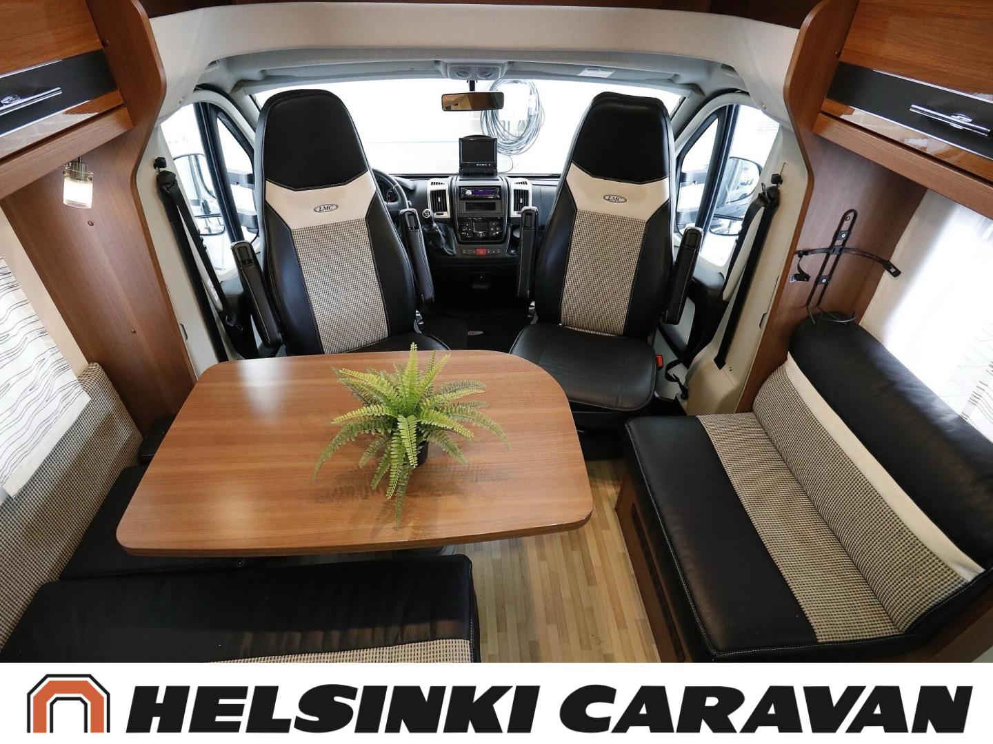Truma, ABS-jarrut, Airbag, Jääkaappi, Kasetti WC, Kasettiverhot, Kattoluukku, Liesi, Lämminvesiboileri, Markiisi, Ohjaustehostin, Pakastelokero, Pesuallas, Pysäköintikamera, Pyöräteline, Radio, Suihku, Sähkökäyttöiset ikkunat, Sähköpeilit, Sähkörappu, Turbo, Vakionopeudensäädin, Ilmastointi (ohjaamo), laskuvuode, jenkkijääkaappi, televisioteline, Asuinosan hyttysovi/verho, Sähköpatruuna