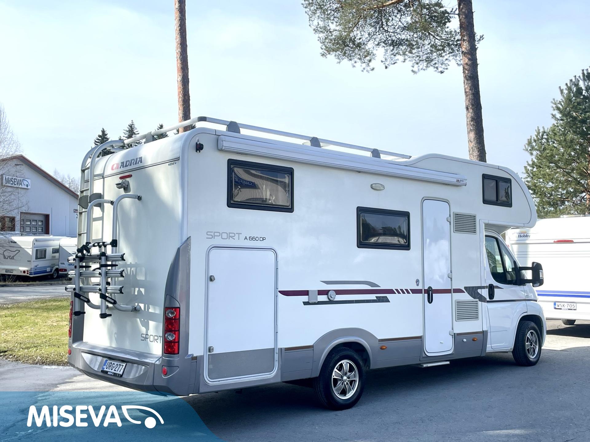 C-kortillinen tilava ja siististi pidetty Adria, missä valmiit vuoteet neljälle.