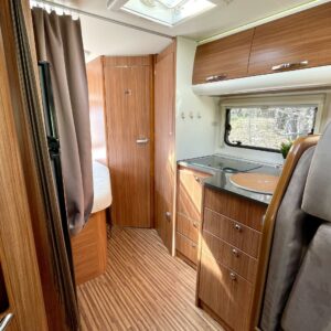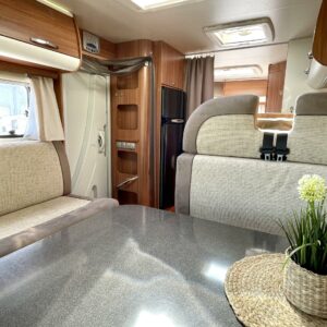 Suosittu pohjaratkaisu! Hyvillä metreillä oleva Adria jossa takana mukava parivuode ja vieressä tilava pesuhuone, auton keskeltä löytyy keittiö isolla jääkaapilla ja edestä muodostuu viihtyisä oleskelutila kun käännät ohjaamon penkit. Vuoteen alle mahtuu mukavasti harrastevälineitä.