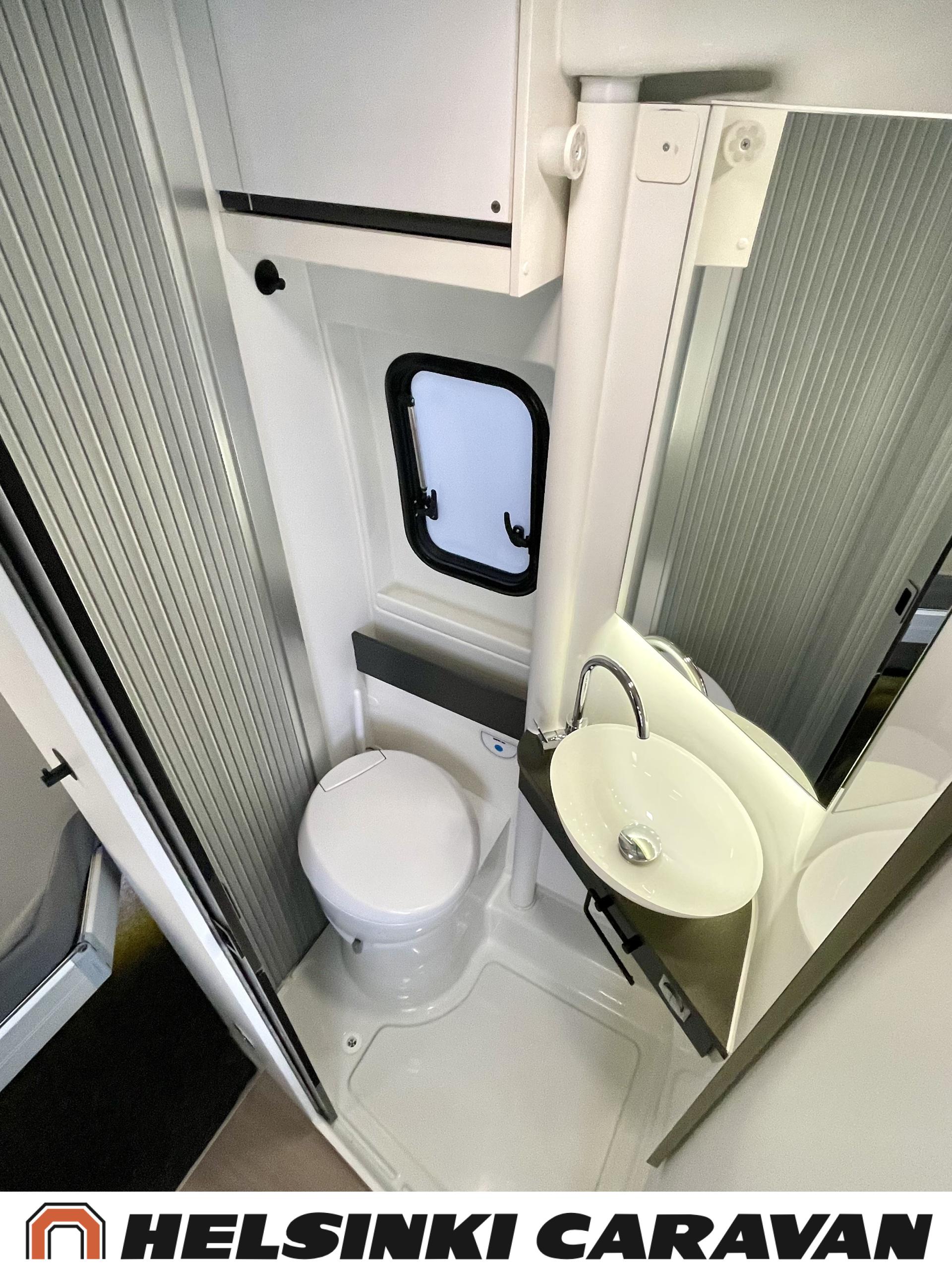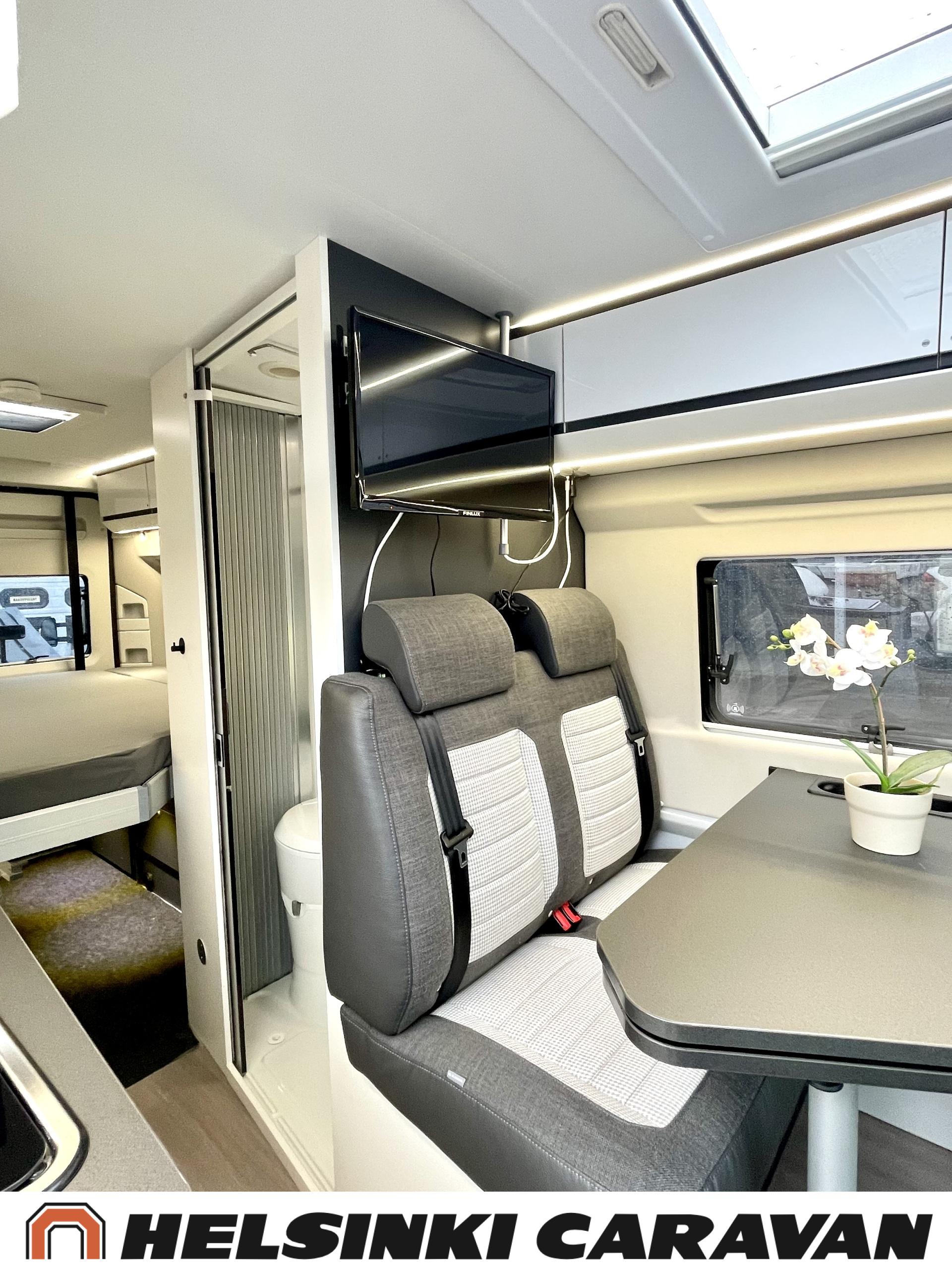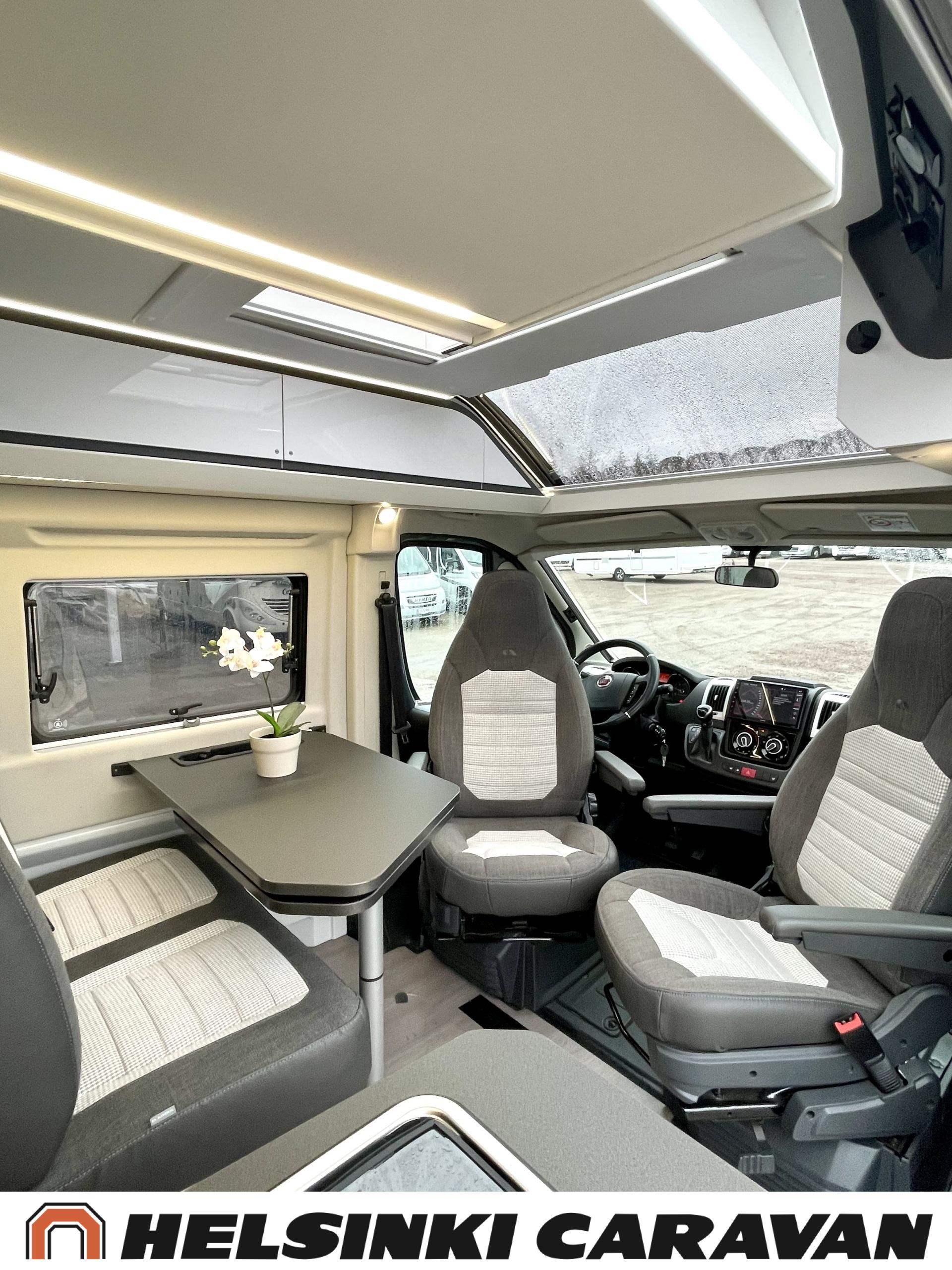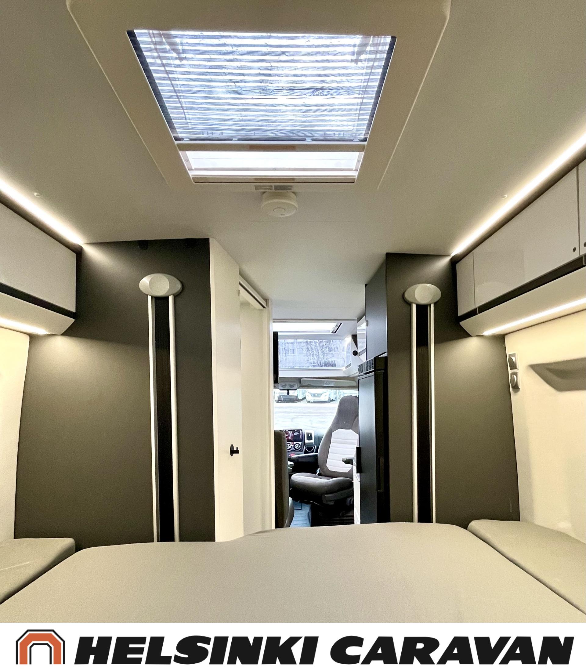 Nyt tarjolla retkeilyautojen Supreme-luokan aatelia harvinaisella nostovuodepohjaratkaisulla. Autosta löytyvät kaikki huippuluokan mukavuudet multimediajärjestelmästä vetokoukkuun, väkevä 160-hevosvoimainen moottori ja moderni 9-vaihteinen automaattivaihteisto. Loft-tyyppiset, tyylikkäät ja avarat sisätilat epäsuoralla LED-valaistuksella ja panoraama-kattoikkunalla tekevät autosta kokoistaan suuremman. Auton perässä on nerokas sähkövoimalla ylös nostettava parivuode, jonka ansiosta tavaratilassa kulkee seikkailuihin mukaan mitä vain krossipyörästä tai kumiveneeseen. Keittiön varustukseen kuuluu kaasulieden lisäksi tehokas kompressorijääkaappi. Kylpyhuoneesta löytyy muun varustelun ohella kätevä käännettävä sermi, jonka ansiosta retkeilyautoon on saatu mahtumaan täysikokoinen suihku.