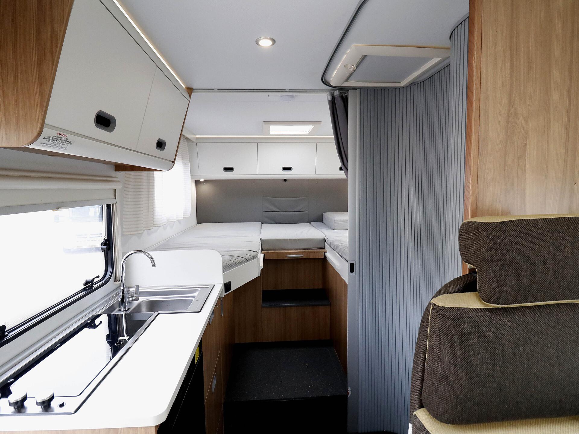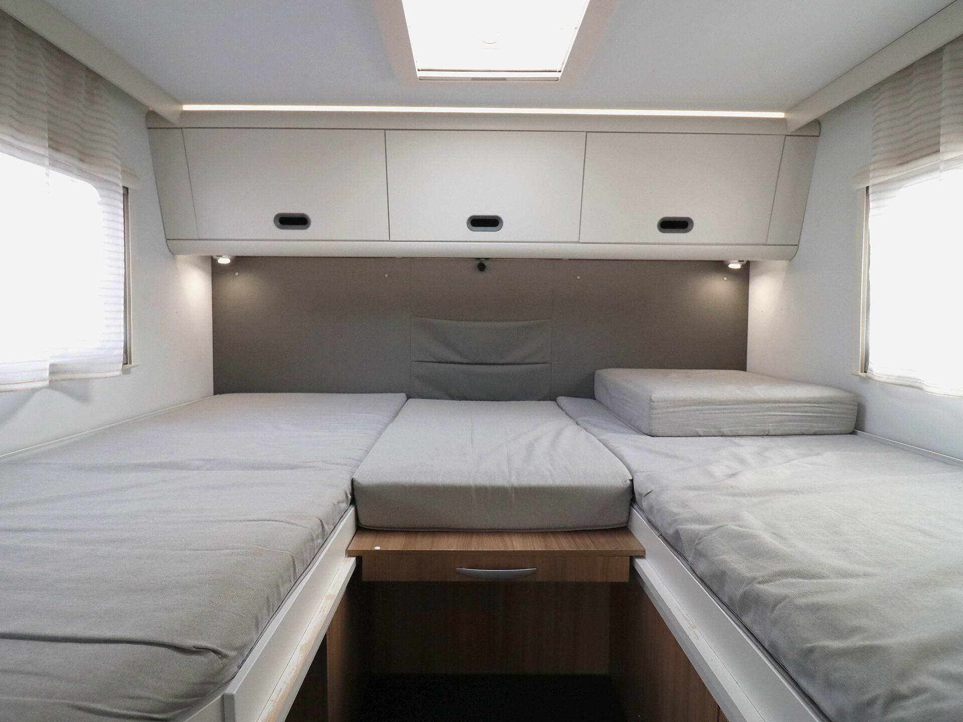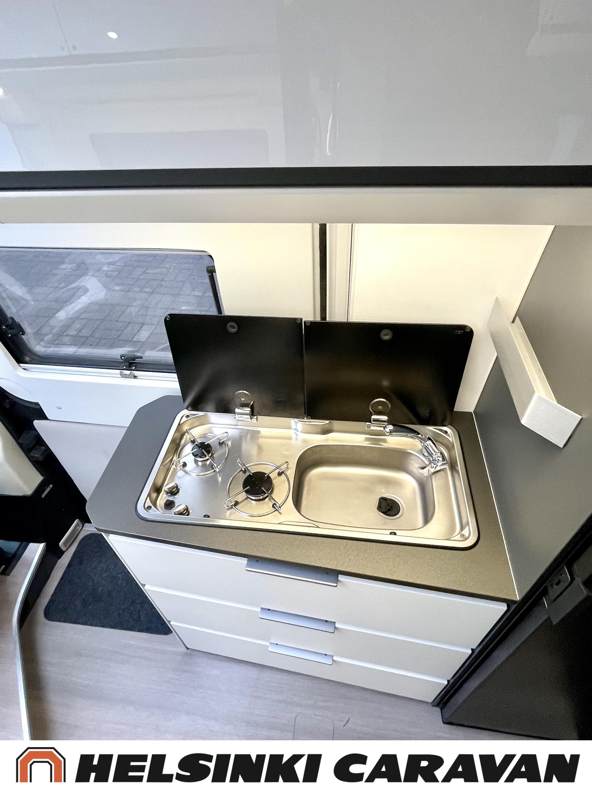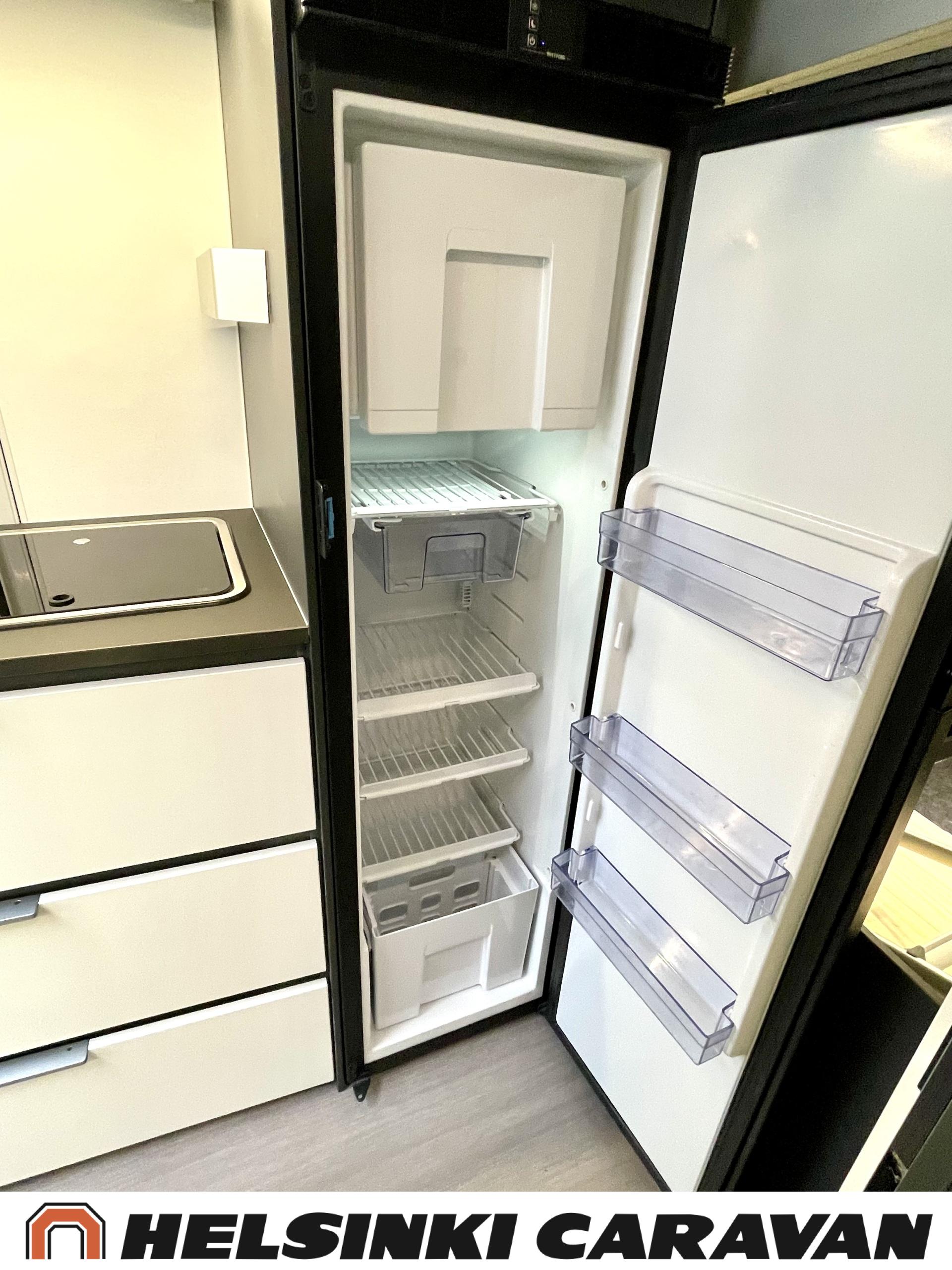 Nyt tarjolla retkeilyautojen Supreme-luokan aatelia harvinaisella nostovuodepohjaratkaisulla. Autosta löytyvät kaikki huippuluokan mukavuudet multimediajärjestelmästä vetokoukkuun, väkevä 160-hevosvoimainen moottori ja moderni 9-vaihteinen automaattivaihteisto. Loft-tyyppiset, tyylikkäät ja avarat sisätilat epäsuoralla LED-valaistuksella ja panoraama-kattoikkunalla tekevät autosta kokoistaan suuremman. Auton perässä on nerokas sähkövoimalla ylös nostettava parivuode, jonka ansiosta tavaratilassa kulkee seikkailuihin mukaan mitä vain krossipyörästä tai kumiveneeseen. Keittiön varustukseen kuuluu kaasulieden lisäksi tehokas kompressorijääkaappi. Kylpyhuoneesta löytyy muun varustelun ohella kätevä käännettävä sermi, jonka ansiosta retkeilyautoon on saatu mahtumaan täysikokoinen suihku.