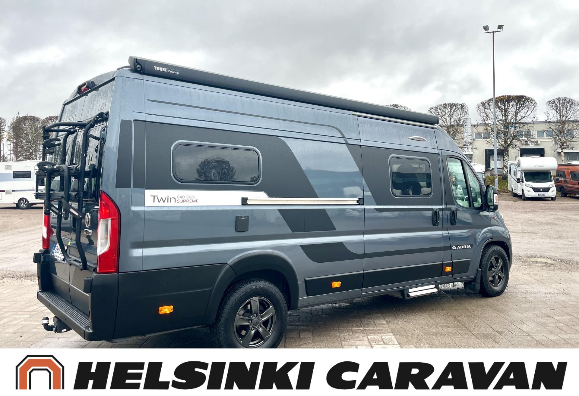 Markiisi, Pyöräteline, Zenec-multimedia, Pysäköintikamera, lisäilmajouset, ABS-jarrut, Ajonvakautusjärjestelmä, Ajotietokone, Iso jääkaappi, Aurinkopaneeli, Tupla-akut, Kahdet renkaat, Webasto Airtop -dieselkäyttöinen lämmitin, nestekaasukäyttöinen lämminvesivaraaja, Kaasuliesi, Sähkötoiminen nostovuode, Suihku, Kasetti WC, Eristetty harmaavesisäiliö, Vetokoukku, Vakionopeudensäädin, Turbo, Keskuslukitus: Kaukosäätöinen, Erikoisvanteet, Sähkökäyttöiset ikkunat