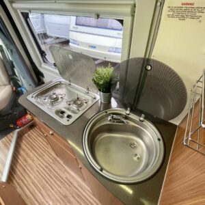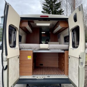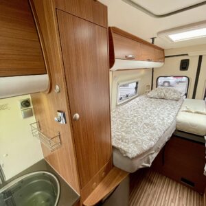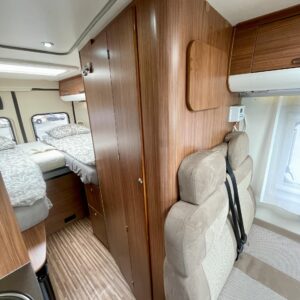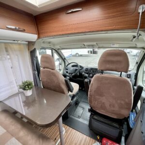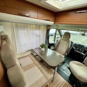 Auton etuosasta löytyy valoisa ja viihtyisä pöytäryhmä neljällle. Kääntyvien etuistuinten ansiosta myös ohjaamo saadaan osaksi ”olohuonetta” auton ollessa parkissa. Auton takapäätä hallitsee mukavat erillisvuoteet. Sängyn alta löytyy tilava takatalli.
