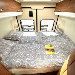 Auton sisältä löytyy kuuteen metriin pakattuna viihtyisä ja valoisa pöytäryhmä neljälle, keittiösaareke, WC/ pesuhuone ja parivuode. Vuoteen alla on tavaratila johon pääsee käsiksi niin auton sisä- kuin ulkopuoleltakin.