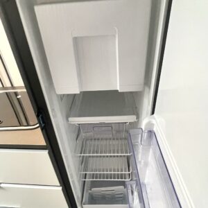 Keittiön varustuksen kruunaa iso jääkaappi- pakastin.
