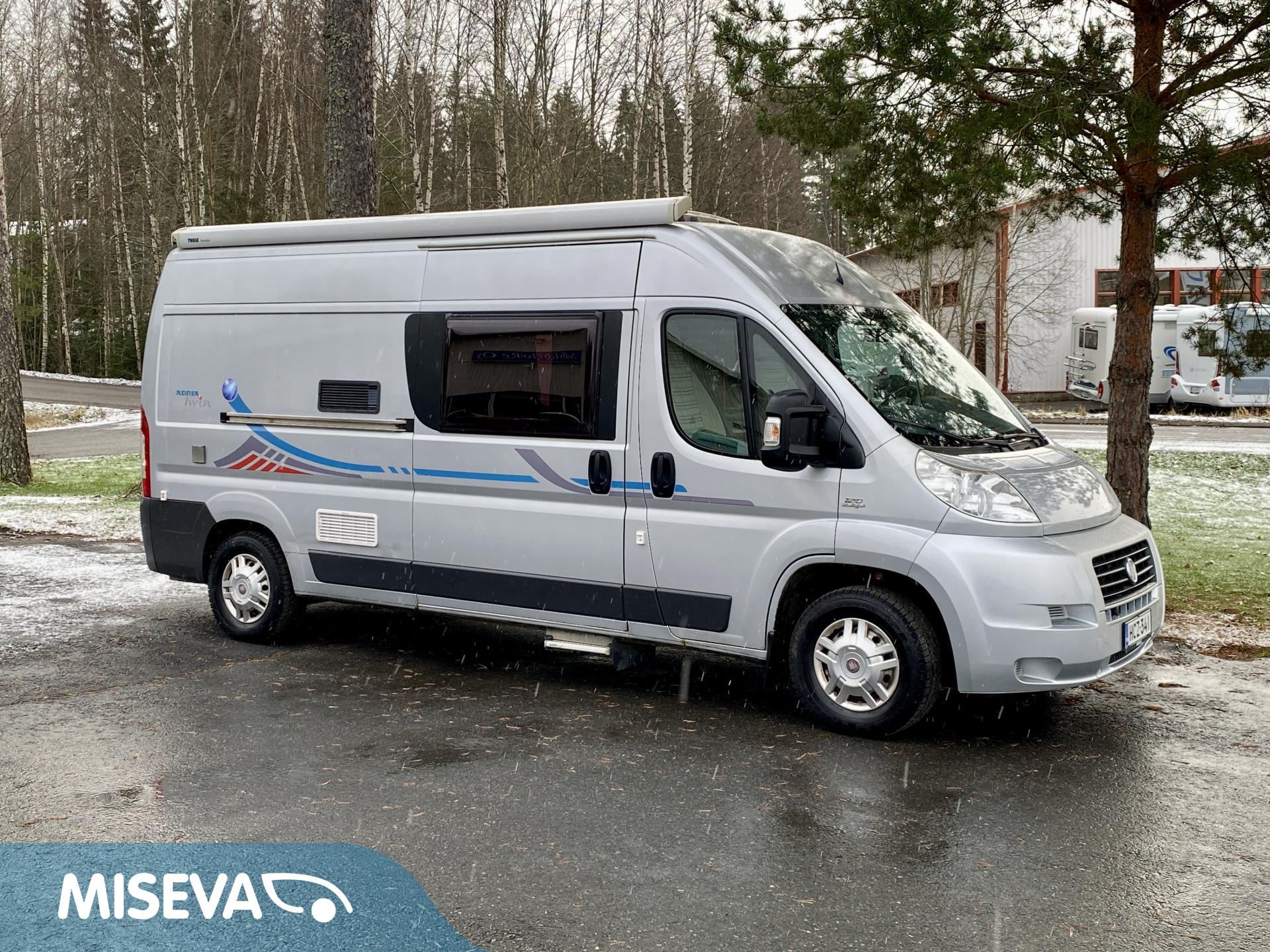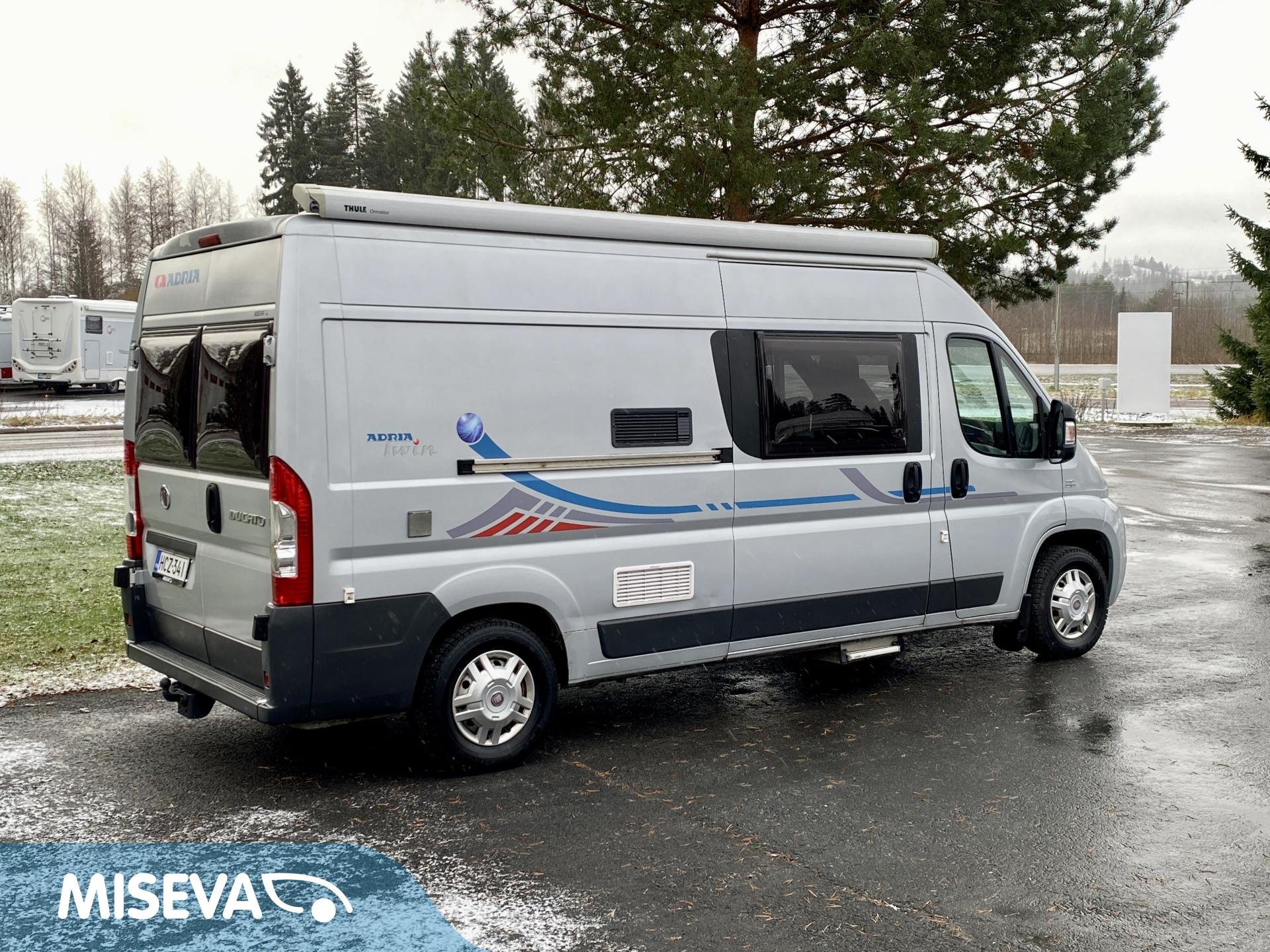 Suosittu Adrian 6-metrien retkiauto. Takana on poikittainen parivuode. Vuoteen alle jää säilytystiloja minne pääsee, sekä ulko että sisäpuolelta. Keskelle on asemoitu WC/kylpyhuonetilat, sekä keittiö. Keittiössä on matkailuautolle tyypilliset varustelut, eli jääkaappi, liesi sekä tiskiallas. Edestä löytyy pöytäryhmä kääntyvillä kapeteenin jakkaroilla. Ohjaamossa on peilit ja sivuikkunat sähkötoimisia ja löytyyhän toki ohjaamoilmastointi ja vakionopeuden säädinkin varustelistalta. Sisätilat lämmitellään mukavaan asumislämpötilaan Trumaticin ilmakeskuslämmityksen avulla. Pihan puolelle asuinneliöt laajenevat avaamalla kotelomarkiisi. Vetokoukkukin on valmiiksi asennettuna sille on annettu vetomassoiksi 2500kg jarrulliselle kärrille ja 750kg jarruttomalle kärrille. Juuri katsastettu (11/24).