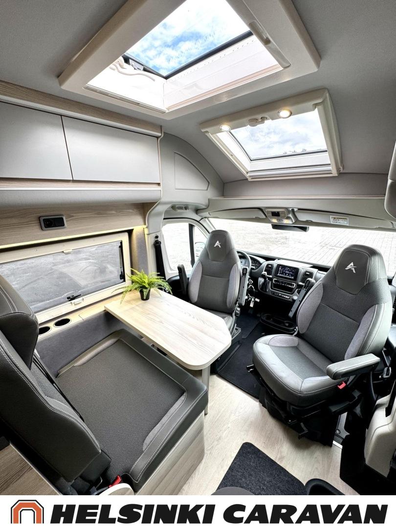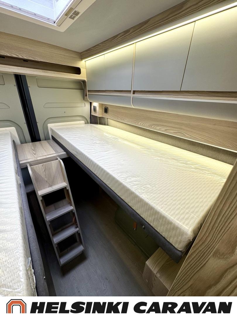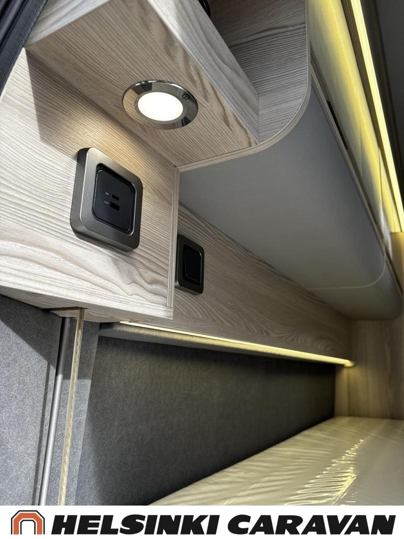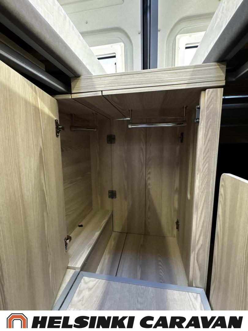 Erikoisvanteet, Erillisvuoteet, Eristetty harmaavesisäiliö, Ilmastointi ajotilassa, Kattoluukku, Keskuslukitus: Kaukosäätöinen, Keskuslämmitys, Trumatic, Lattiamatot asunto-osassa, Liesi, Lämminvesiboileri, Markiisi, Navigaattori, Pakastelokero, Ohjaustehostin, Parivuode, Suihku, Sähkökäyttöiset ikkunat, Sähköpeilit, Sähkörappu, Sähköpatruuna, Kasettiverhot, Pysäköintikamera, Polttoainekäyttöinen lisälämmitin, Radio