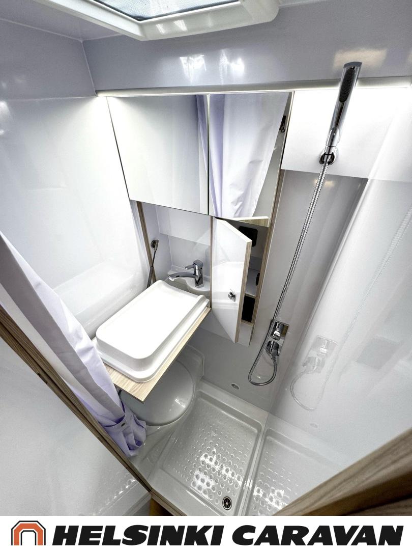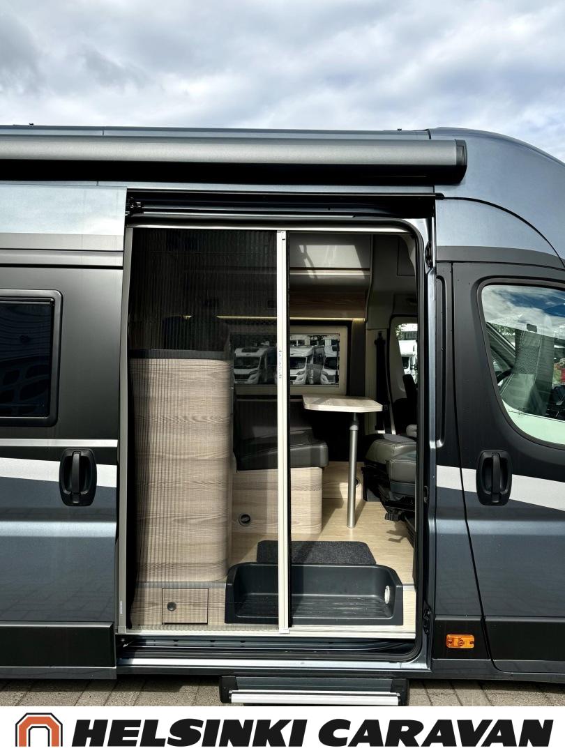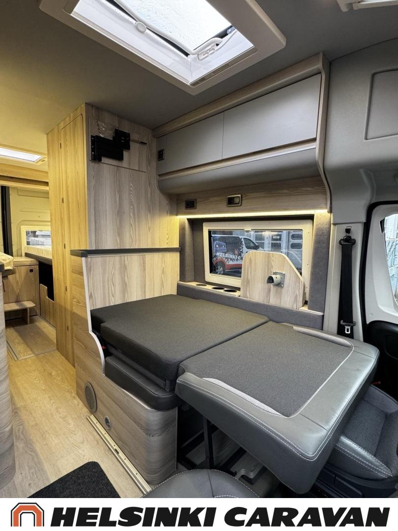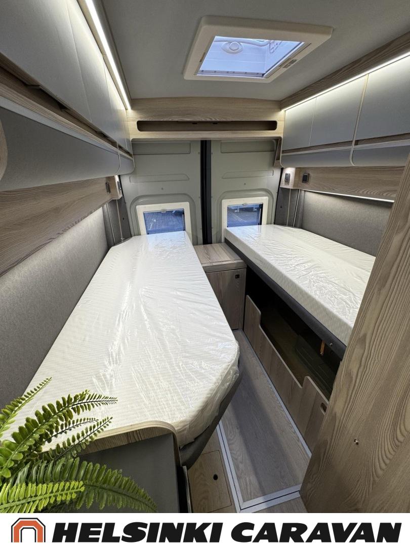 Erikoisvanteet, Erillisvuoteet, Eristetty harmaavesisäiliö, Ilmastointi ajotilassa, Kattoluukku, Keskuslukitus: Kaukosäätöinen, Keskuslämmitys, Trumatic, Lattiamatot asunto-osassa, Liesi, Lämminvesiboileri, Markiisi, Navigaattori, Pakastelokero, Ohjaustehostin, Parivuode, Suihku, Sähkökäyttöiset ikkunat, Sähköpeilit, Sähkörappu, Sähköpatruuna, Kasettiverhot, Pysäköintikamera, Polttoainekäyttöinen lisälämmitin, Radio