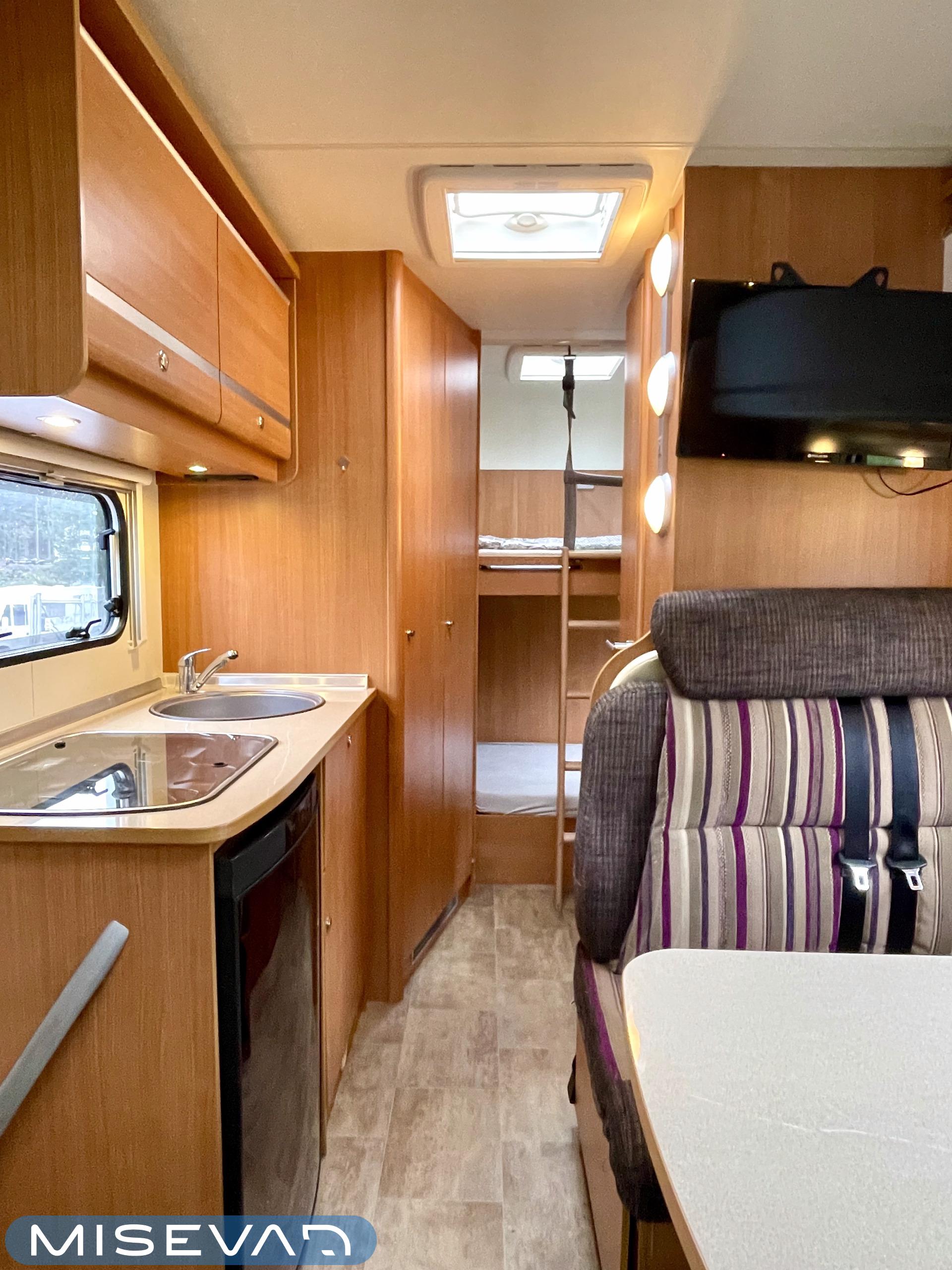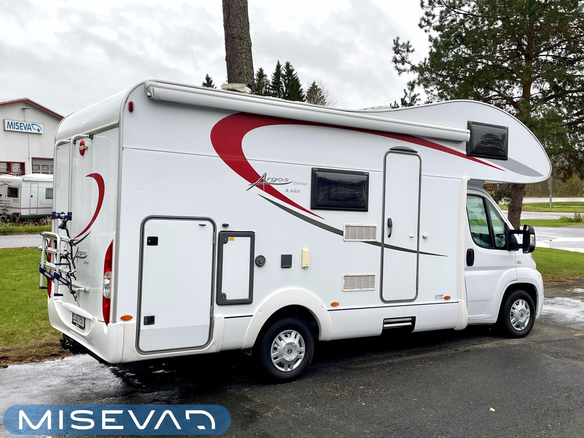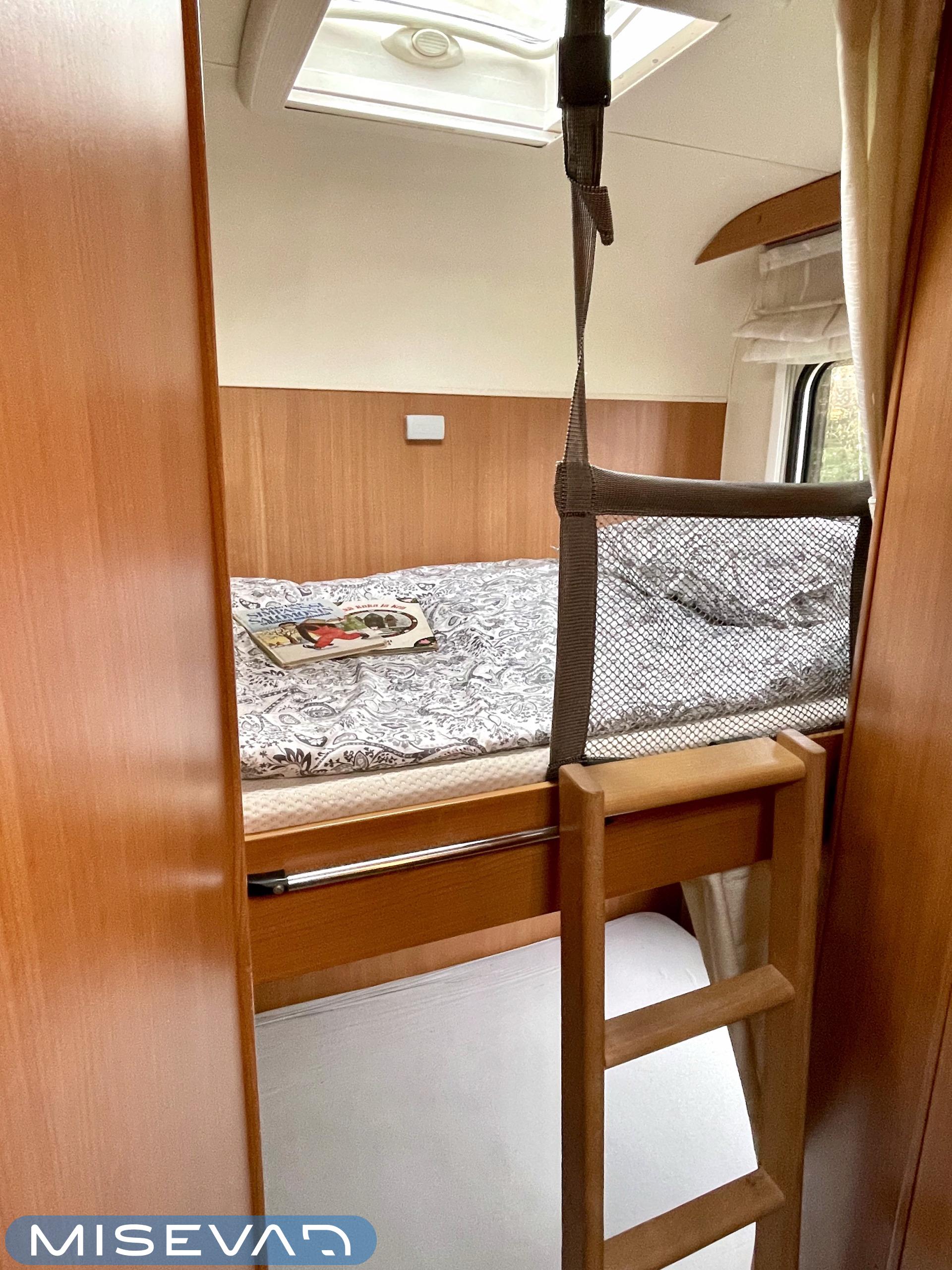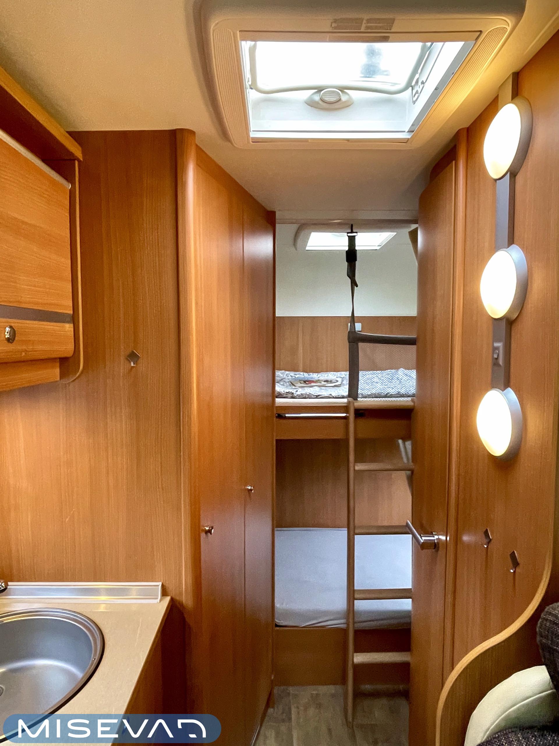 Burstner Argos 660 on todellinen perheauto! Todella tilava matkailuauto tarjoaa makuupaikat jopa kuudelle: iso parivuode ohjaamon yläpuolella, takakerrossängyt sekä sängyksi muuntuva pöytäryhmä. Tämä on kuin liikkuva hotellihuone, jolla saa ison ripauksen mukavuutta perheen lomareissuihin. Ei tarvitse enää raahata isoja laukkuja mukana tai stressata lentokentillä jonottelua. Nyt voit vain pakata auton kotona koko perheelle ja lähteä reissuun omien aikatulujen mukaan. Kulkea aurinkoisten kielien mukana, oman perheen ja tavaroiden kanssa. Auto tarjoaa nukkumatilojen lisäksi keittiön, ison kylpyhuoneen, sekä ruokailutilan. Kaappitilaa ei myöskään ole unohdettu. Lisäksi kerrossängyn alemman sängyn saa käännettyä ylös, jos joskus tarvitsee kuljettaa jotain vähän isompaa tavaraa. Täydellinen valinta pidemmille reissuille isommalla porukalla!