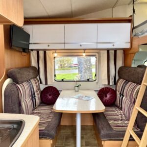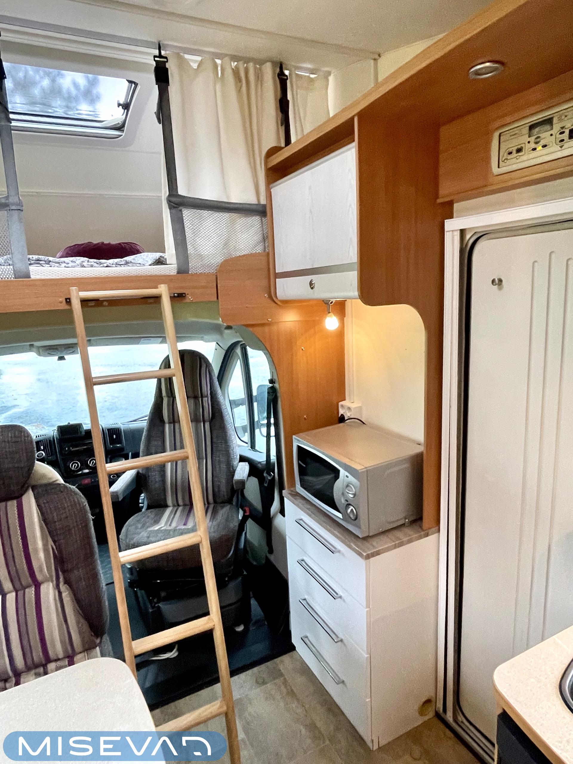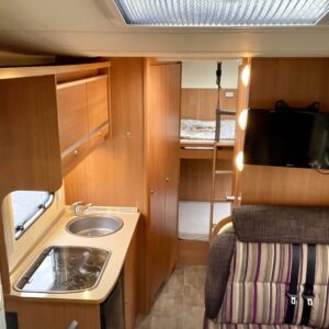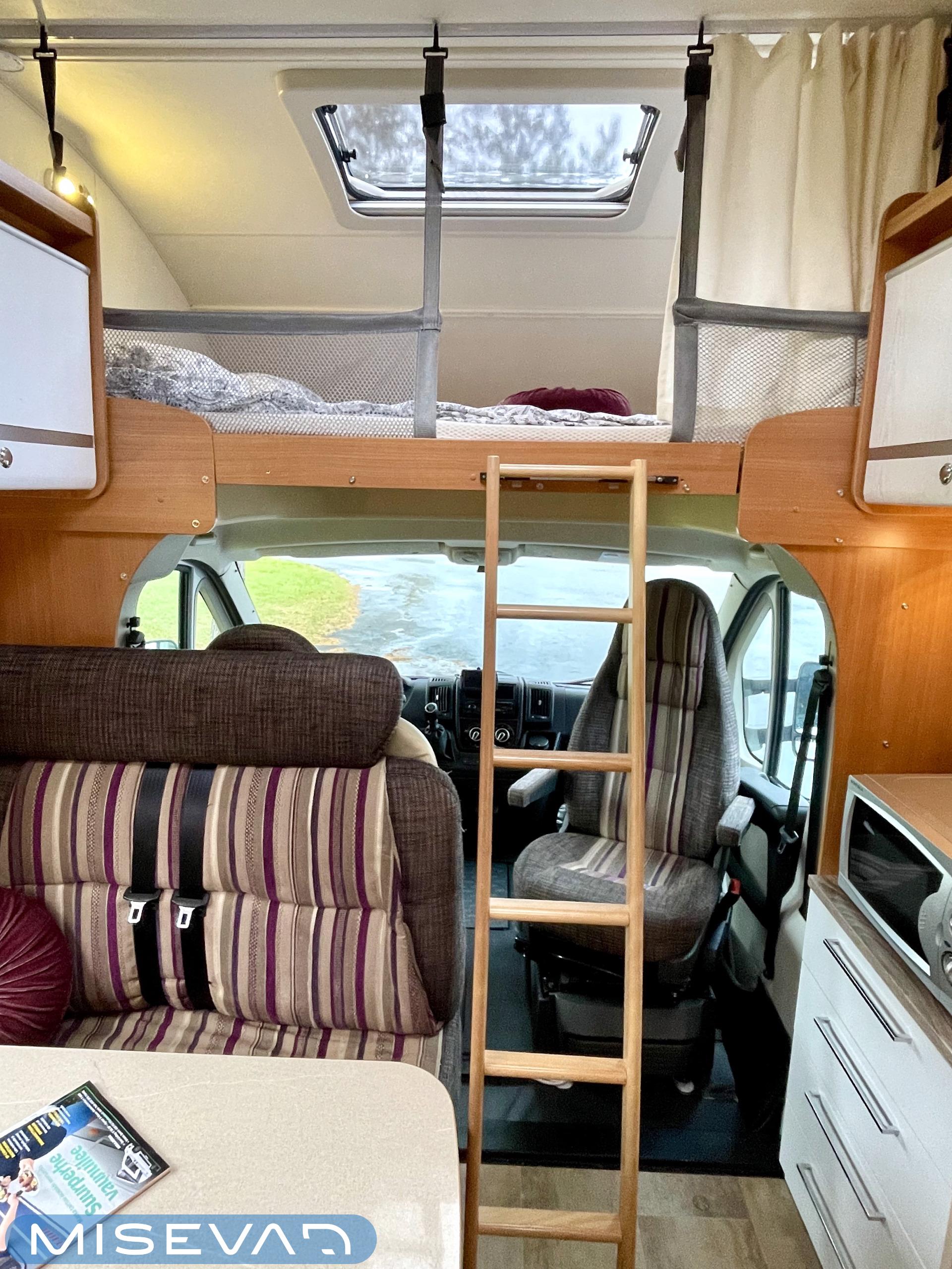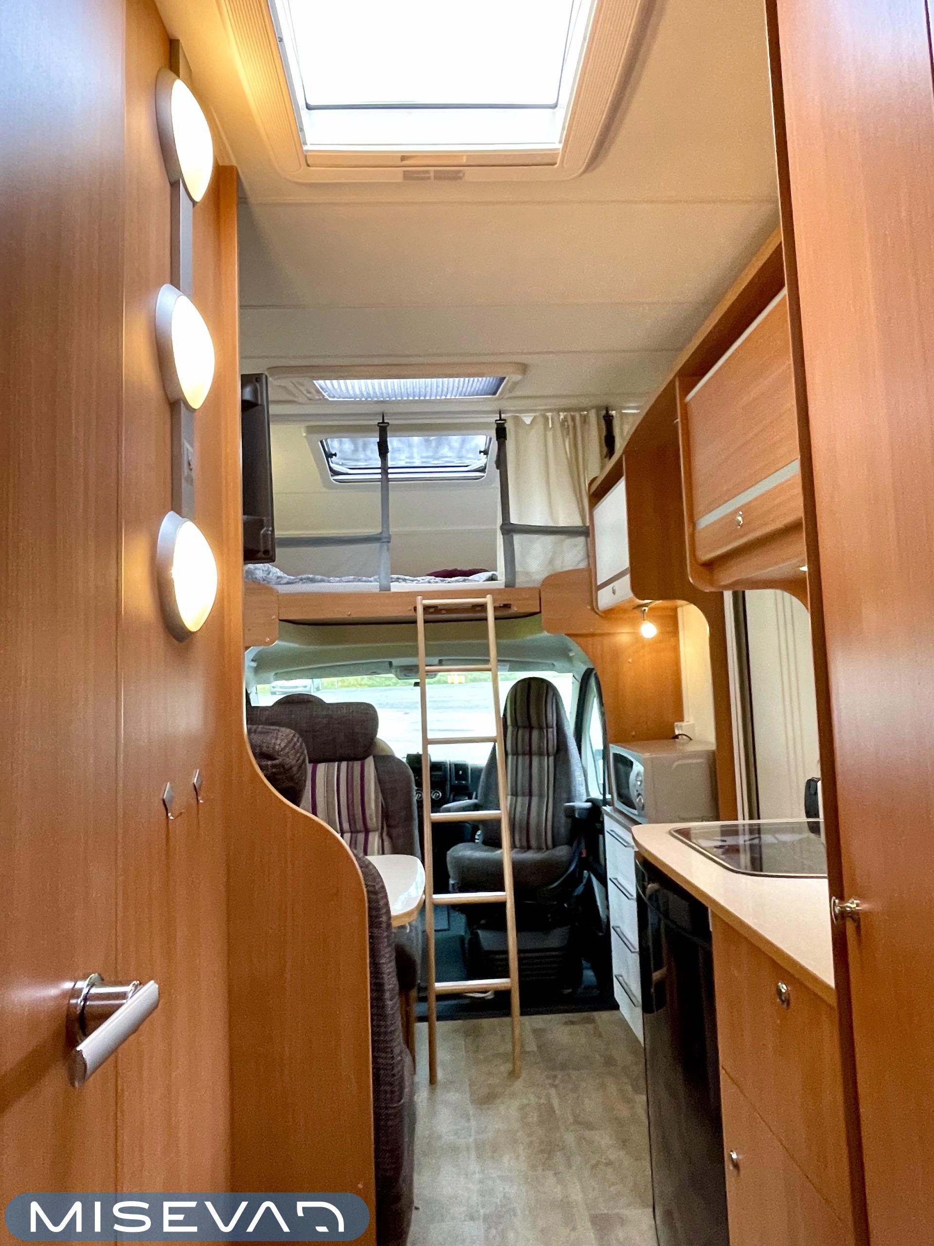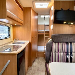Burstner Argos 660 on todellinen perheauto! Todella tilava matkailuauto tarjoaa makuupaikat jopa kuudelle: iso parivuode ohjaamon yläpuolella, takakerrossängyt sekä sängyksi muuntuva pöytäryhmä. Tämä on kuin liikkuva hotellihuone, jolla saa ison ripauksen mukavuutta perheen lomareissuihin. Ei tarvitse enää raahata isoja laukkuja mukana tai stressata lentokentillä jonottelua. Nyt voit vain pakata auton kotona koko perheelle ja lähteä reissuun omien aikatulujen mukaan. Kulkea aurinkoisten kielien mukana, oman perheen ja tavaroiden kanssa. Auto tarjoaa nukkumatilojen lisäksi keittiön, ison kylpyhuoneen, sekä ruokailutilan. Kaappitilaa ei myöskään ole unohdettu. Lisäksi kerrossängyn alemman sängyn saa käännettyä ylös, jos joskus tarvitsee kuljettaa jotain vähän isompaa tavaraa. Täydellinen valinta pidemmille reissuille isommalla porukalla!