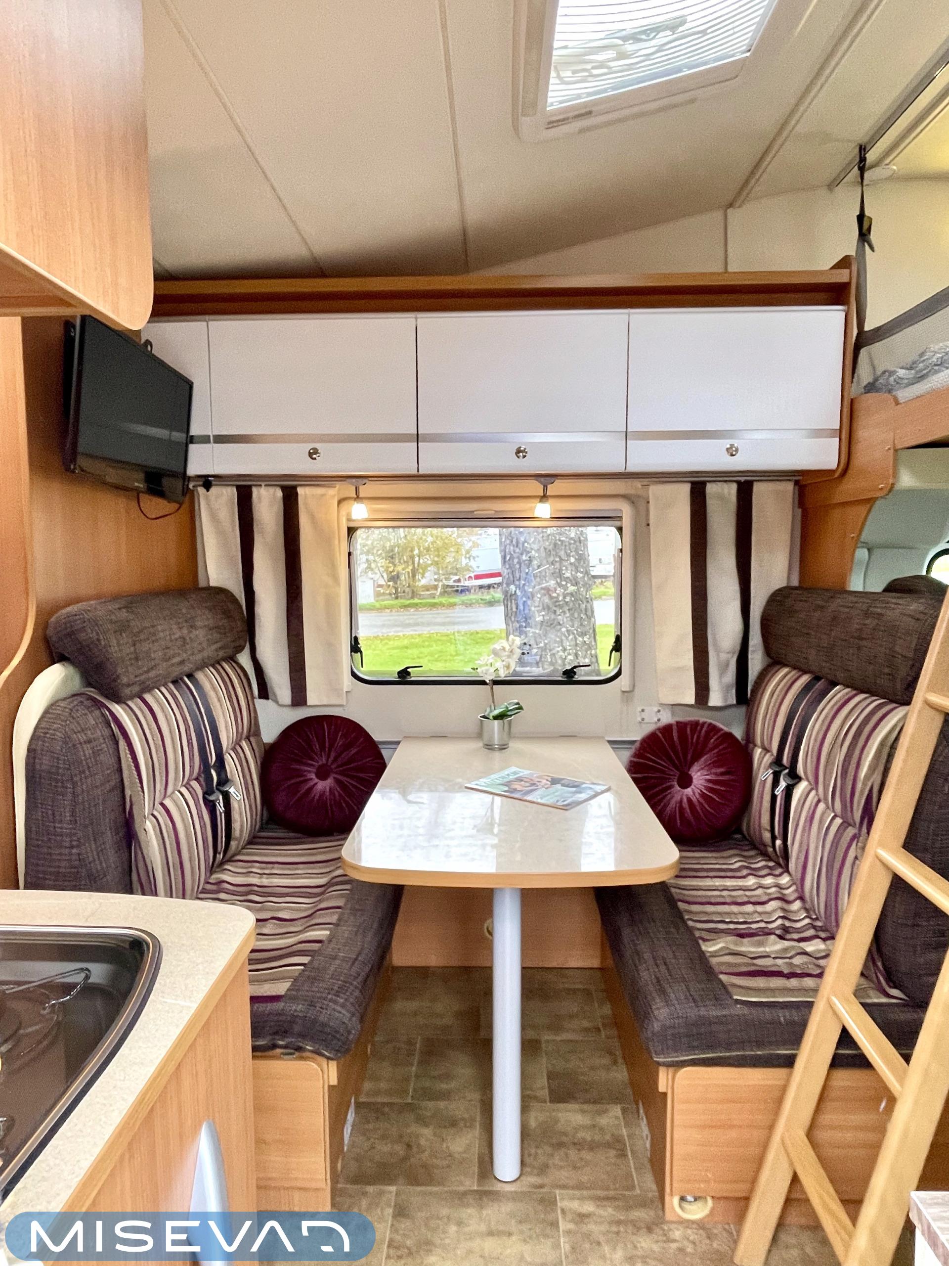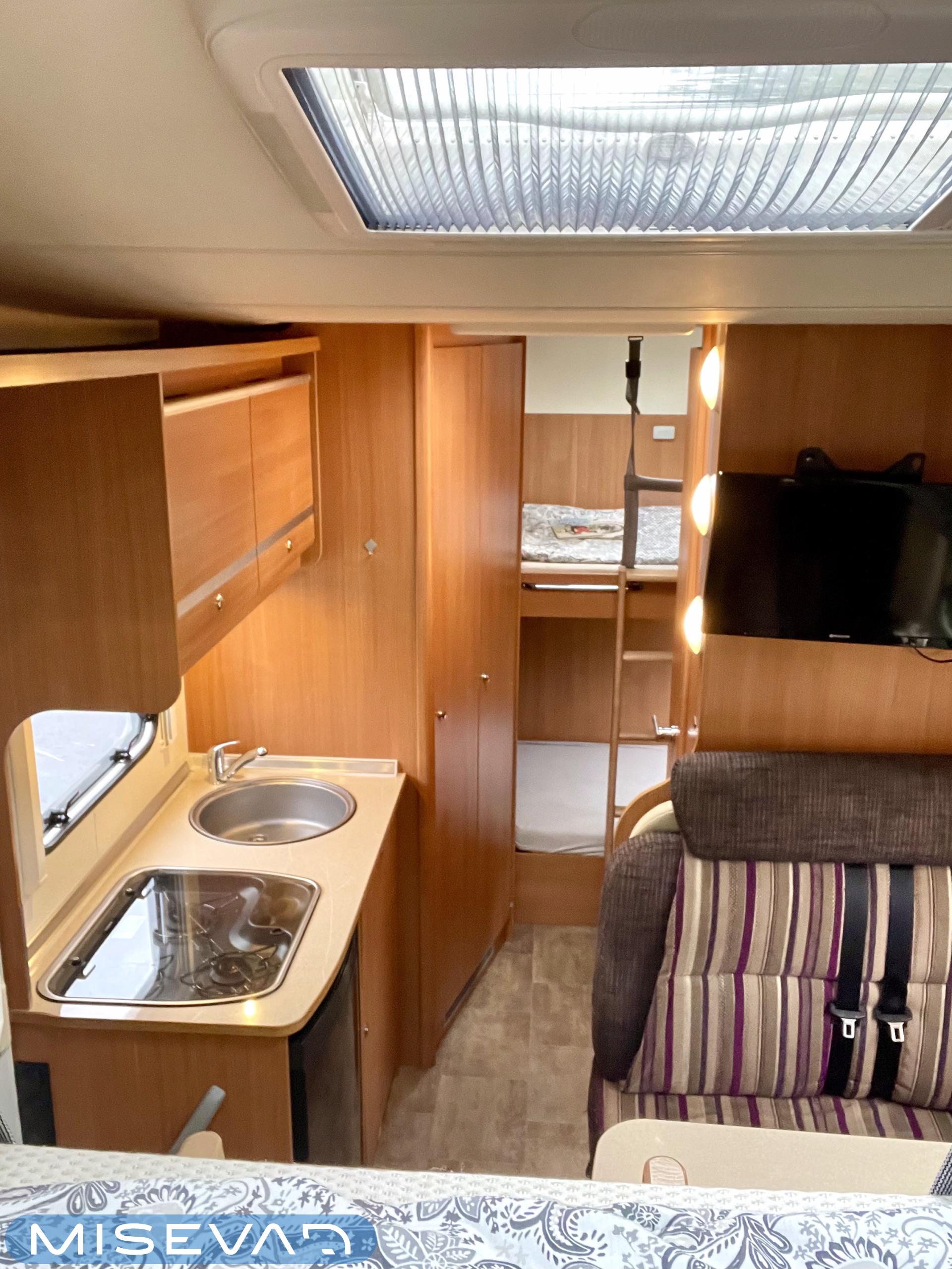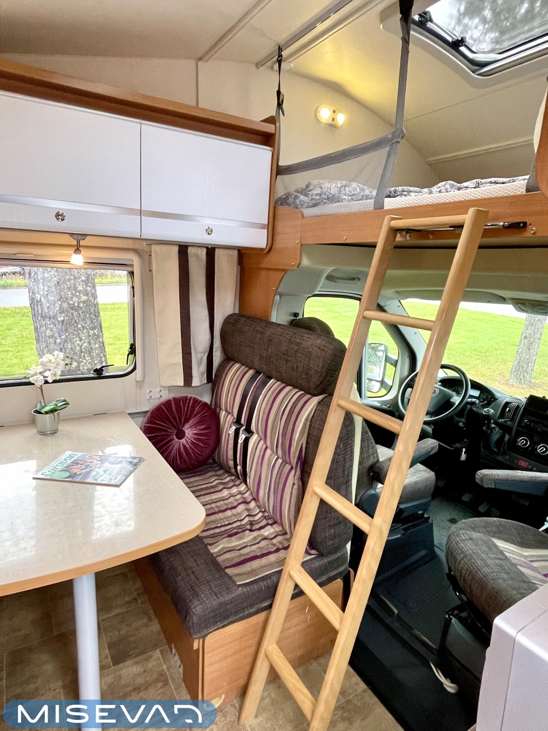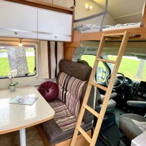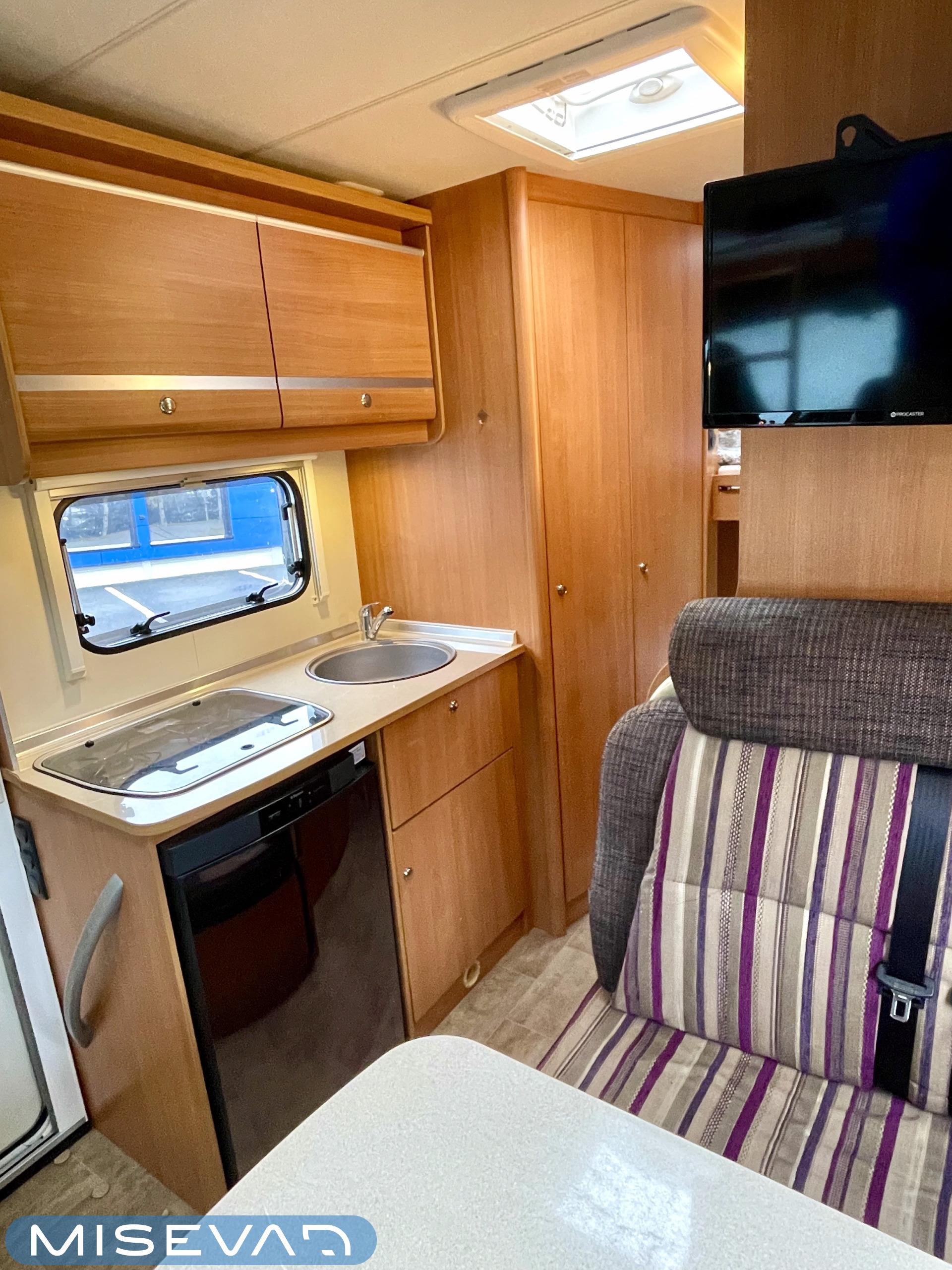 Burstner Argos 660 on todellinen perheauto! Todella tilava matkailuauto tarjoaa makuupaikat jopa kuudelle: iso parivuode ohjaamon yläpuolella, takakerrossängyt sekä sängyksi muuntuva pöytäryhmä. Tämä on kuin liikkuva hotellihuone, jolla saa ison ripauksen mukavuutta perheen lomareissuihin. Ei tarvitse enää raahata isoja laukkuja mukana tai stressata lentokentillä jonottelua. Nyt voit vain pakata auton kotona koko perheelle ja lähteä reissuun omien aikatulujen mukaan. Kulkea aurinkoisten kielien mukana, oman perheen ja tavaroiden kanssa. Auto tarjoaa nukkumatilojen lisäksi keittiön, ison kylpyhuoneen, sekä ruokailutilan. Kaappitilaa ei myöskään ole unohdettu. Lisäksi kerrossängyn alemman sängyn saa käännettyä ylös, jos joskus tarvitsee kuljettaa jotain vähän isompaa tavaraa. Täydellinen valinta pidemmille reissuille isommalla porukalla!