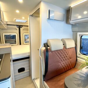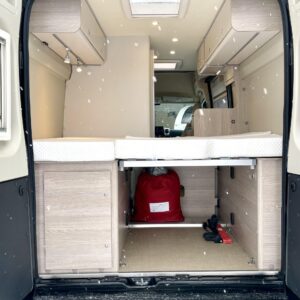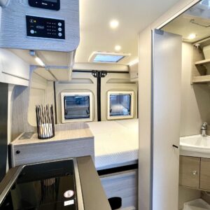 Auto on rakennettu erittäin omavaraiseksi lämmityksen ja sähkön suhteen, tupla-akuilla varustettu järjestelmä lataa itseään aurinkopaneelilla ja invertteristä saa 230V- sähköä vaikka puhelimen ja läppärin lataukseen. Etätoimisto erämaassa tai rantahietikolla? Onnistuu!