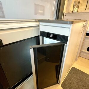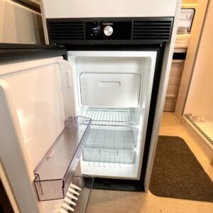 Lämmityksestä vastaa dieselkäyttöinen Truma- puhallinlämmitys. Ei keskellä yötä tyhjeneviä kaasupulloja! Kaasua käytetään ainoastaan keittiössä kaksipolttimisella liedellä, sillä jääkaappi on kompressorikäyttöinen ja akkutoiminen.
