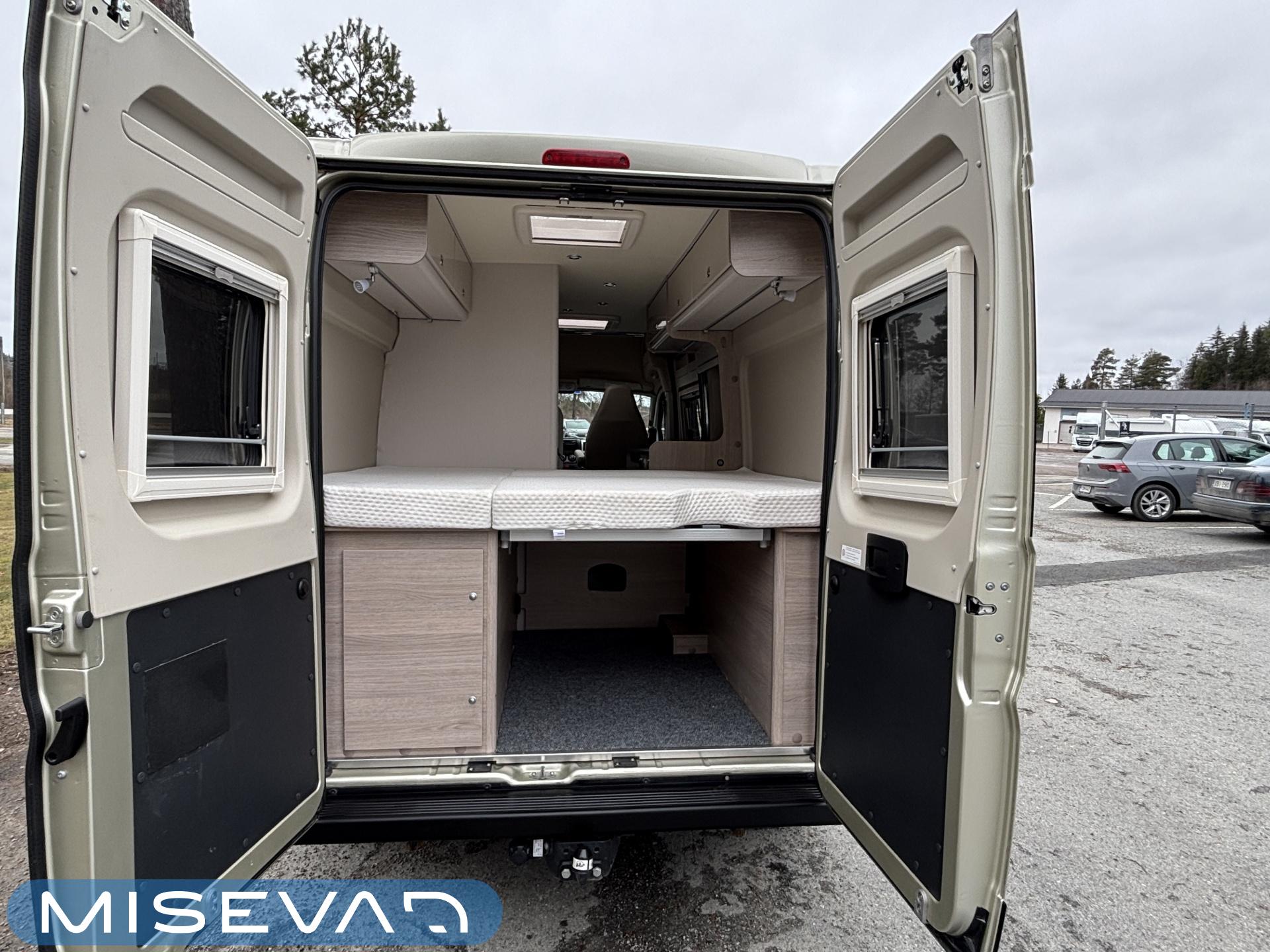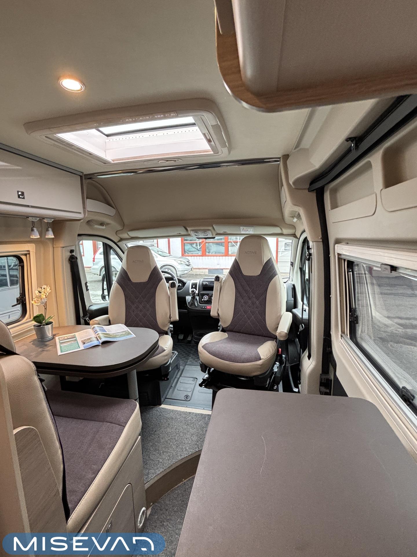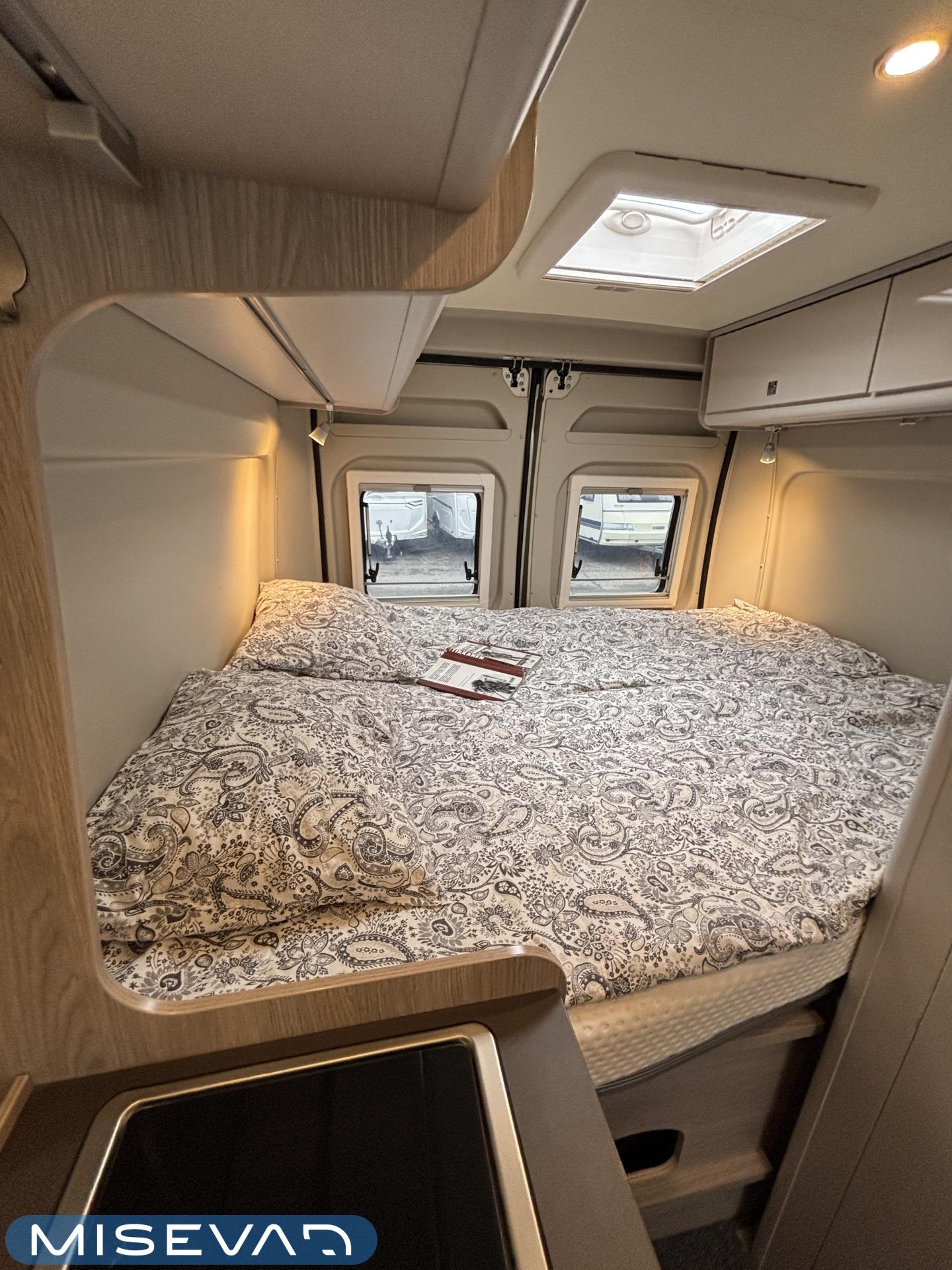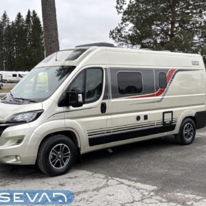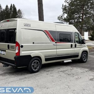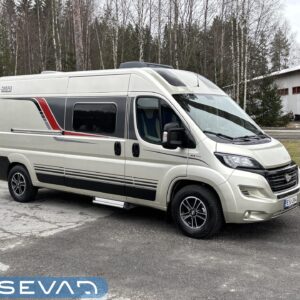 Aika hieno 6-metrinen retkis ensimmäisen ja ainoan käyttäjäomistajan hellän huolenpidon jäljiltä. Korivalmistajana Saksalainen Burstner ja alustana Fiat Ducato 2.3 litraisella dieselillä ja 9-portaisella automaattivaihteistolla varustettuna. Autossa on takaosassa petipaikat kahdelle henkilölle. Vuoteeen alle jää teknisiä tiloja, sekä säilytystilaa tavaroille. Keskivaiheilta löytyy kylppäritilat ja toiselta sivulta keittiö. Huomiotavaa on mukavan suuren litratilavuuden omaava jääkaappi, sekä sen sijoittelu kätevästi keittiön päätyyn. Etuosassa on perinteinen pöytäryhmä kipparinpenkeillä. Ohjaamovarusteina mm. automaattivaihteisto ja vakionopeuden säädin. Asuintilan lämmitysjärjestelmänä toimii Trumaticin ilmakeskuslämmitys ja lämmittimessä on myös ns. sähköpatruuna. Valmiiksi asennettuna löytyy myös vetokoukku ja Trafin ilmoittamat vetomassat ovat 2500kg jarrulliselle kärrille ja 750kg jarruttomalle kärrille. Varsin siistissä kunnossa visuaalisesti niin ulkoa kun sisältäkin. Pituus 6 metriä ja ajettavissa henkilöauton B-kortilla, eli toimittaa hienosti tarvittaessa vaikkapa ihan jokapäiväisen kulkineenkin virkaa.