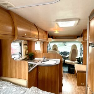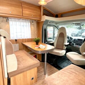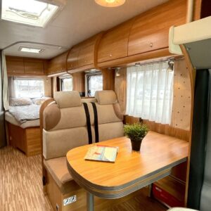 Ulkoa ja sisältä hyvin siistissä kunnossa oleva matkailuauto, kuten näin pienillä ajokilometreillä voi olettaakin.