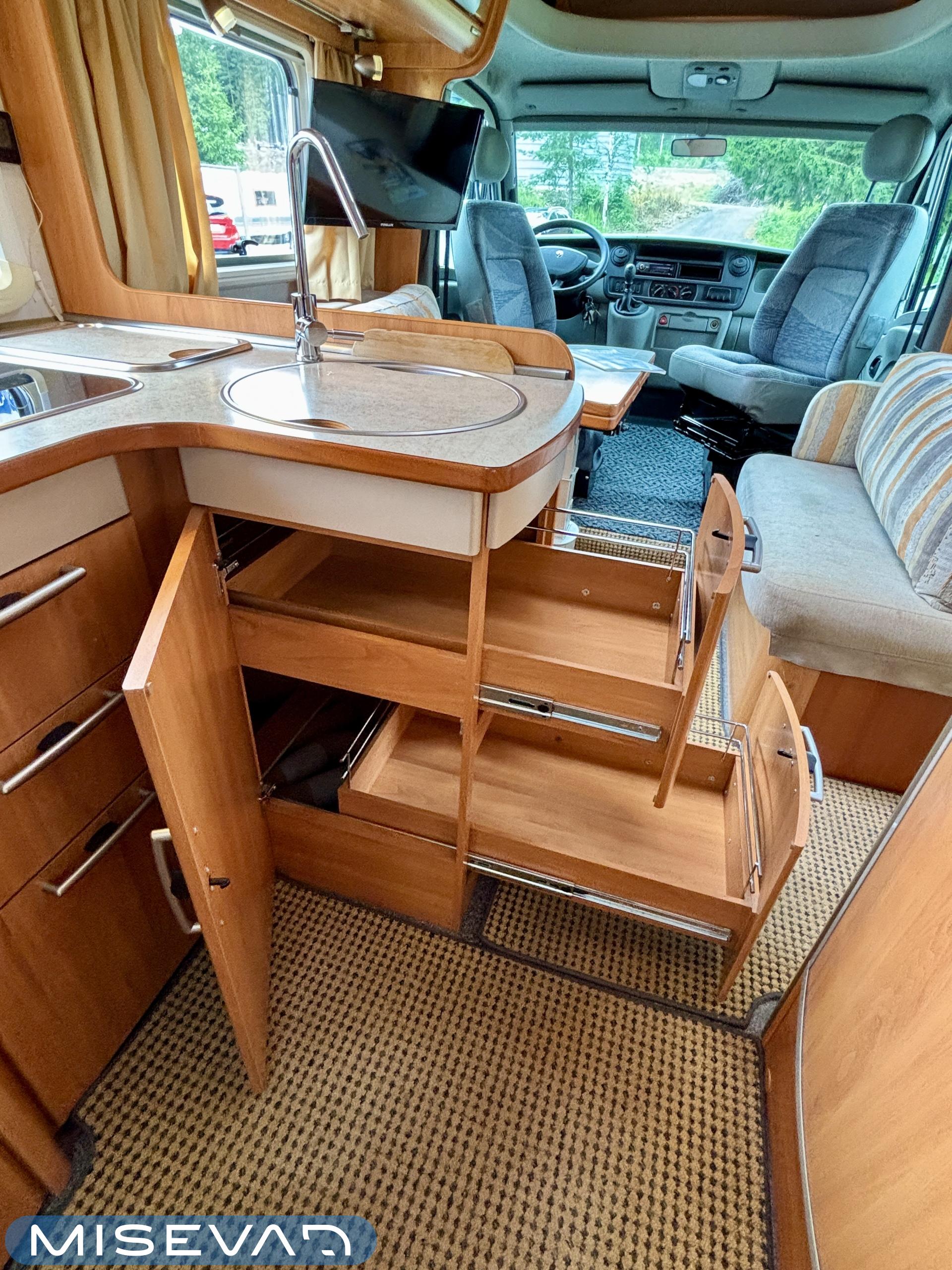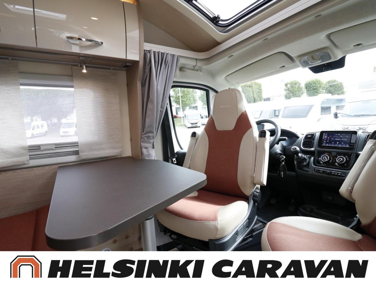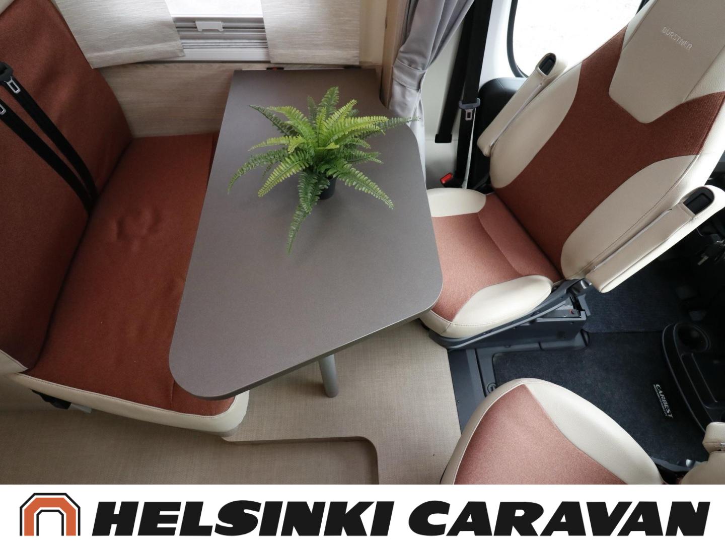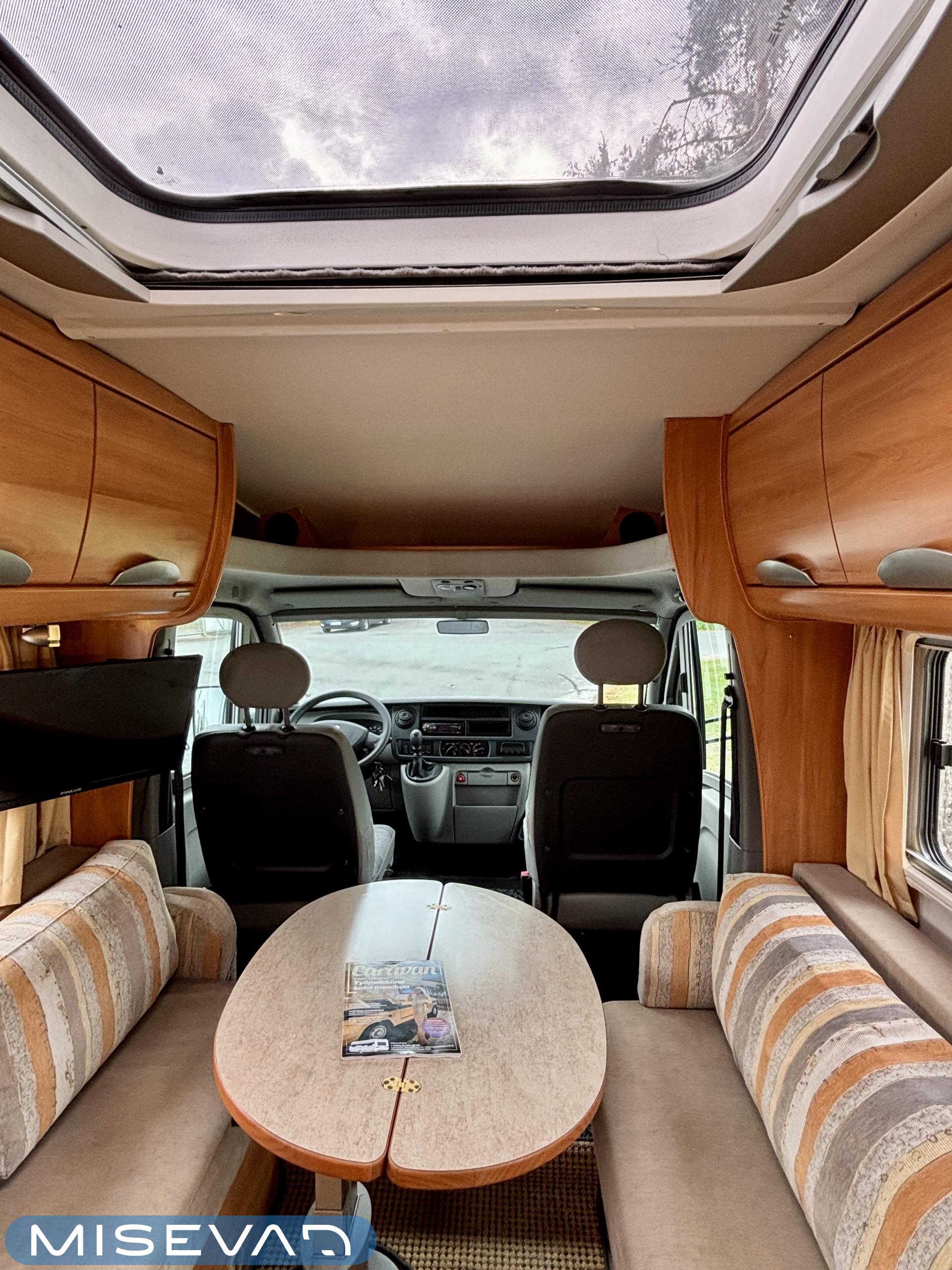 Kompakti ja hyvin varusteltu Van-sarjan puoli-integroitu matkailuauto, jossa on ihanteelliset tilat liikkuvan pariskunnan vapaa-ajan viettoon. Auton etuosassa panoraamakattoikkunan alla on tilava pöytäryhmä, keskiosasta autoa löytyvät keittiön lisäksi hyvät kaappitilat ja takaosaassa sijaitsee suihkulla varustetun kylpyhuoneen lisäksi parivuode, jonka alla on suuri tavaratila. Auto on alle 6 metriä pitkä, joten sillä pääsee yhtä kätevästi niin puskaparkkiin kuin marketin parkkiruutuunkin!