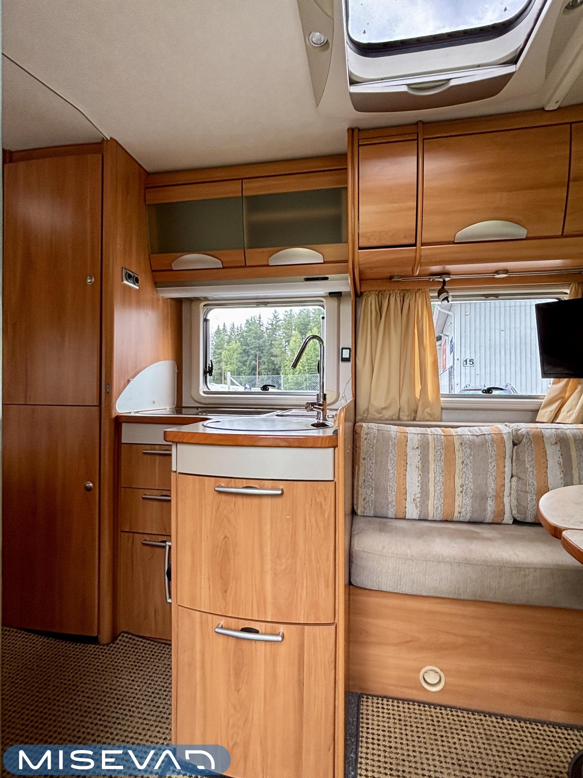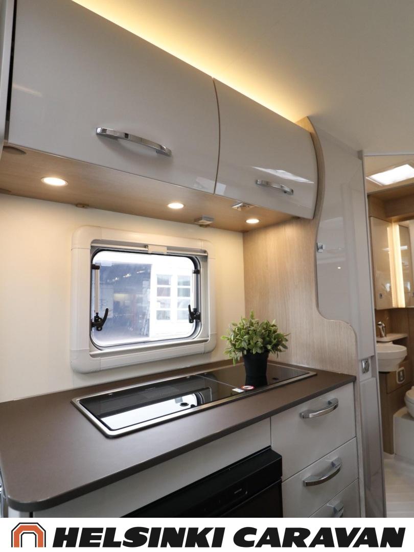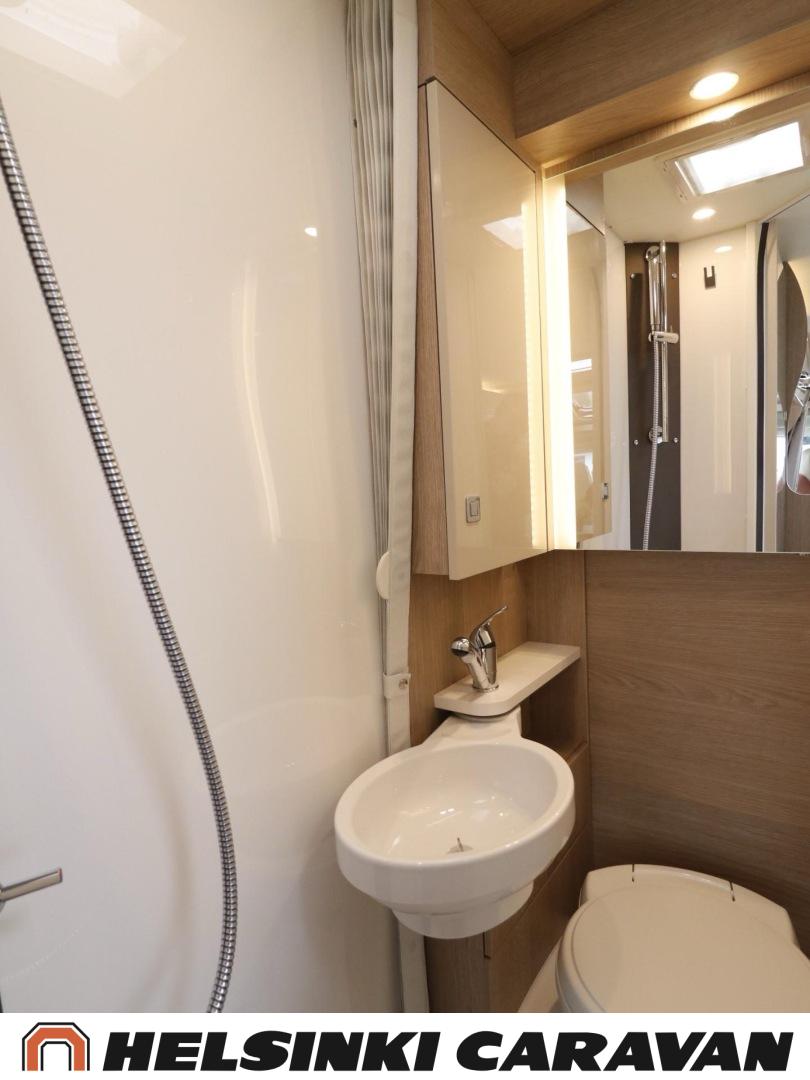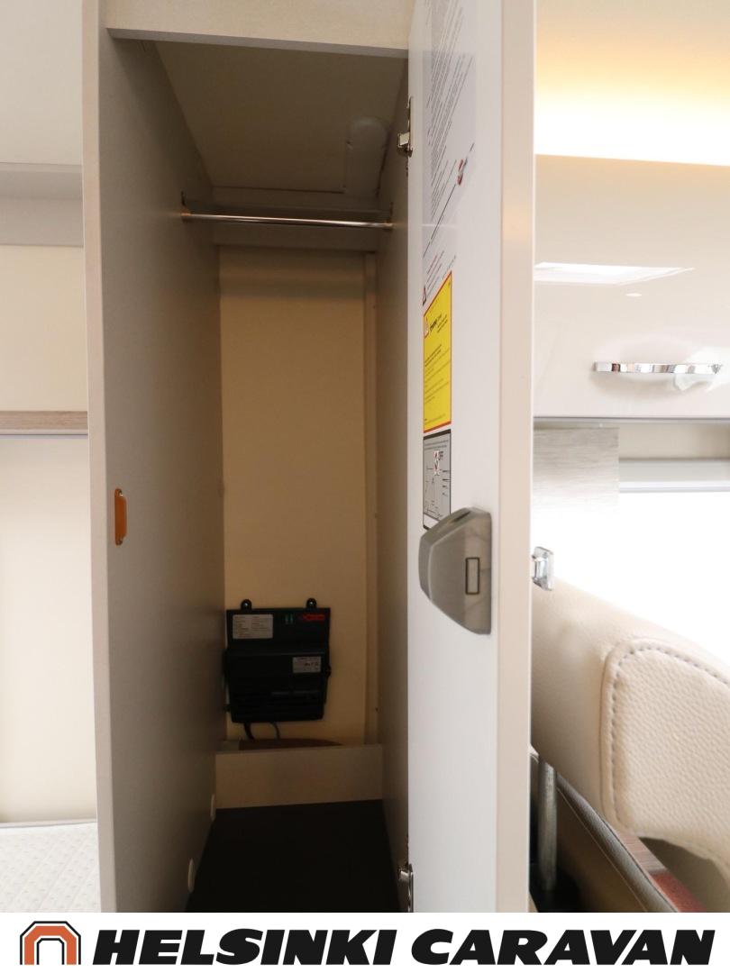 Lattialämmitys (sähkö), Lattiamatot asunto-osassa, Jääkaappi, Kasetti WC, Kasettiverhot, Kattoluukku, Markiisi, Pysäköintikamera, Radio, Suihku, Pesuallas, Liesi, Airbag, ABS-jarrut, Ajonvakautusjärjestelmä, Ajotietokone, Sähkökäyttöiset ikkunat, Sähköpeilit, Sähkörappu, Trumatic, Bluetooth, Ilmastointi ajotilassa, Keskuslukitus: Kaukosäätöinen, Lämminvesiboileri, Ohjaustehostin, Pakastelokero, Parivuode, Vakionopeudensäädin